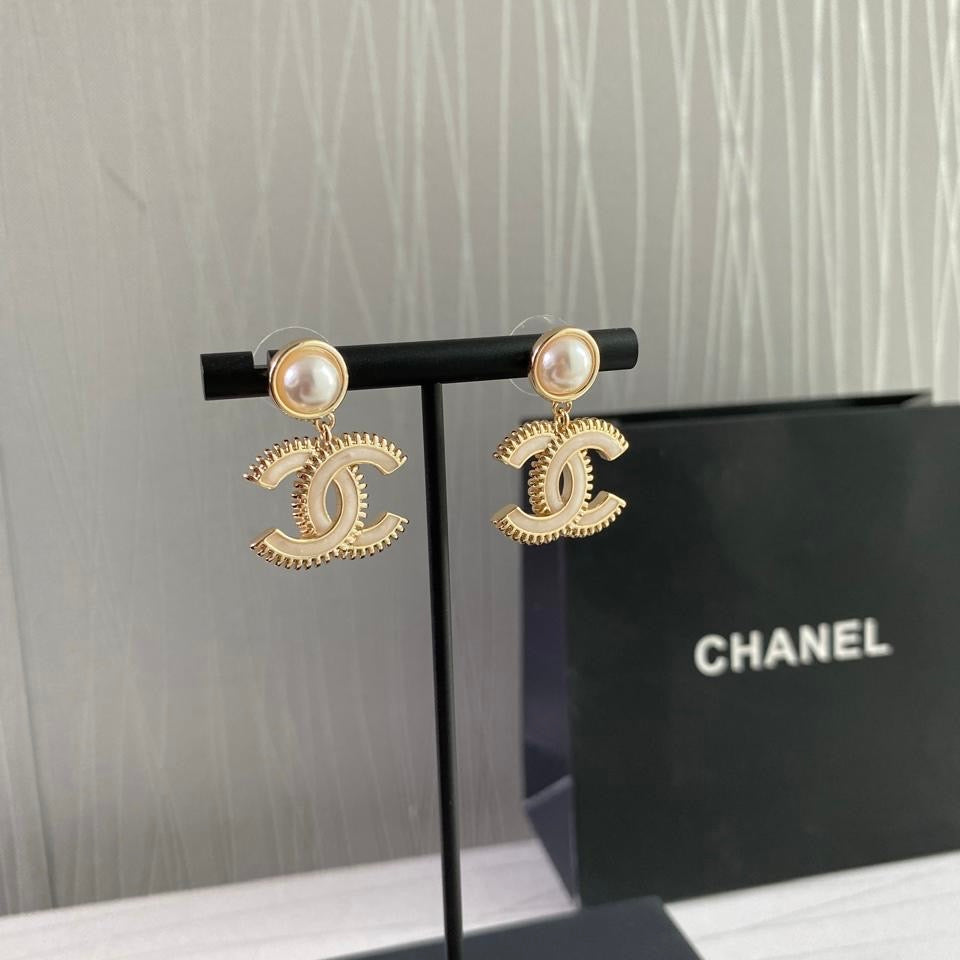 Aretes C dorados combinados con beige y perla. Incluye caja , guardapolvo y shopping bag.