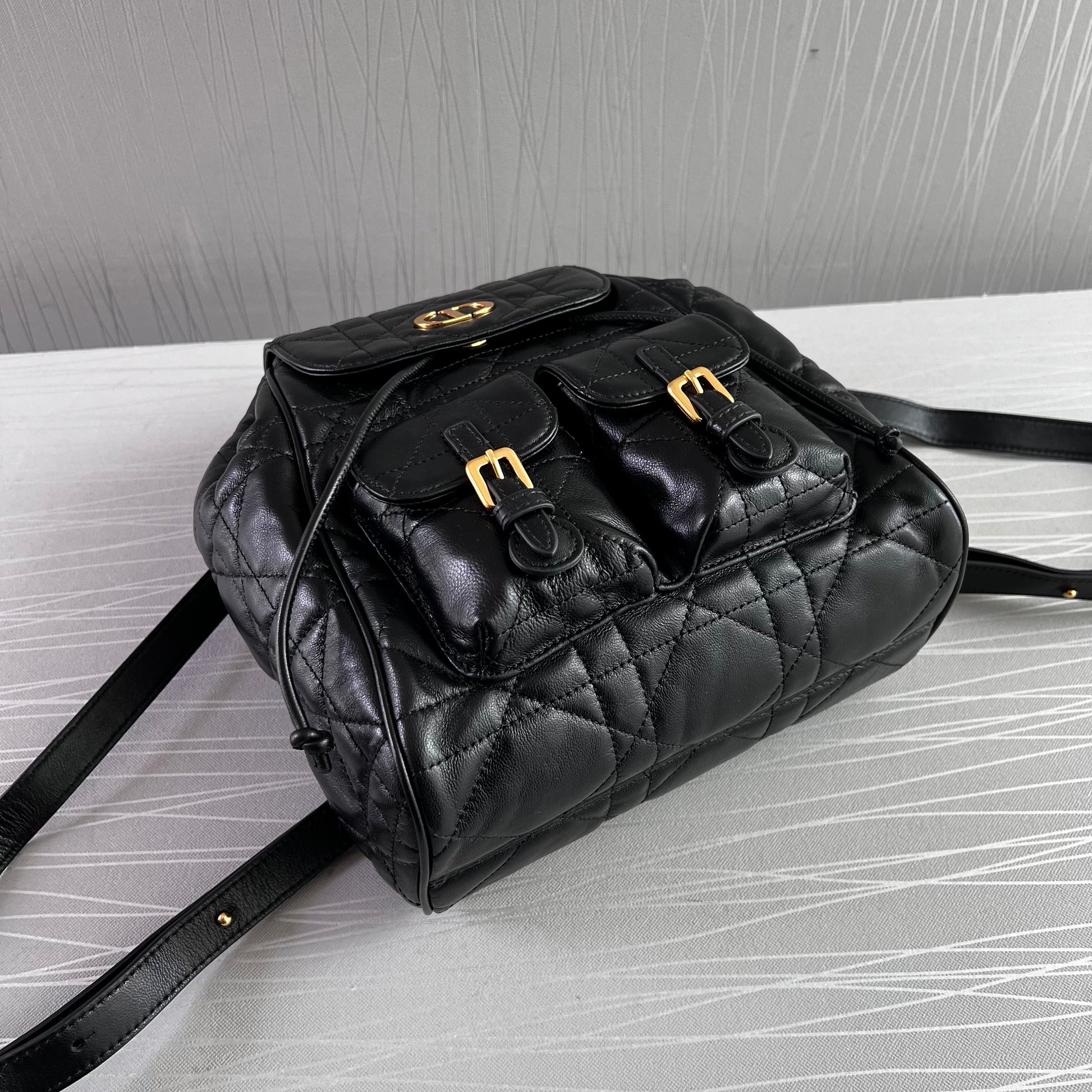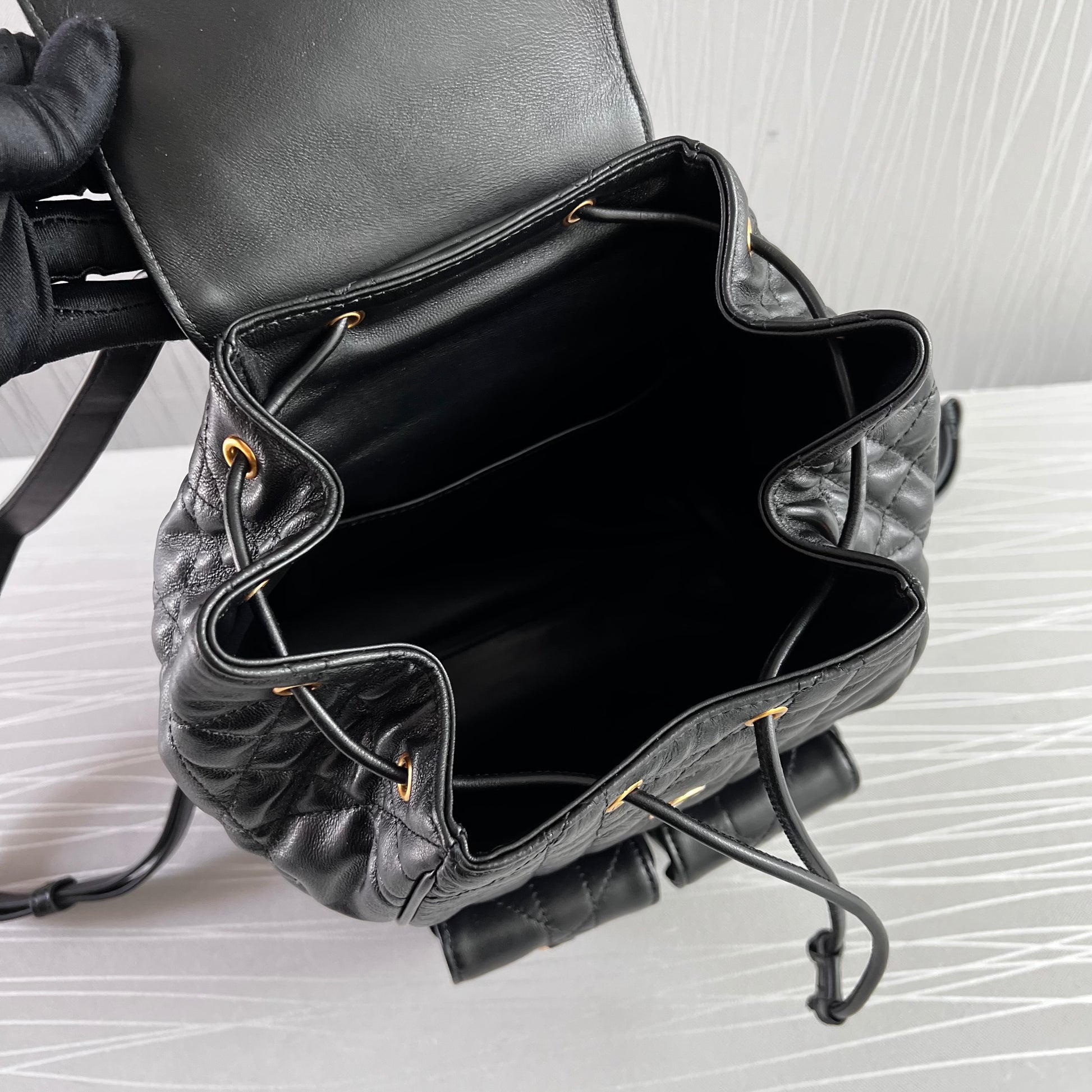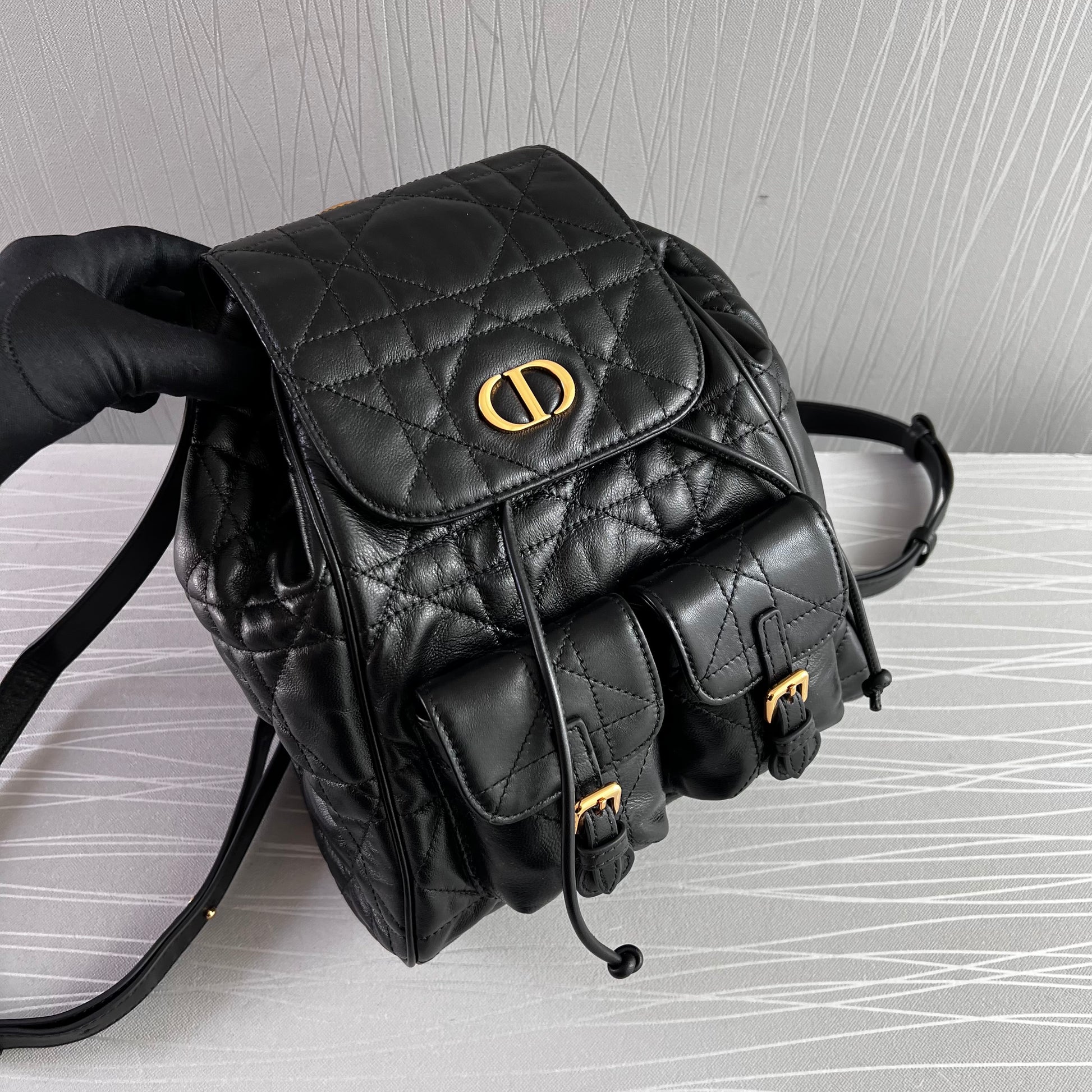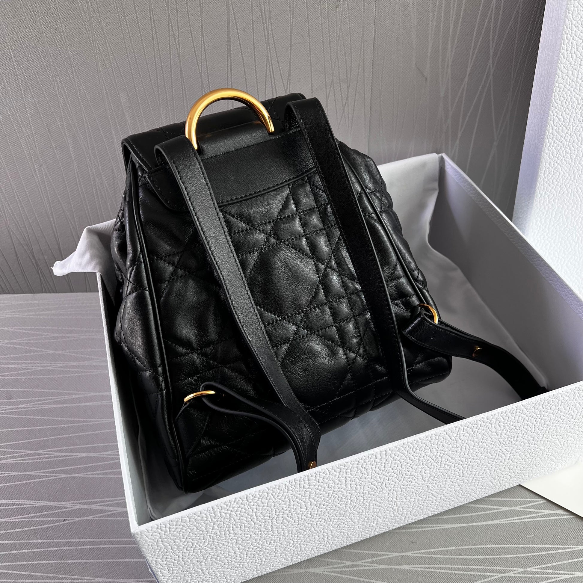 Backpack D piel color negro, herrajes dorados, tamaño mediano. Incluye caja y guardapolvo.