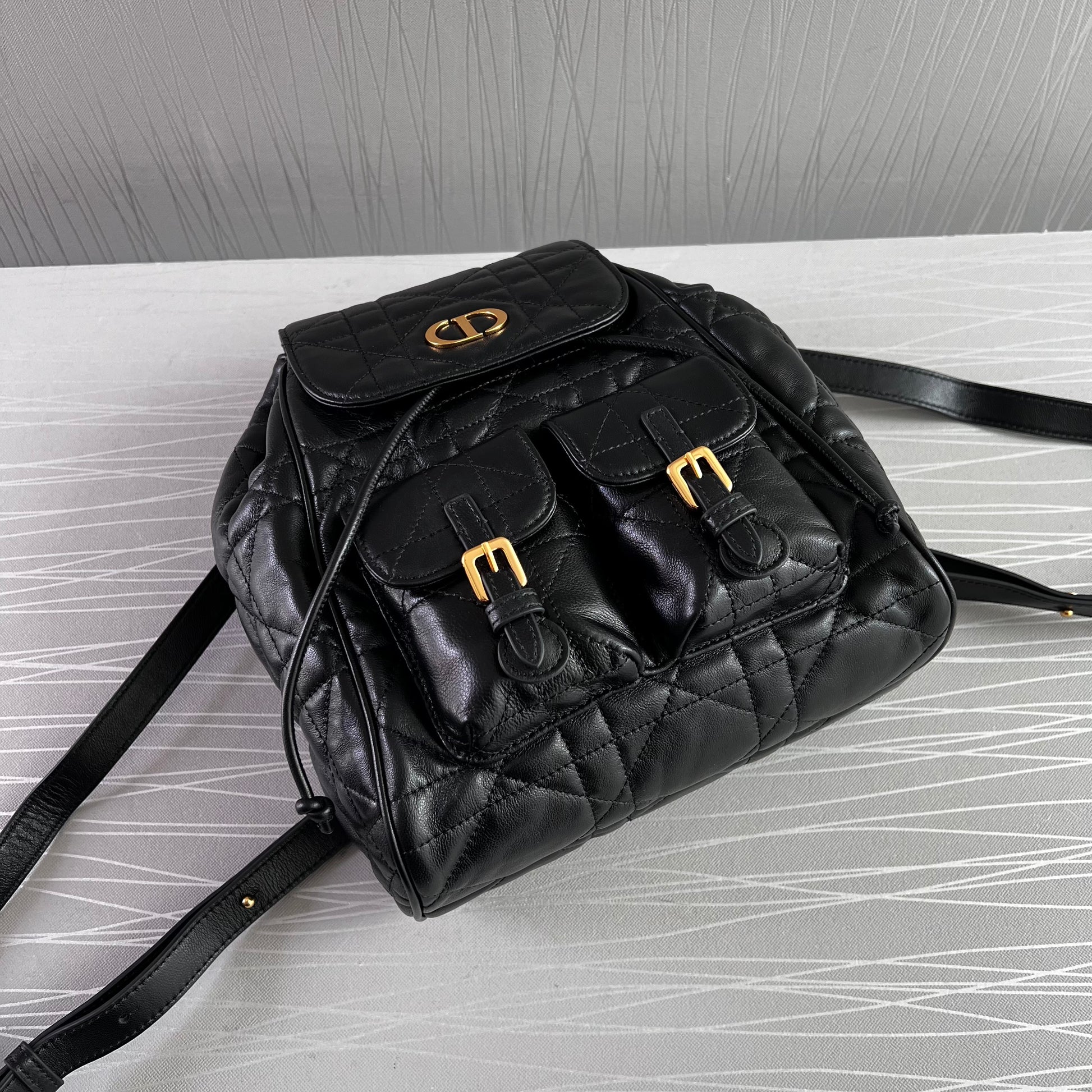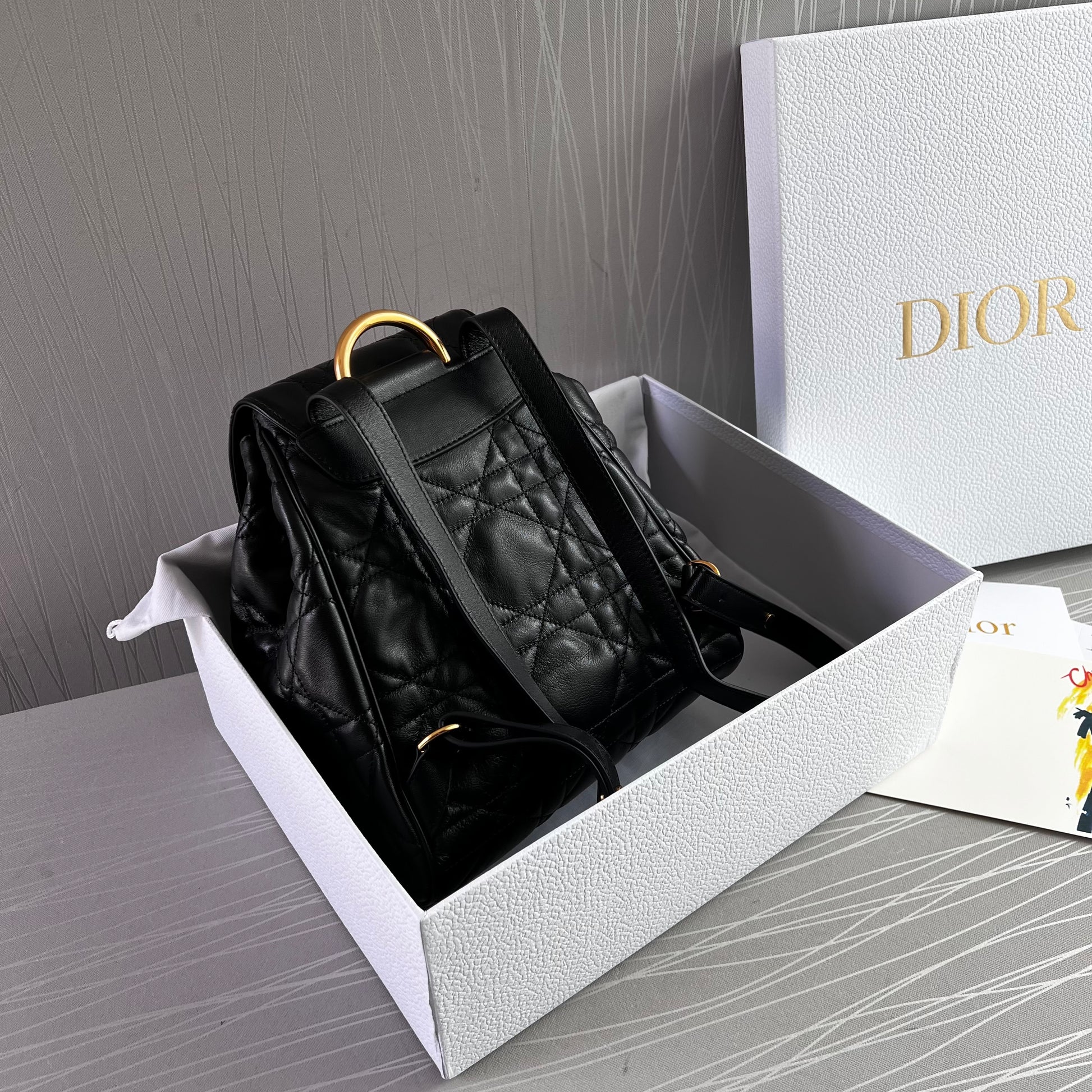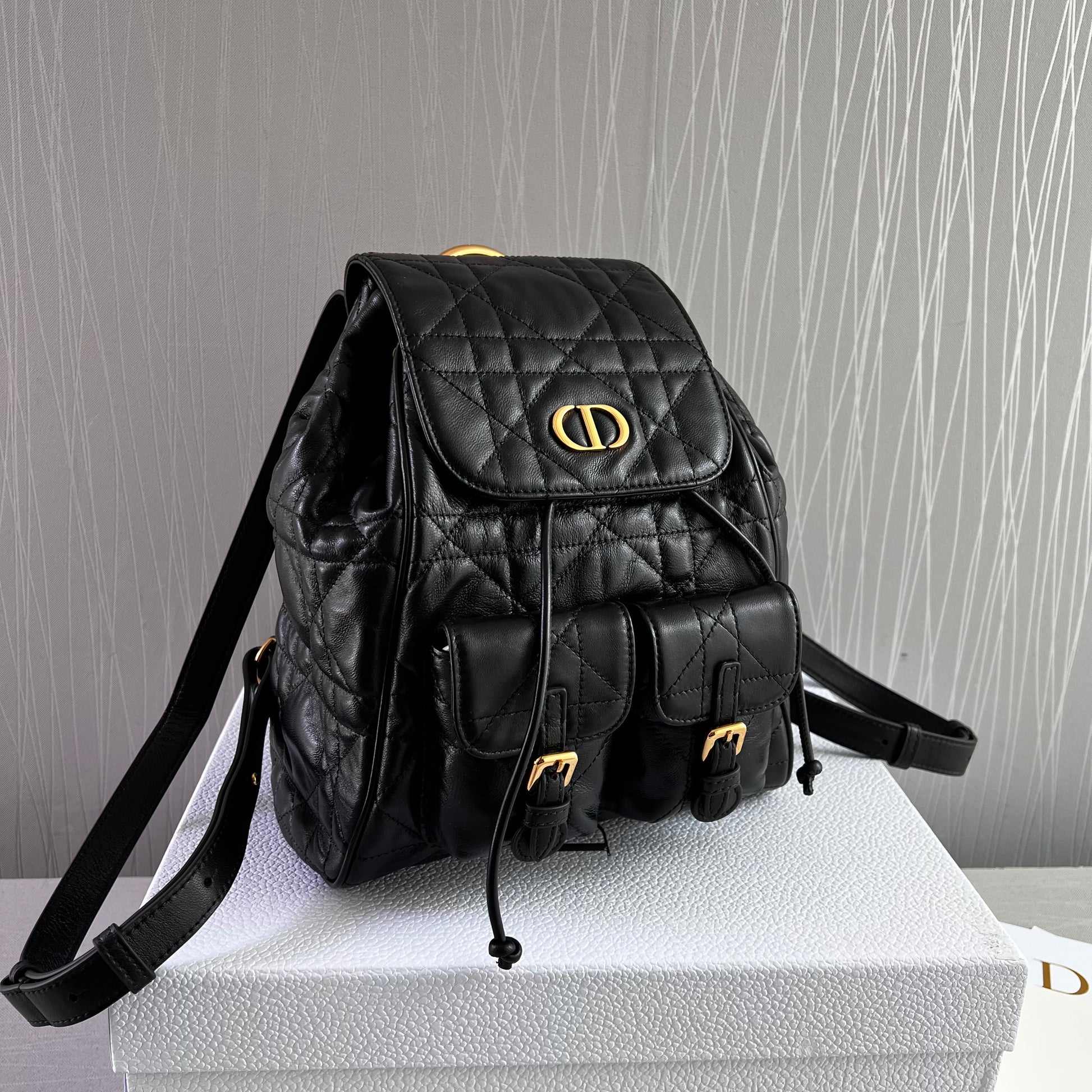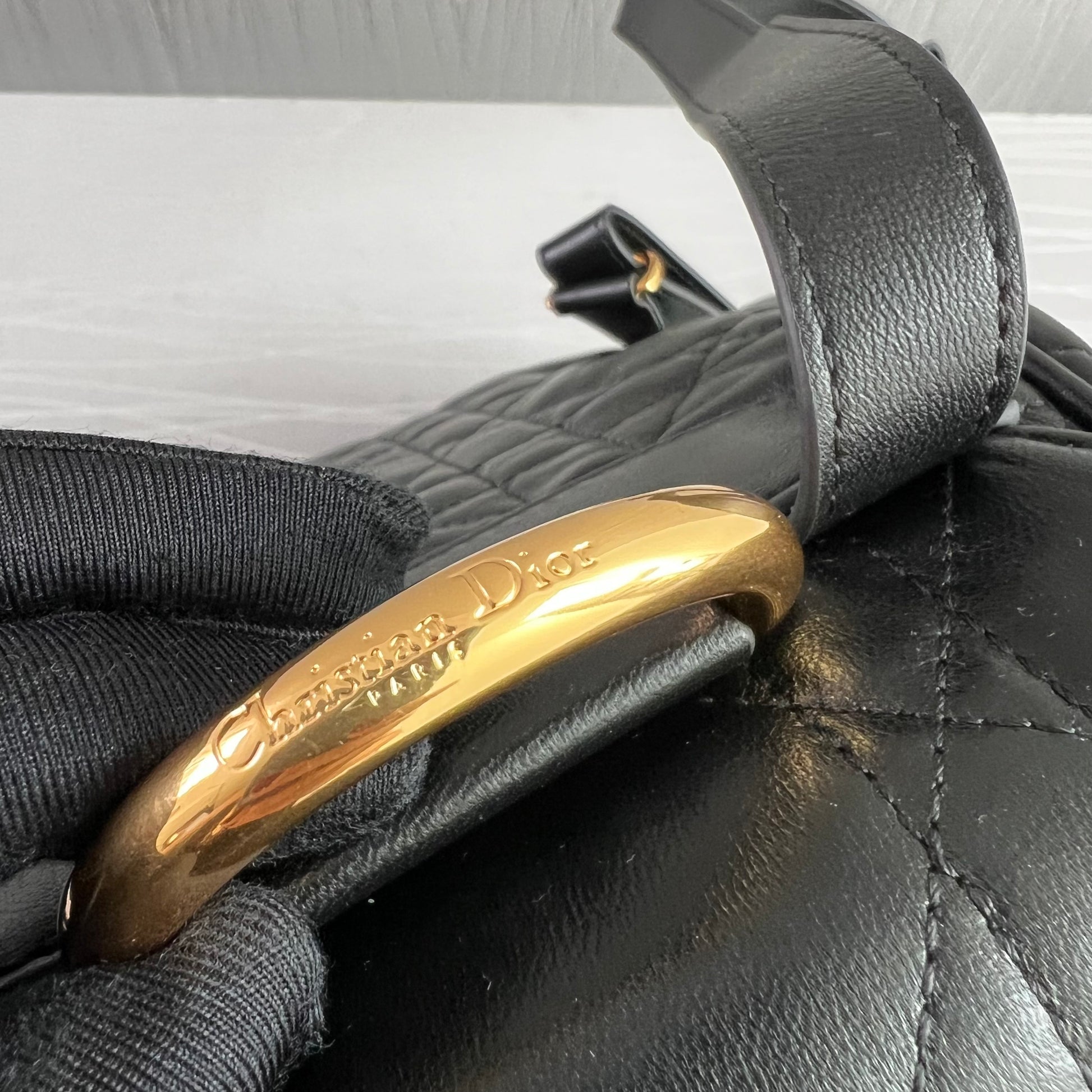 Backpack D piel color negro, herrajes dorados, tamaño mediano. Incluye caja y guardapolvo.