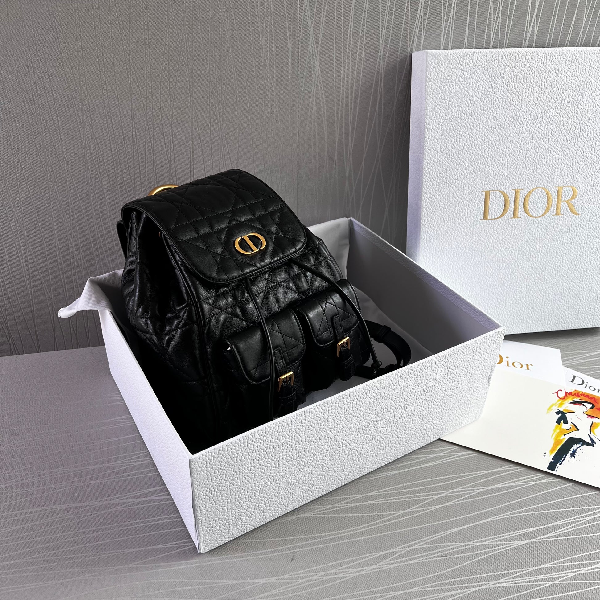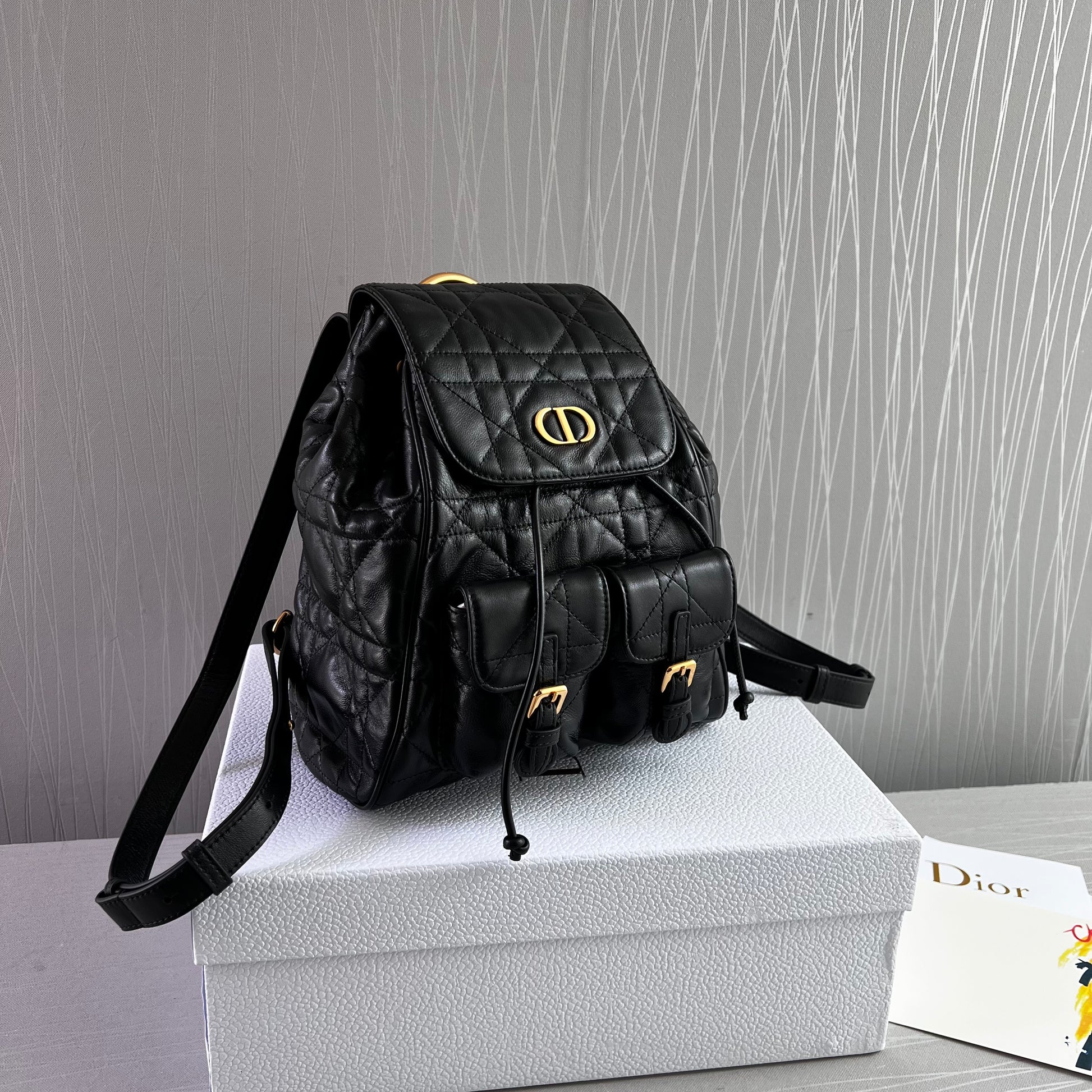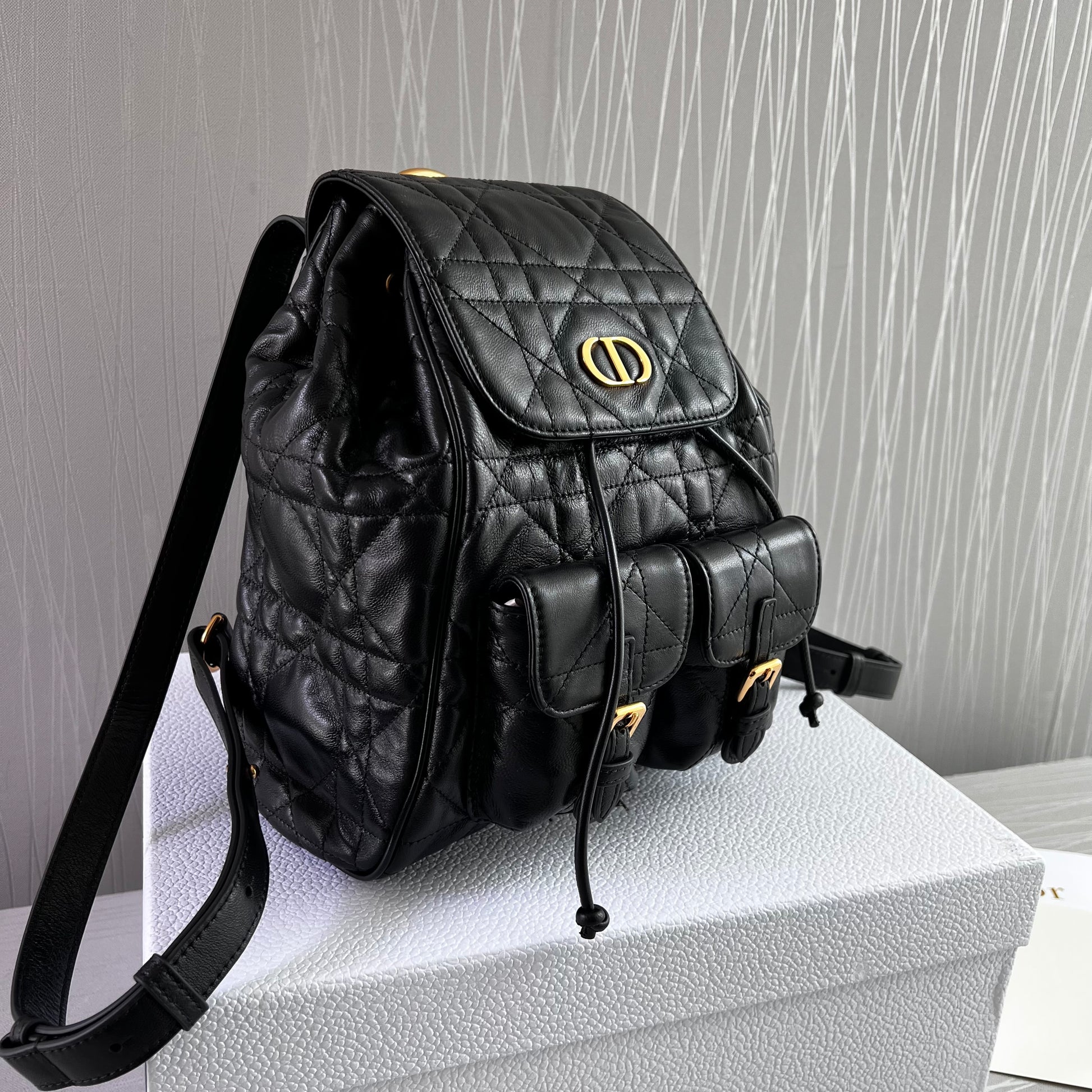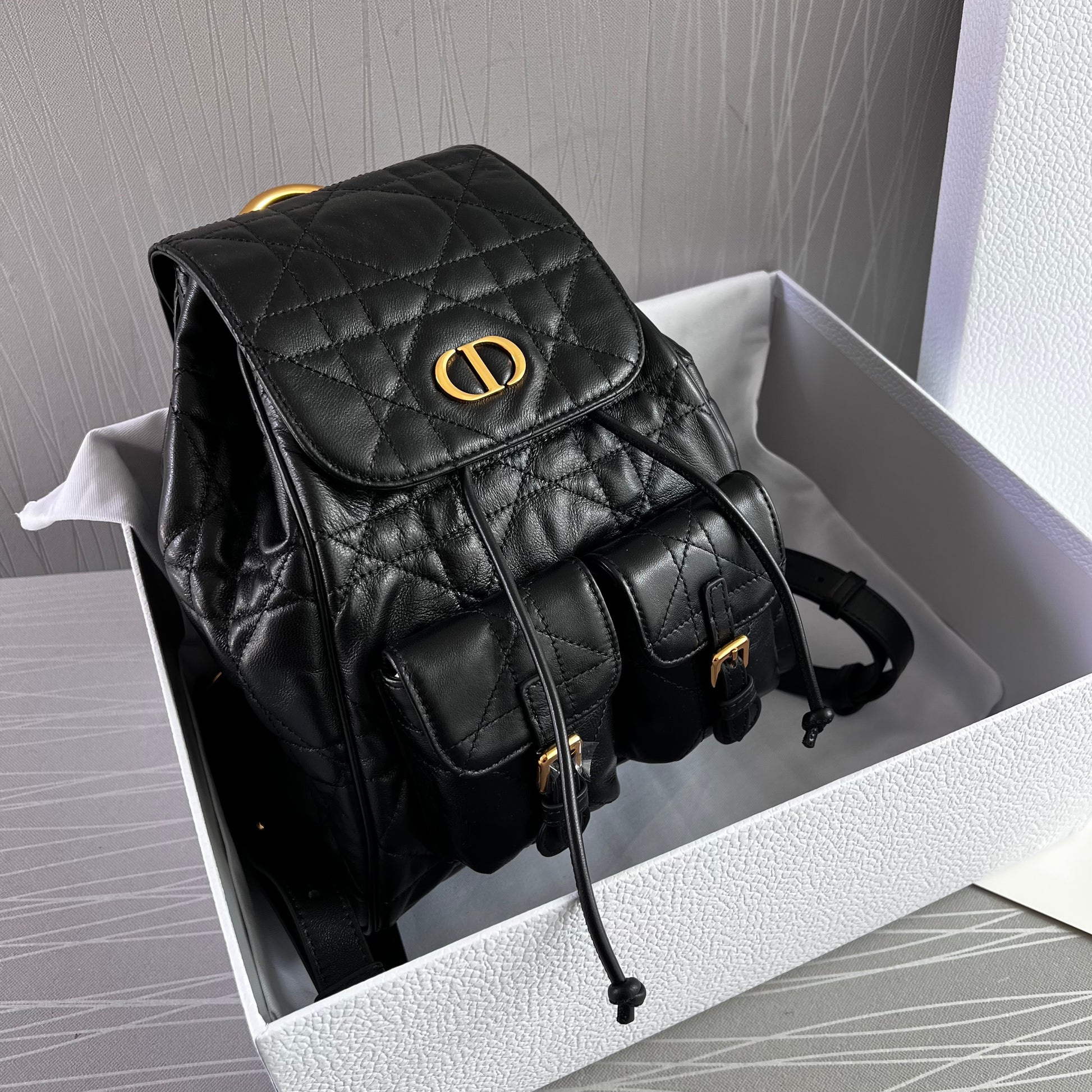 Backpack D piel color negro, herrajes dorados, tamaño mediano. Incluye caja y guardapolvo.