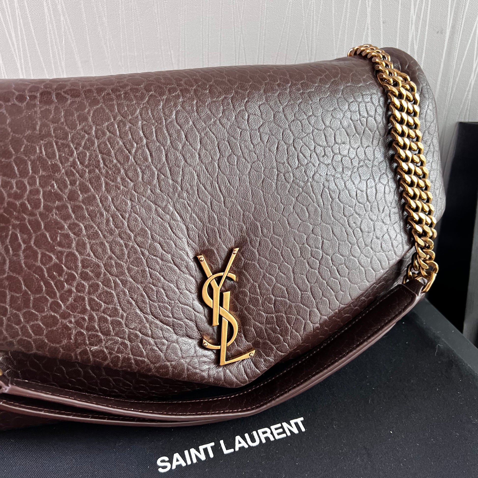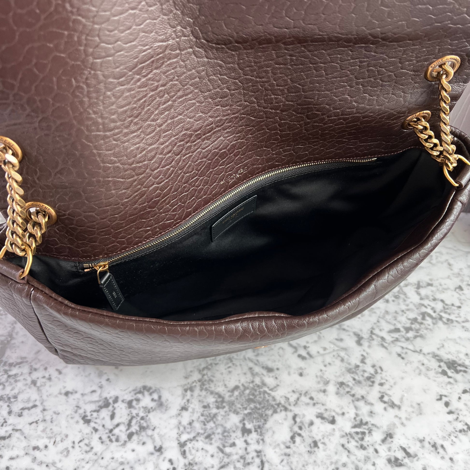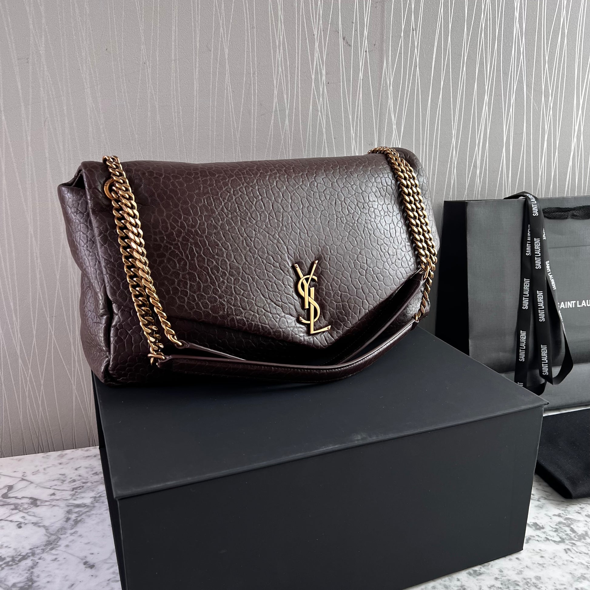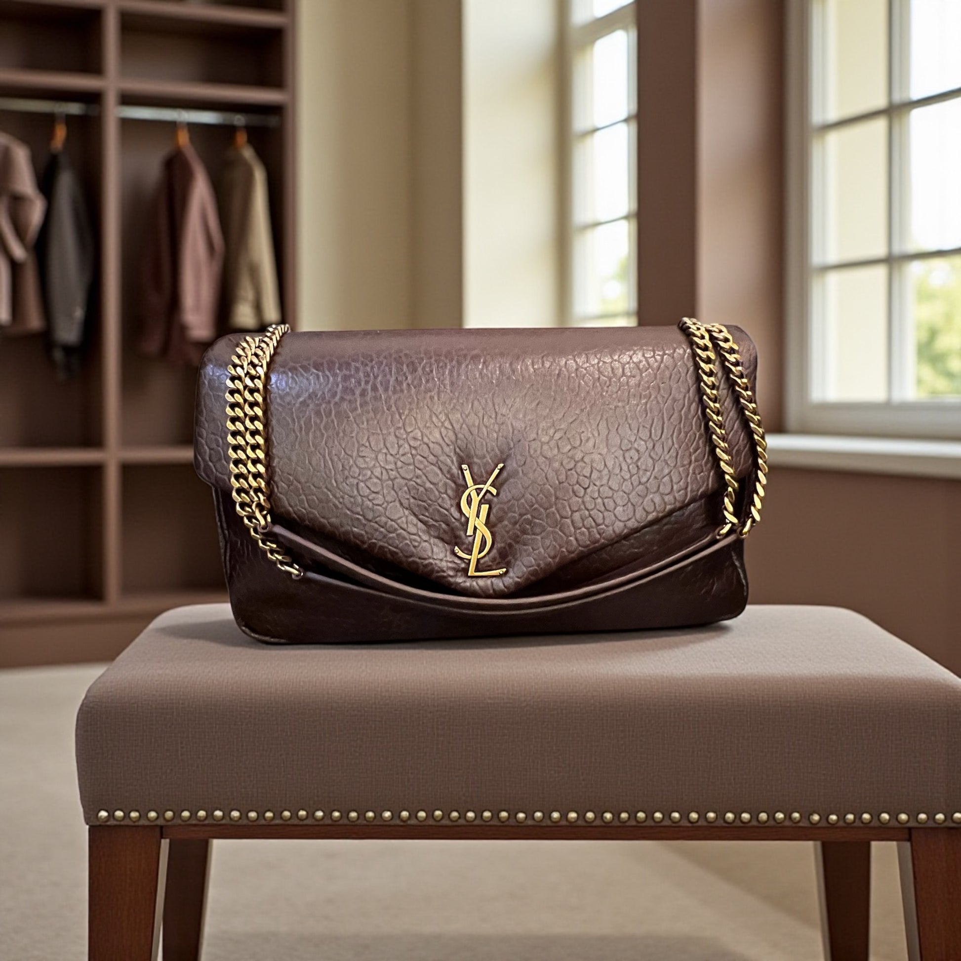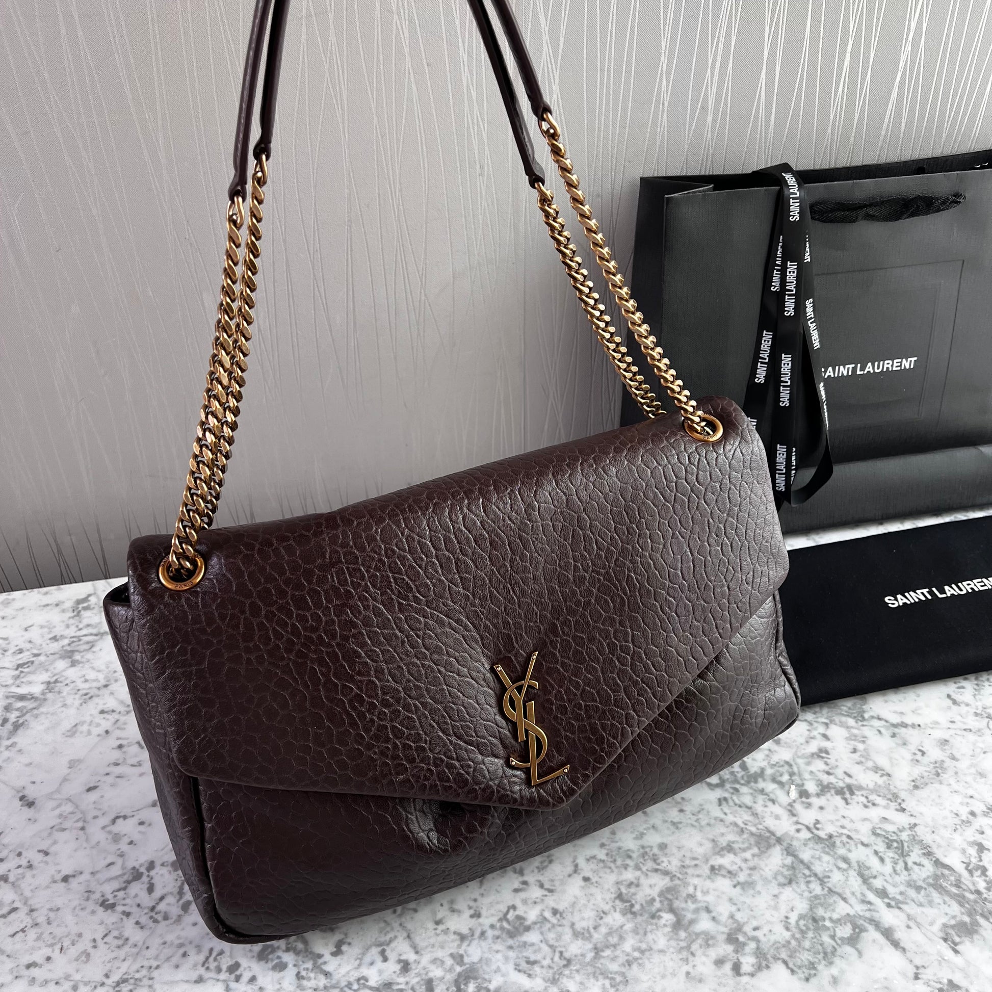 Bolso Y-SL piel de cordero granulada tamaño grande en color café. Dimensiones 38 x 21 x 10 cm. Incluye shopping bag y guardapolvo .