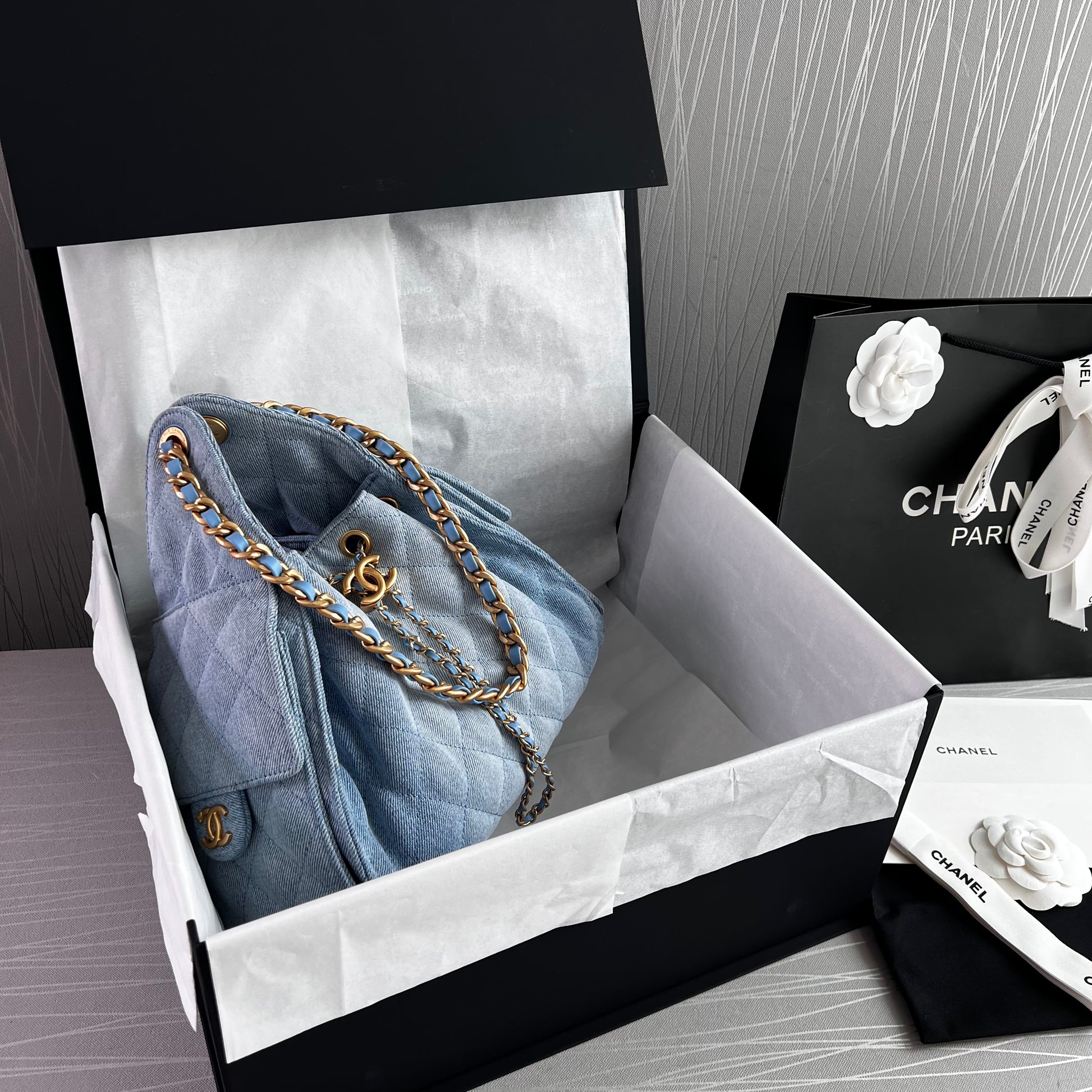 Bolsos laterales. Dimensiones 30 X 26 X 14 cm. Incluye caja, bolso cubrepolvo, shopping bag, listón y flor.