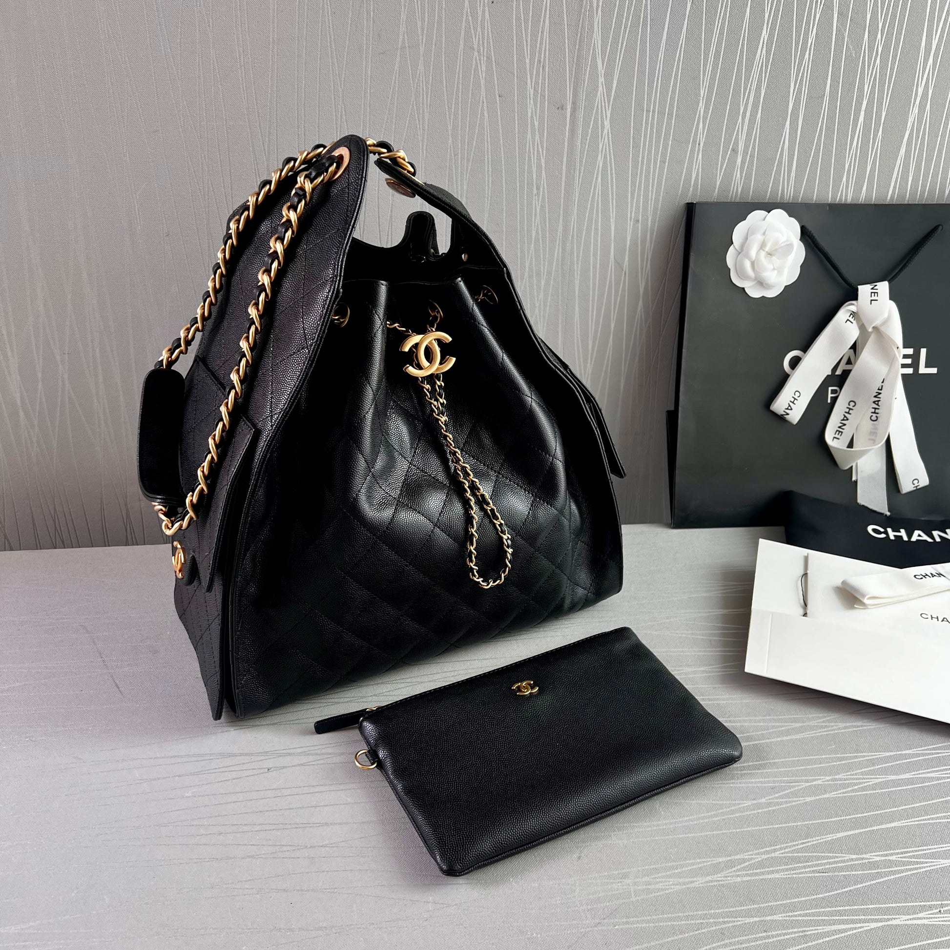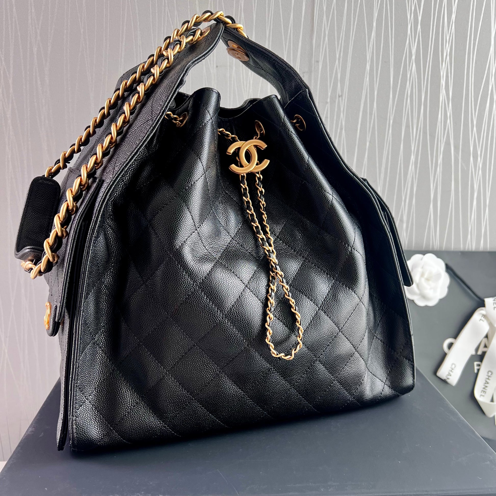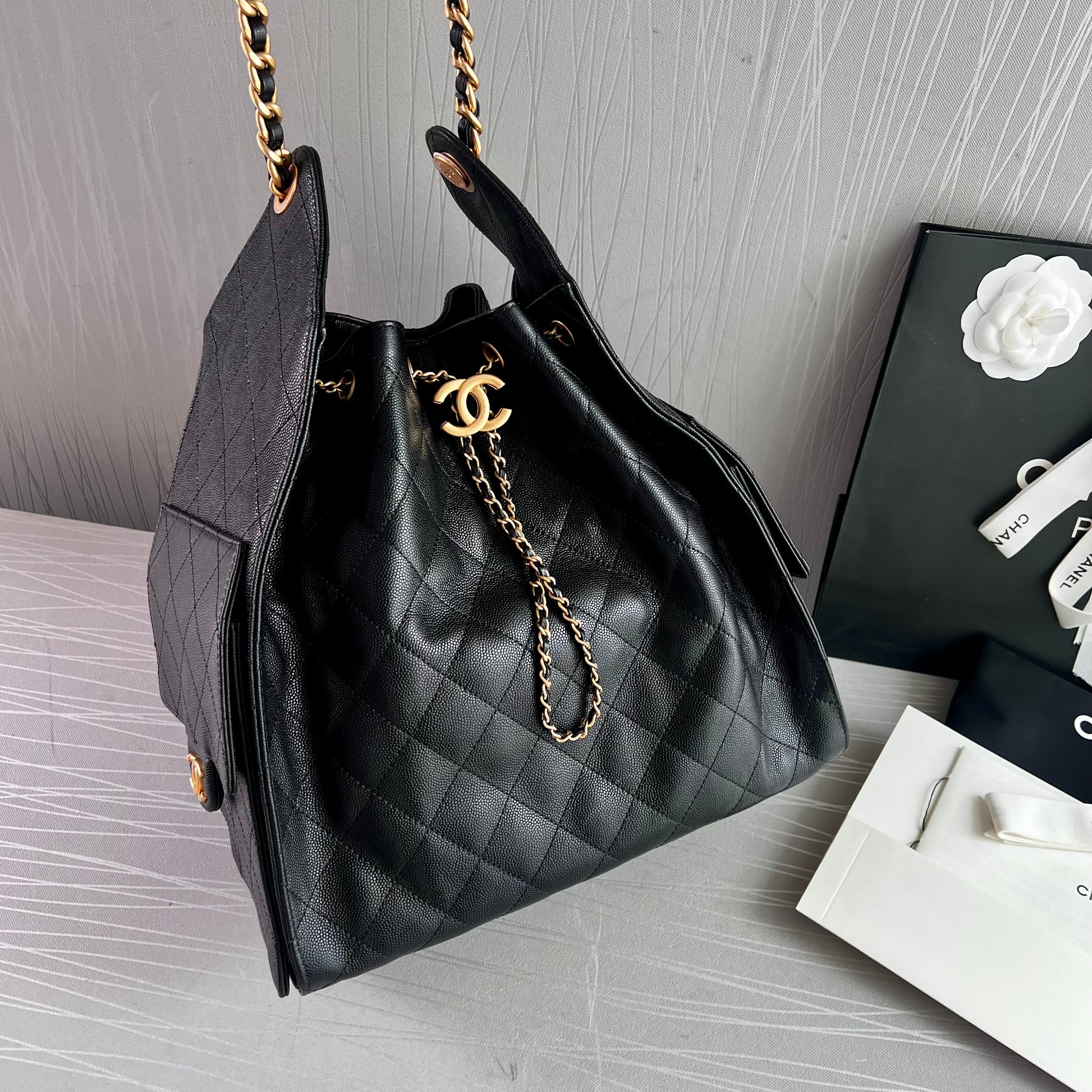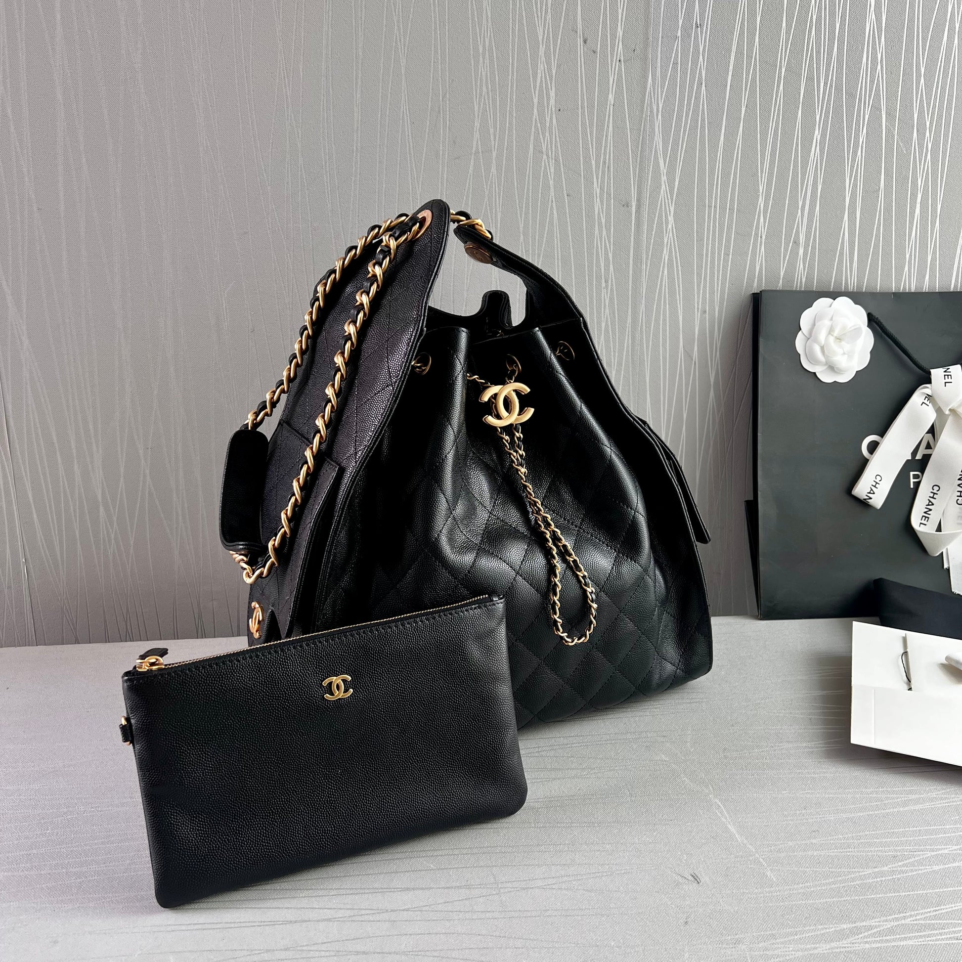 Bolso C hobo piel de ternera granulada color negro con herrajes dorados. Incluye bolso pochette interior. Dimensiones 40 X 30 X 15 cm. Se envía con caja imantada, bolsa cubrepolvo, flor y listón.