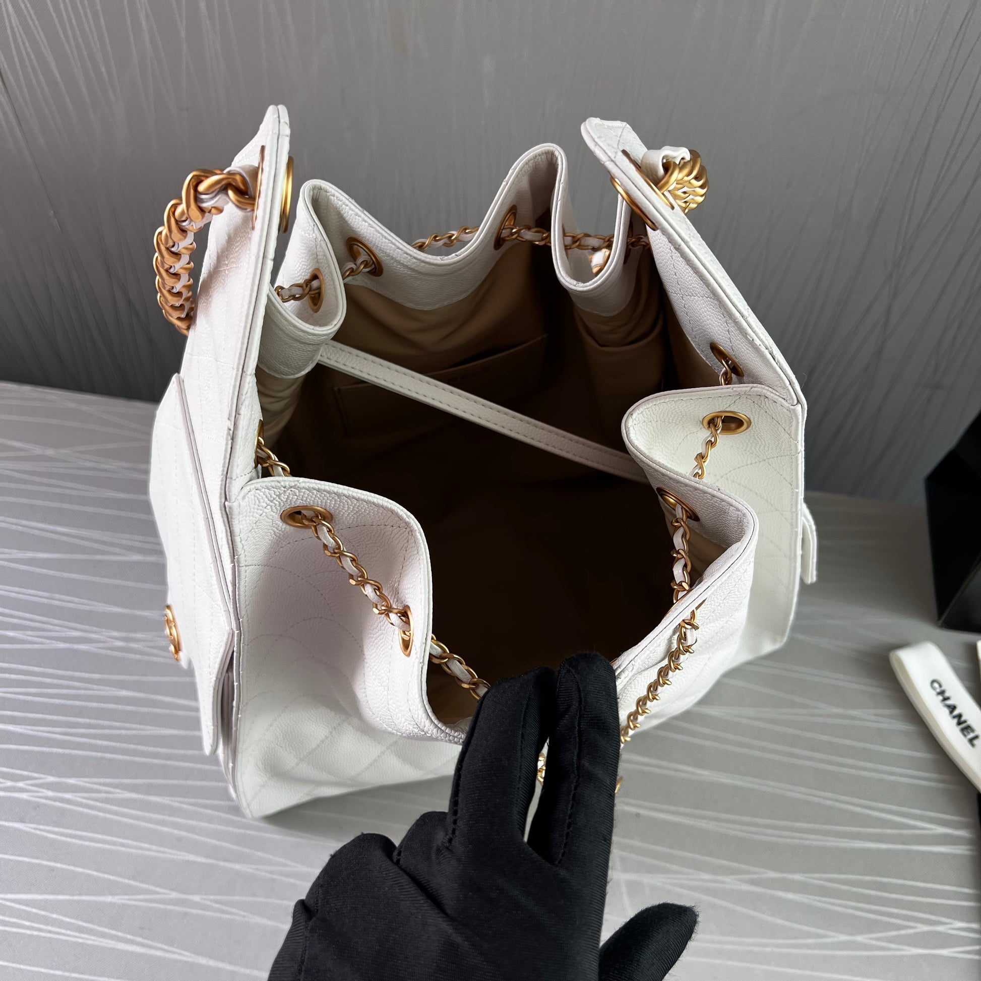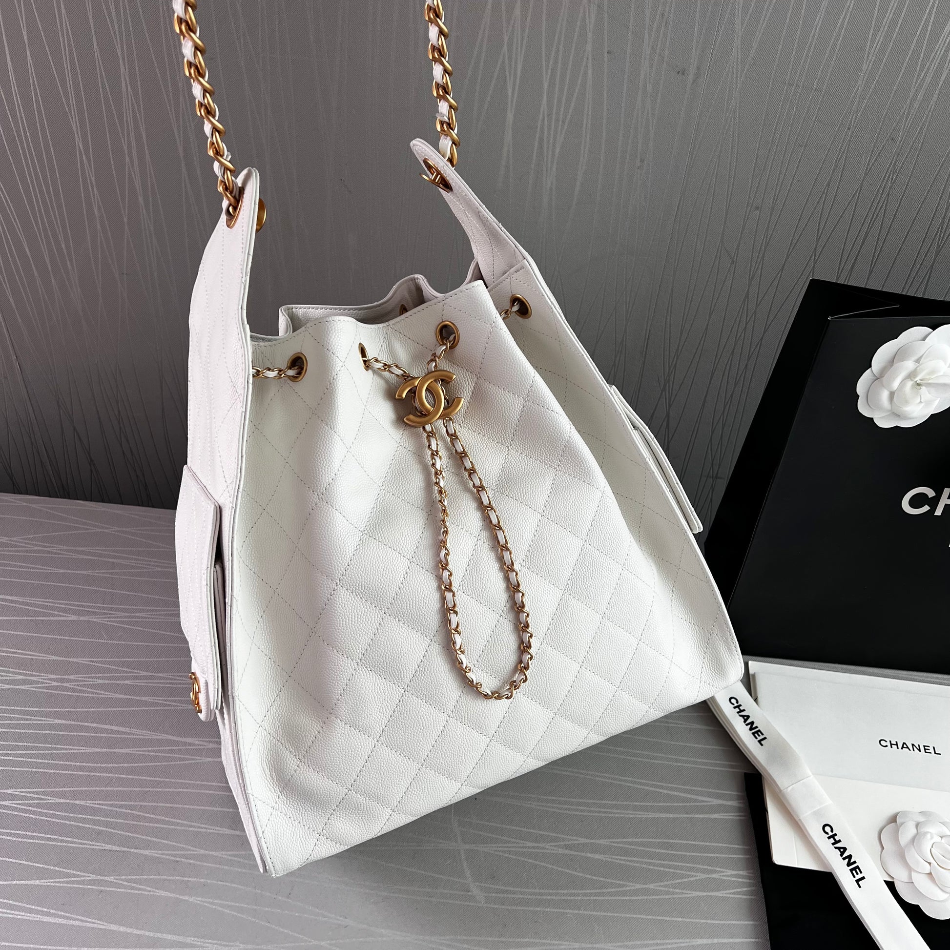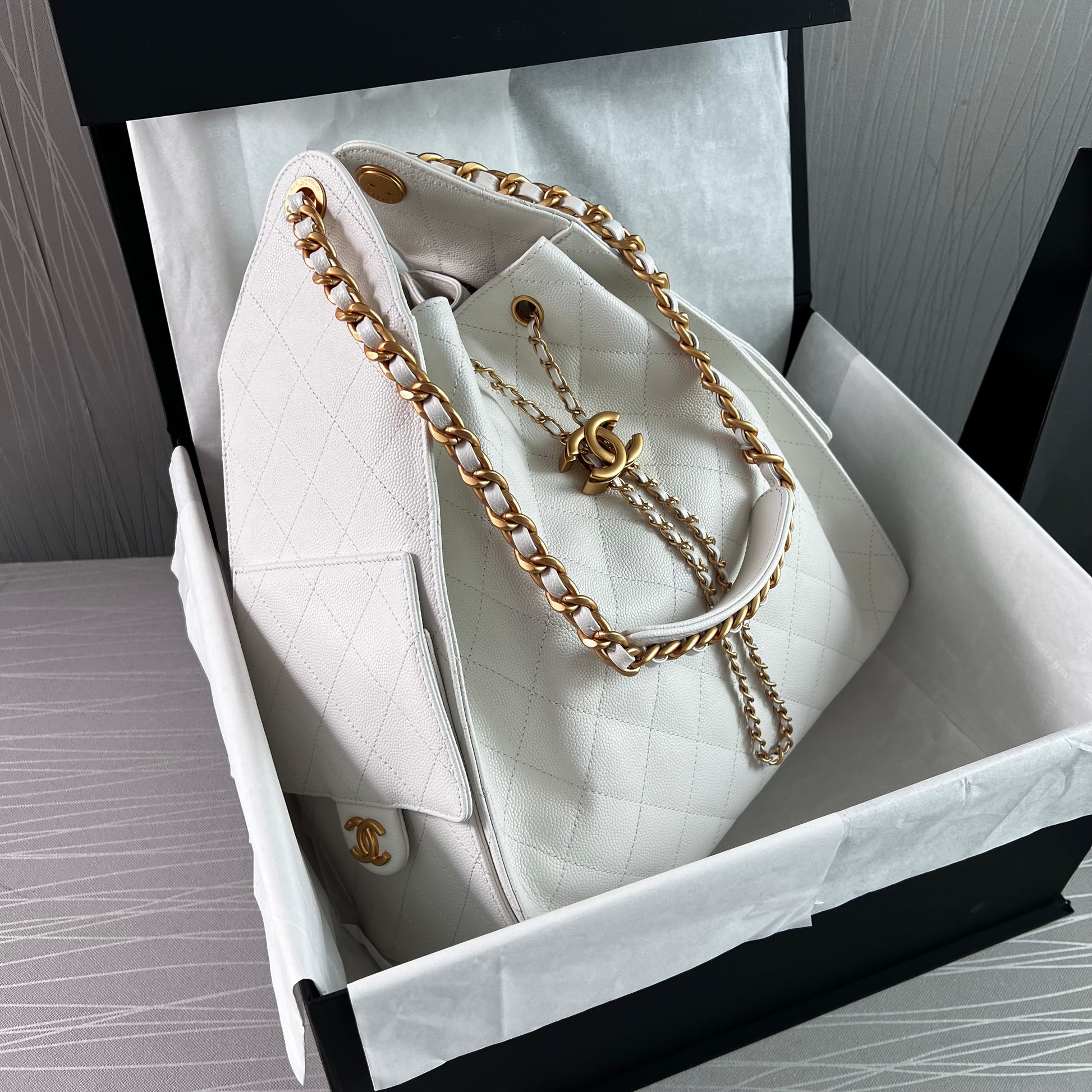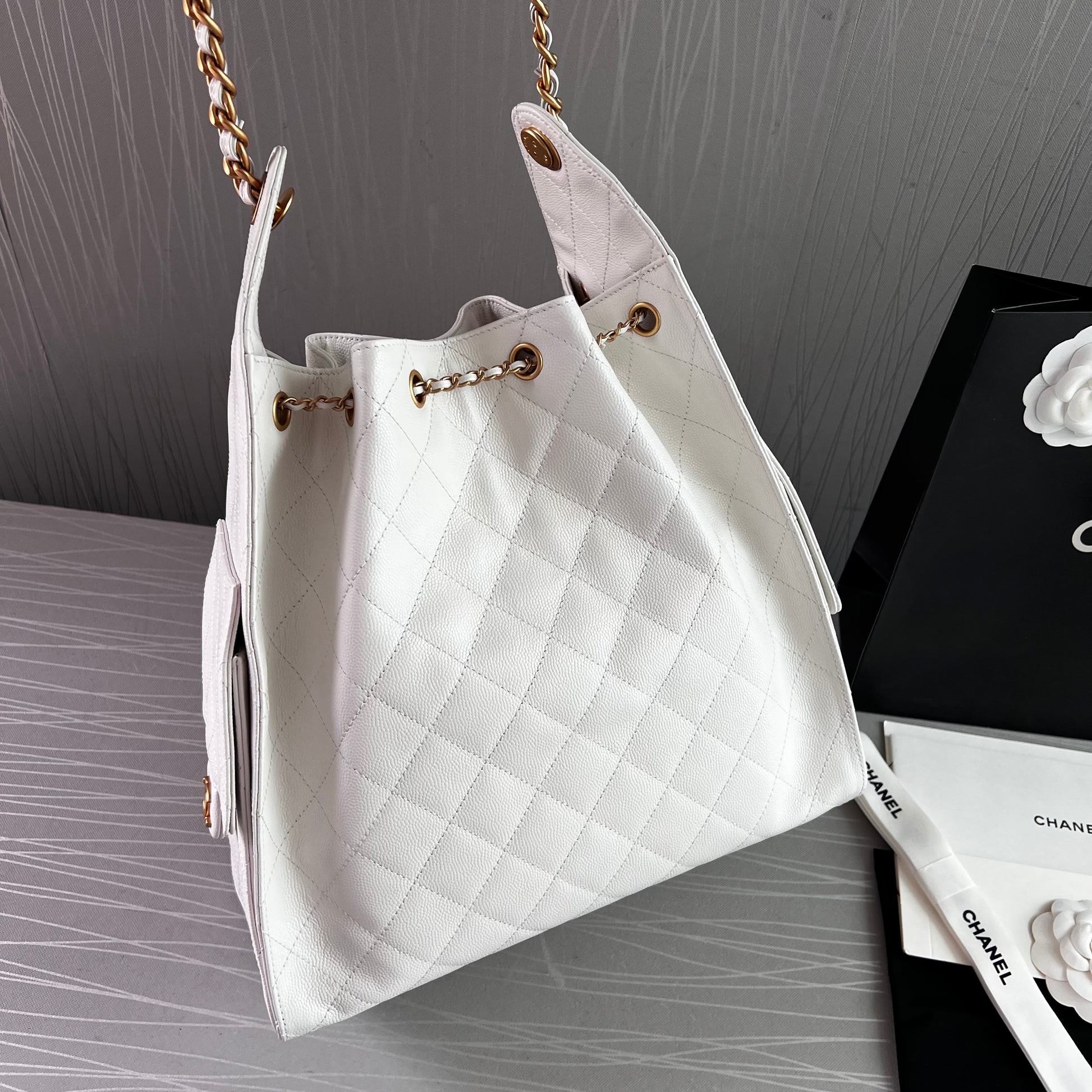 Bolso C hobo piel de ternera granulada color blanco con herrajes dorados. Incluye bolso pochette interior. Dimensiones 40 X 30 X 15 cm. Se envía con caja imantada, bolsa cubrepolvo, flor y listón.