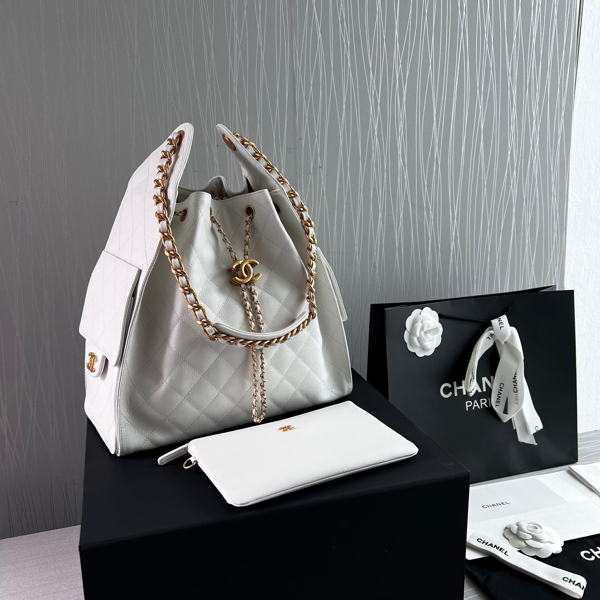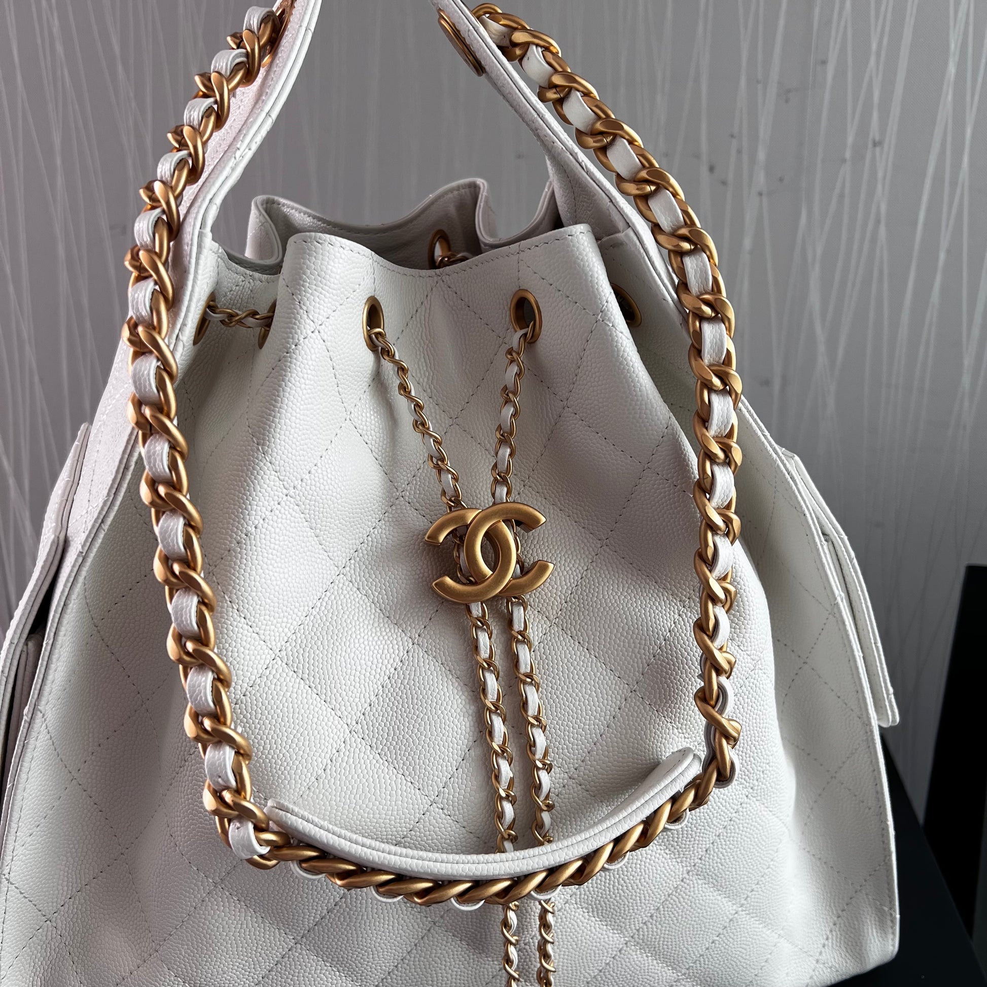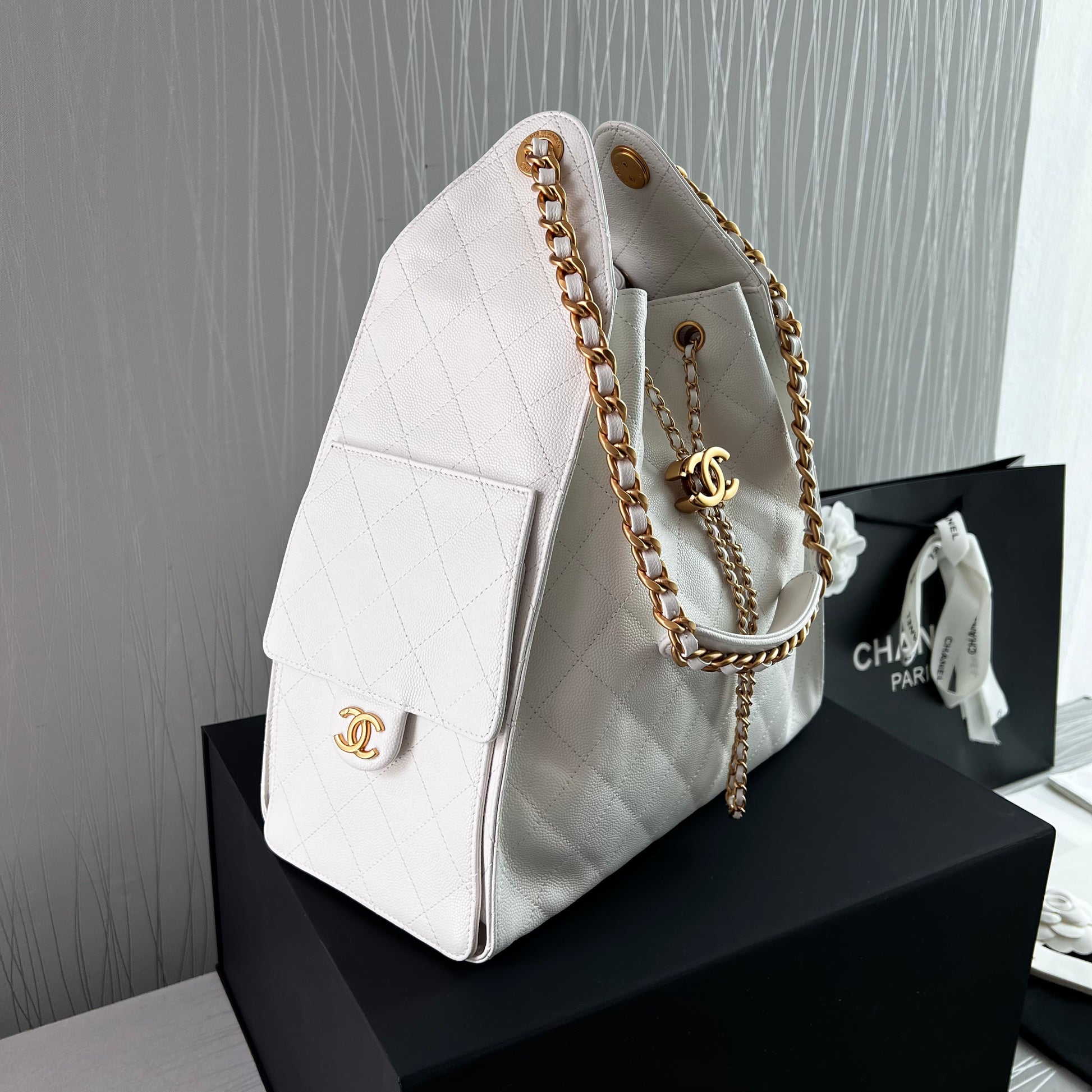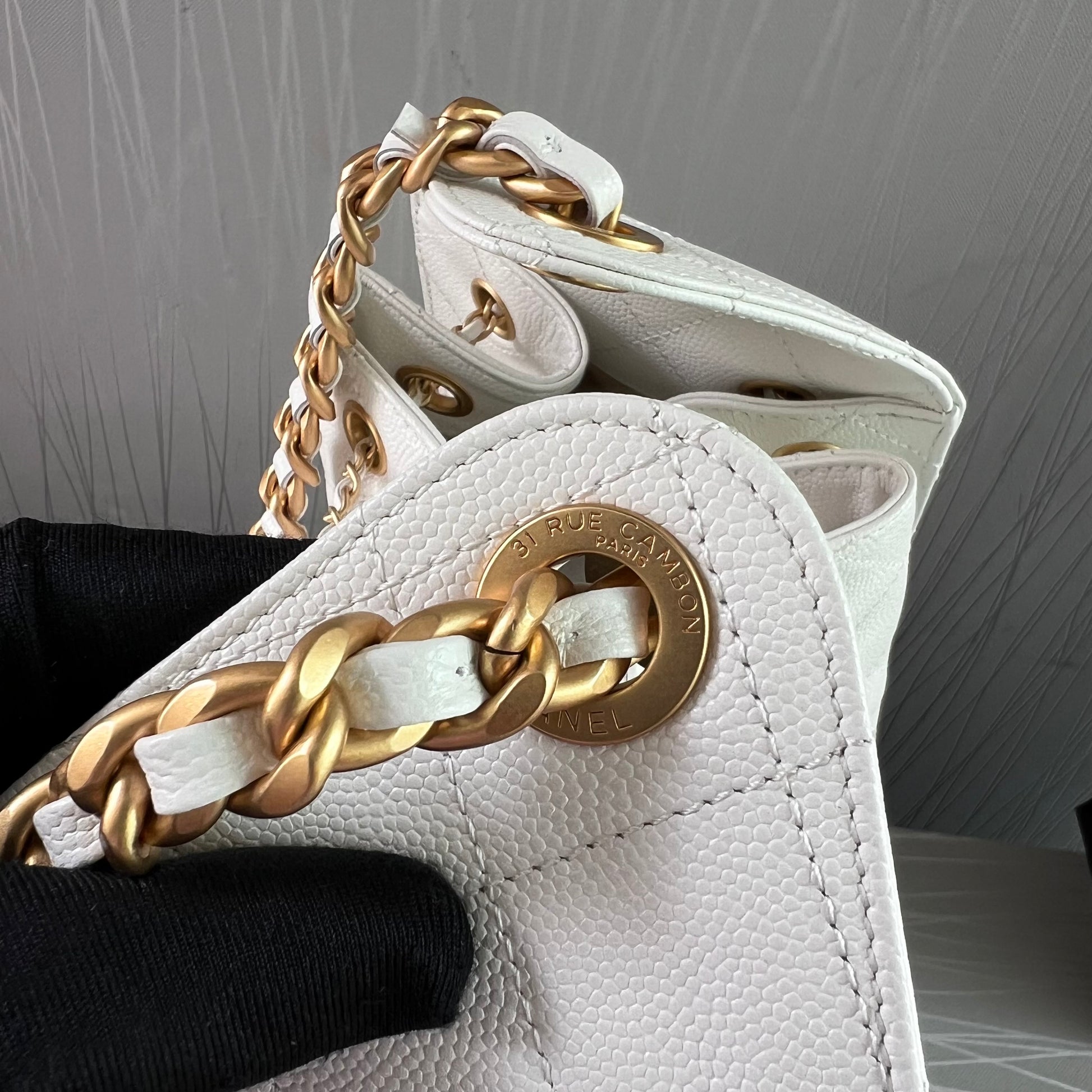 Bolso C hobo piel de ternera granulada color blanco con herrajes dorados. Incluye bolso pochette interior. Dimensiones 40 X 30 X 15 cm. Se envía con caja imantada, bolsa cubrepolvo, flor y listón.