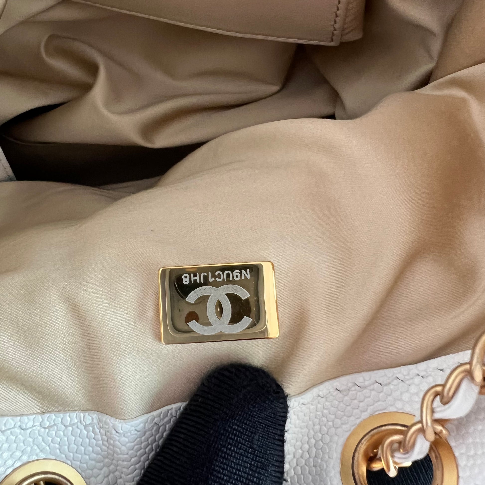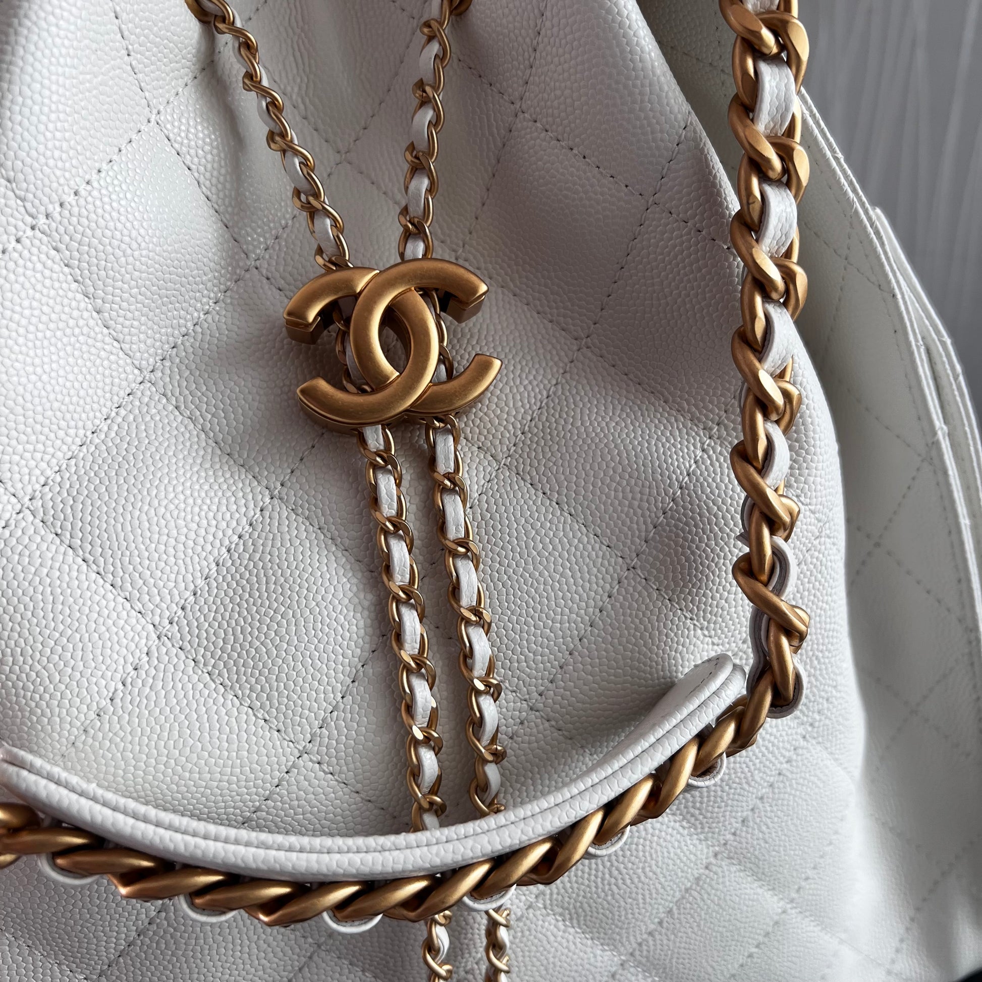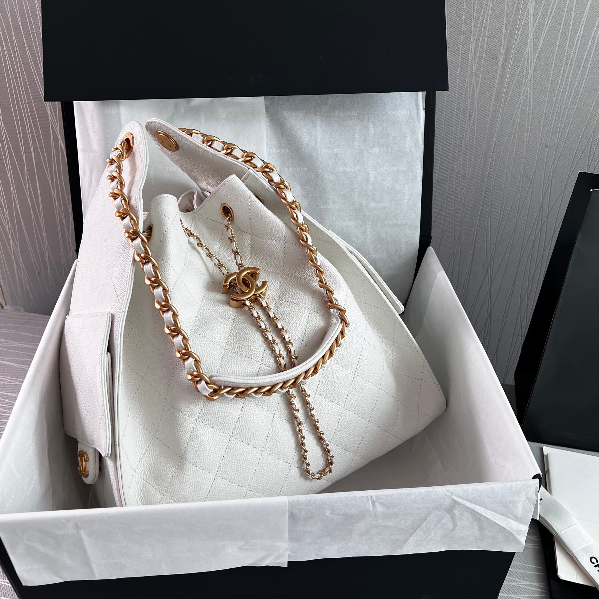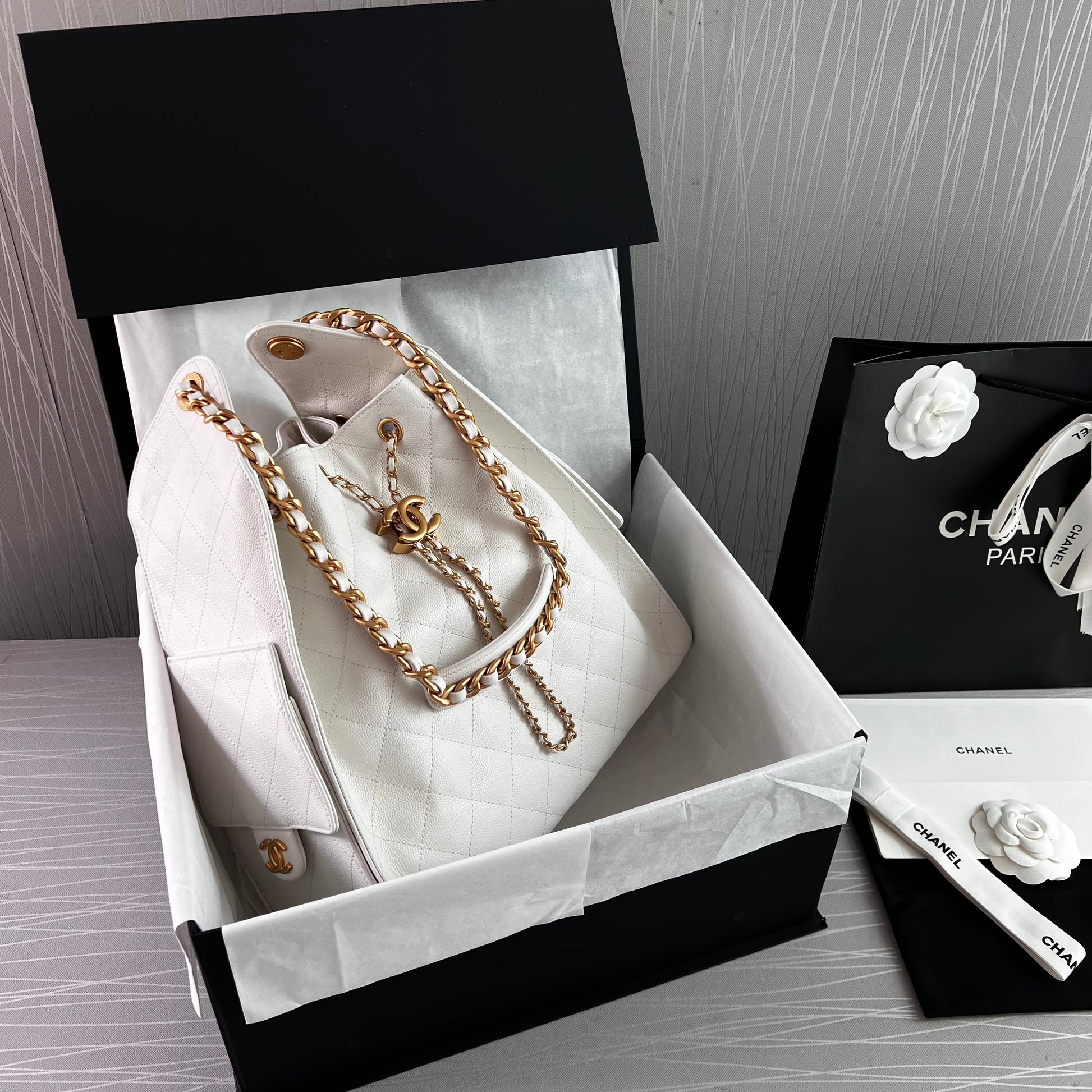 Bolso C hobo piel de ternera granulada color blanco con herrajes dorados. Incluye bolso pochette interior. Dimensiones 40 X 30 X 15 cm. Se envía con caja imantada, bolsa cubrepolvo, flor y listón.