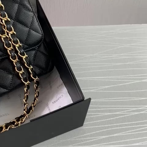 Bolso C C-lassic negro piel caviar herrajes color dorado