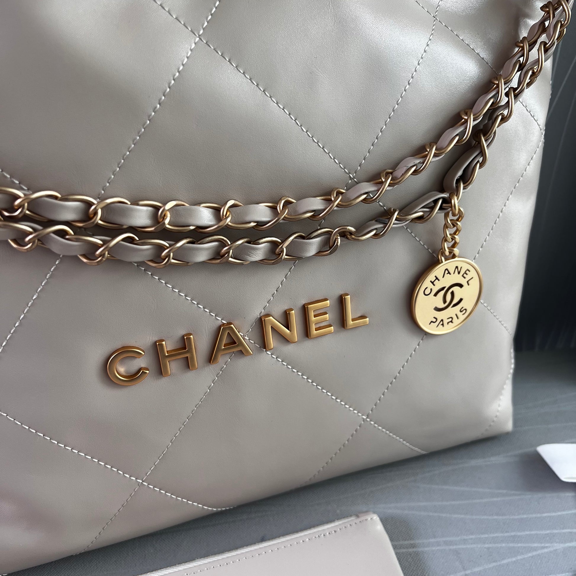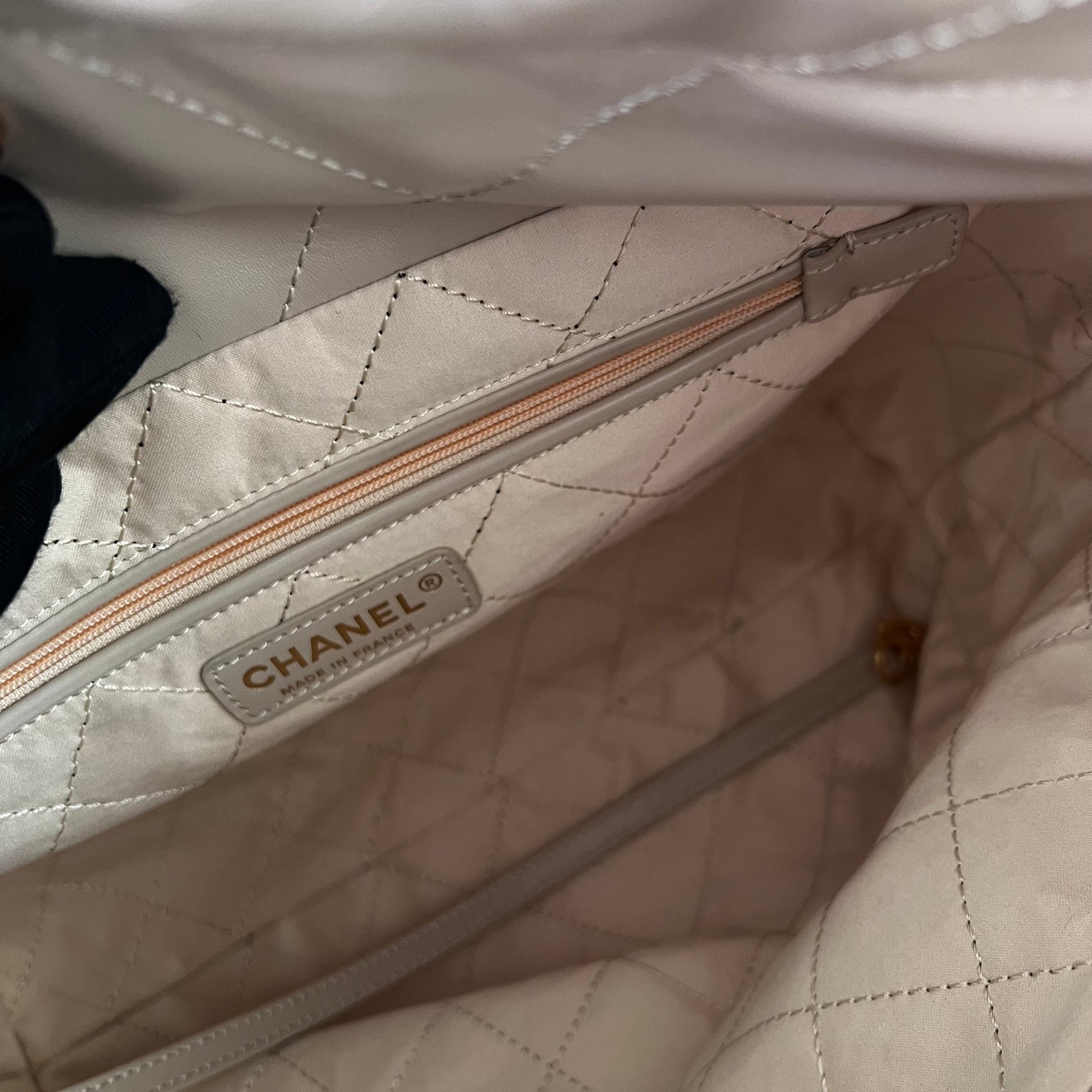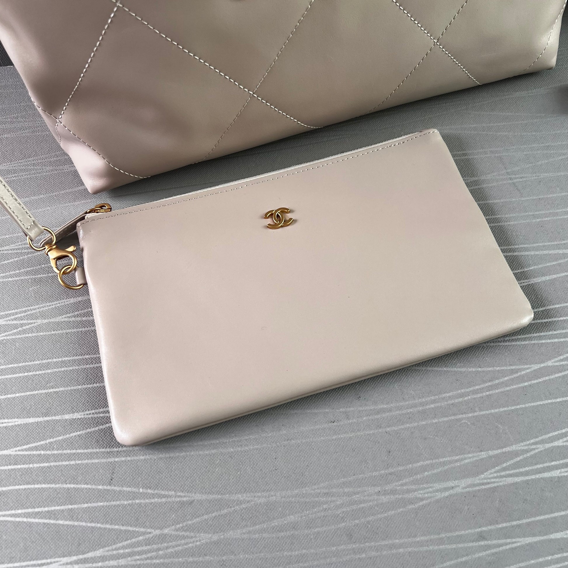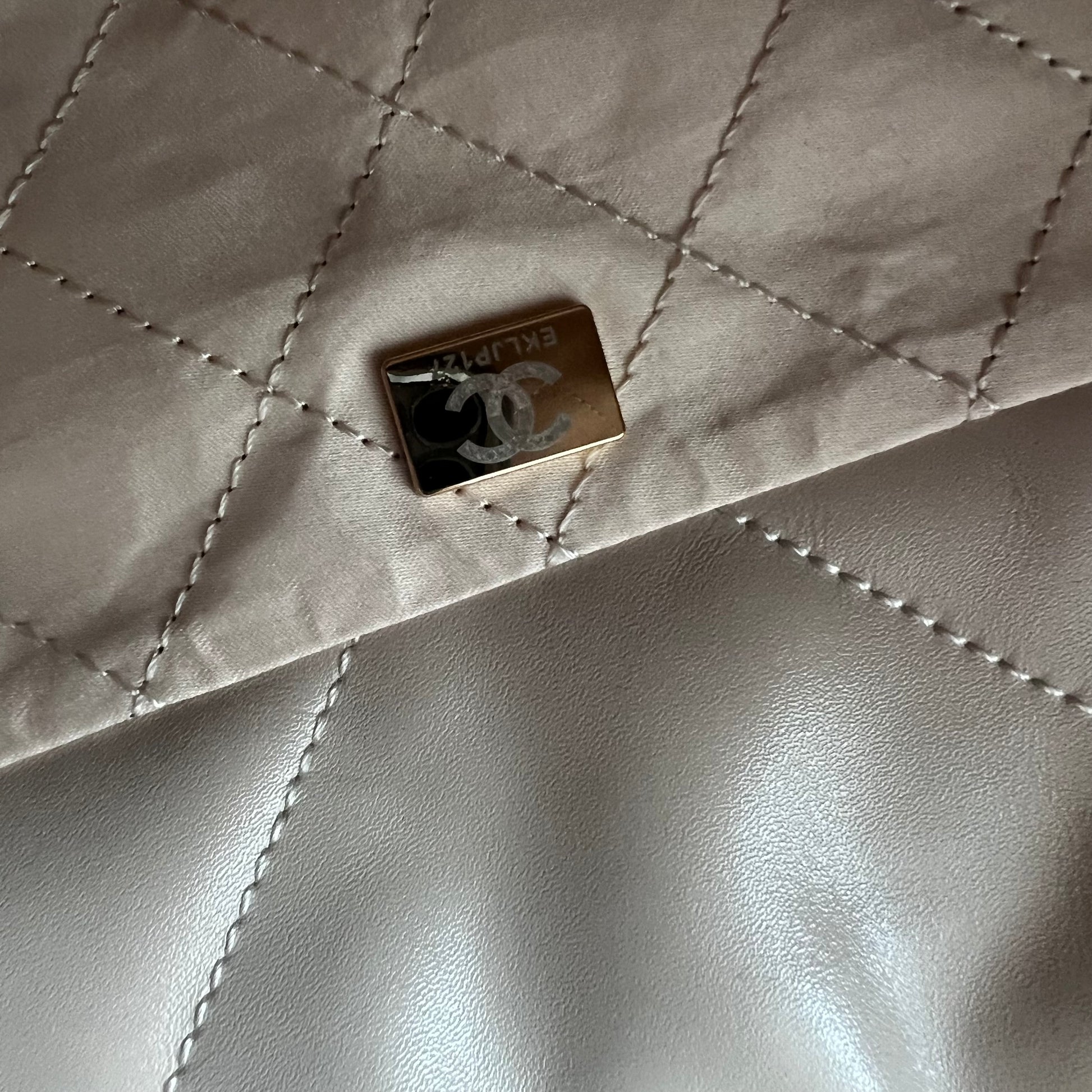 Bolso C piel color beige claro , herrajes dorados