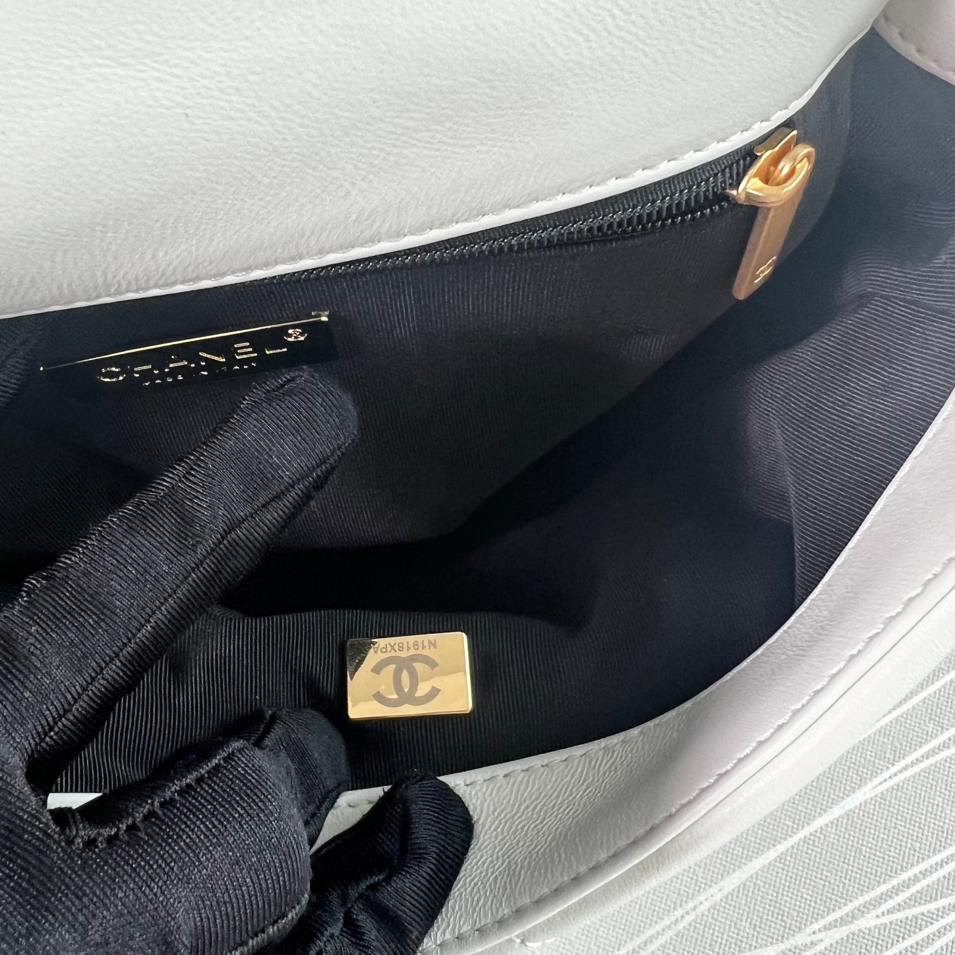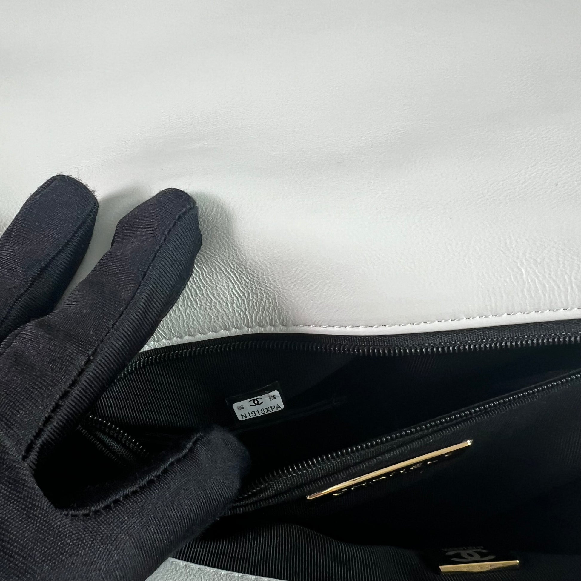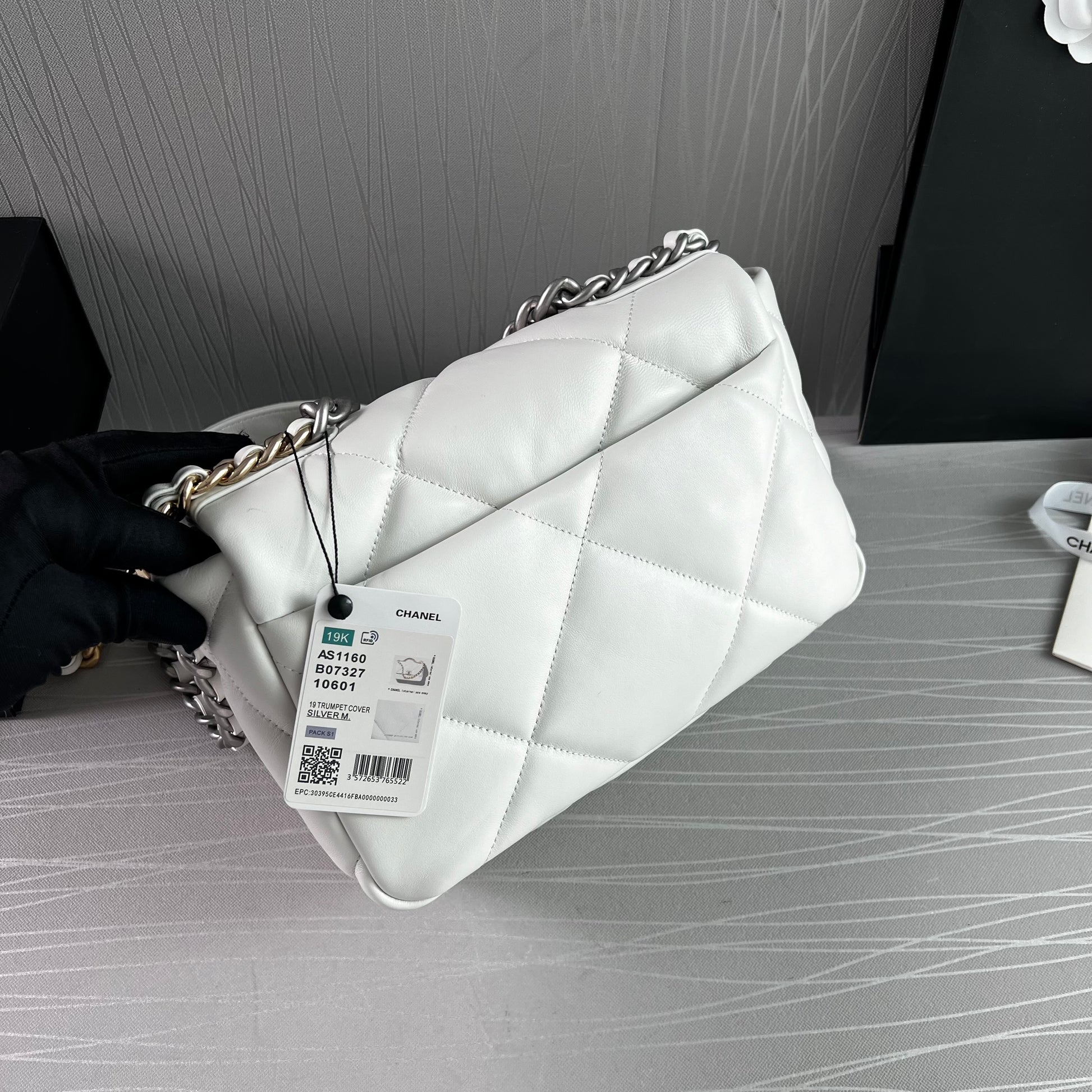 Bolso en piel color blanco, 26 cm, herrajes en 3 colores, incluye caja, shopping bag, bolsa guardapolvo, flor y listón.