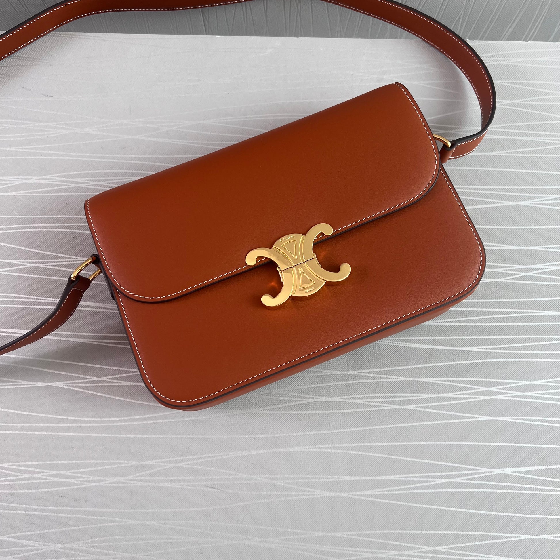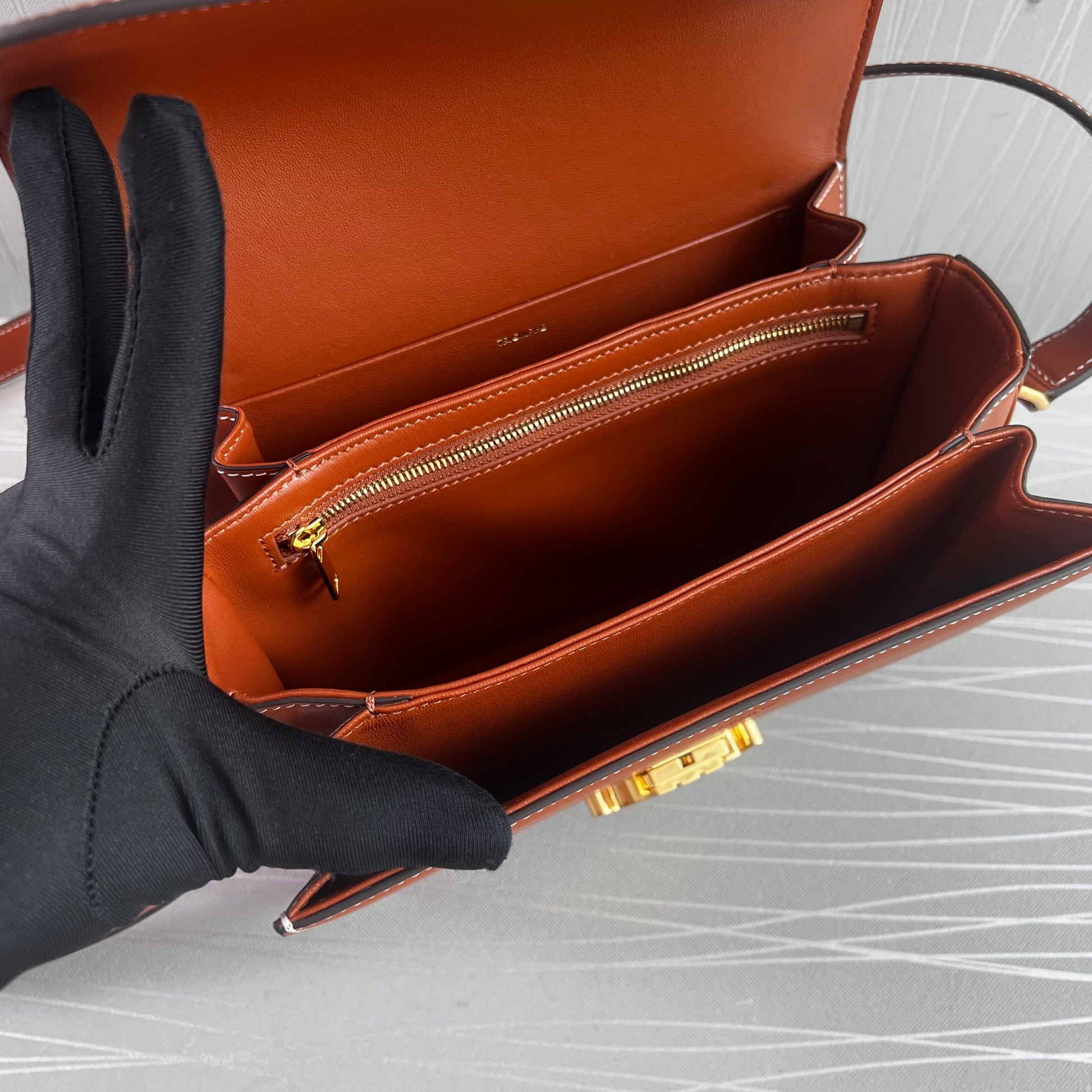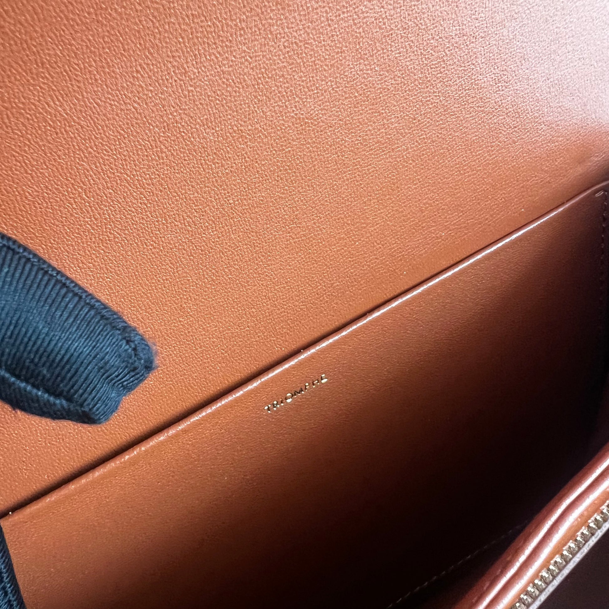 Bolso piel color camel con herraje dorado. Incluye caja y guardapolvo.Dimensiones 22 X 15.5 X 6 cm.