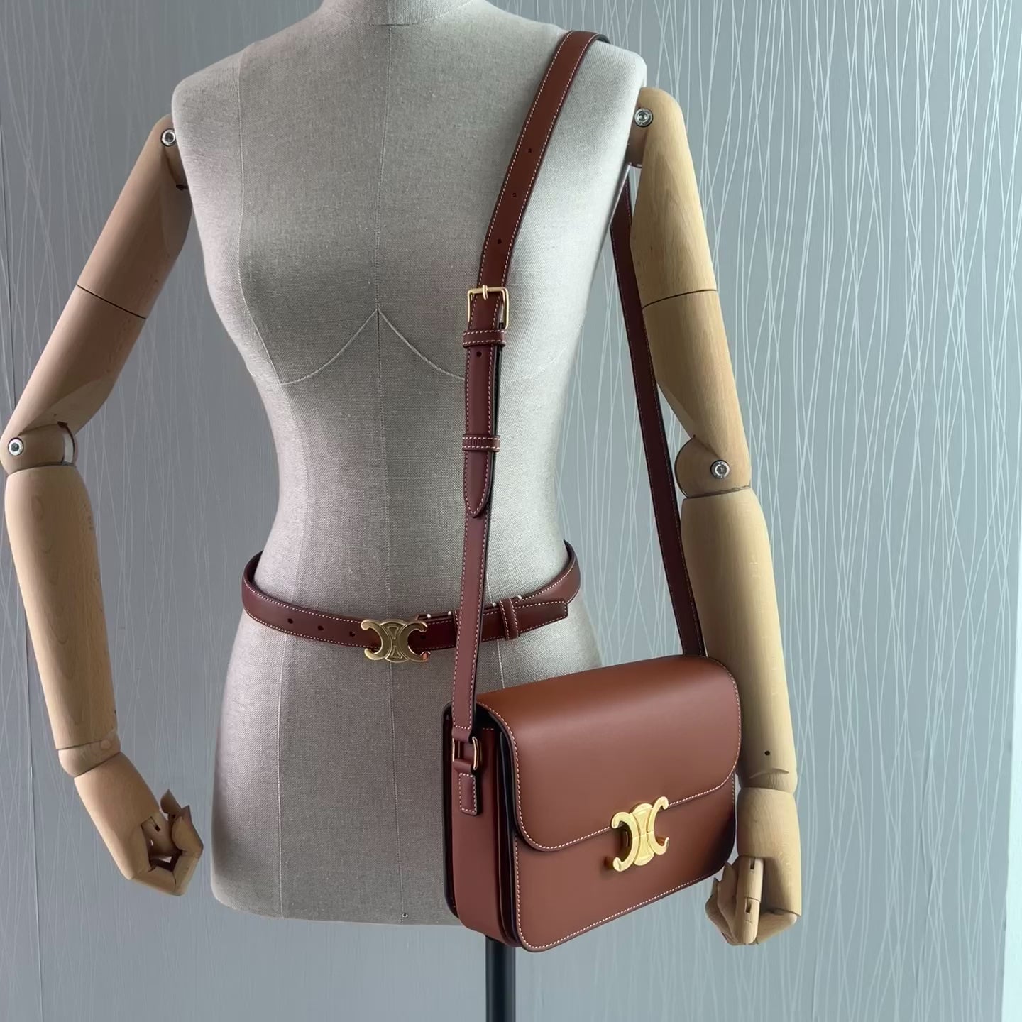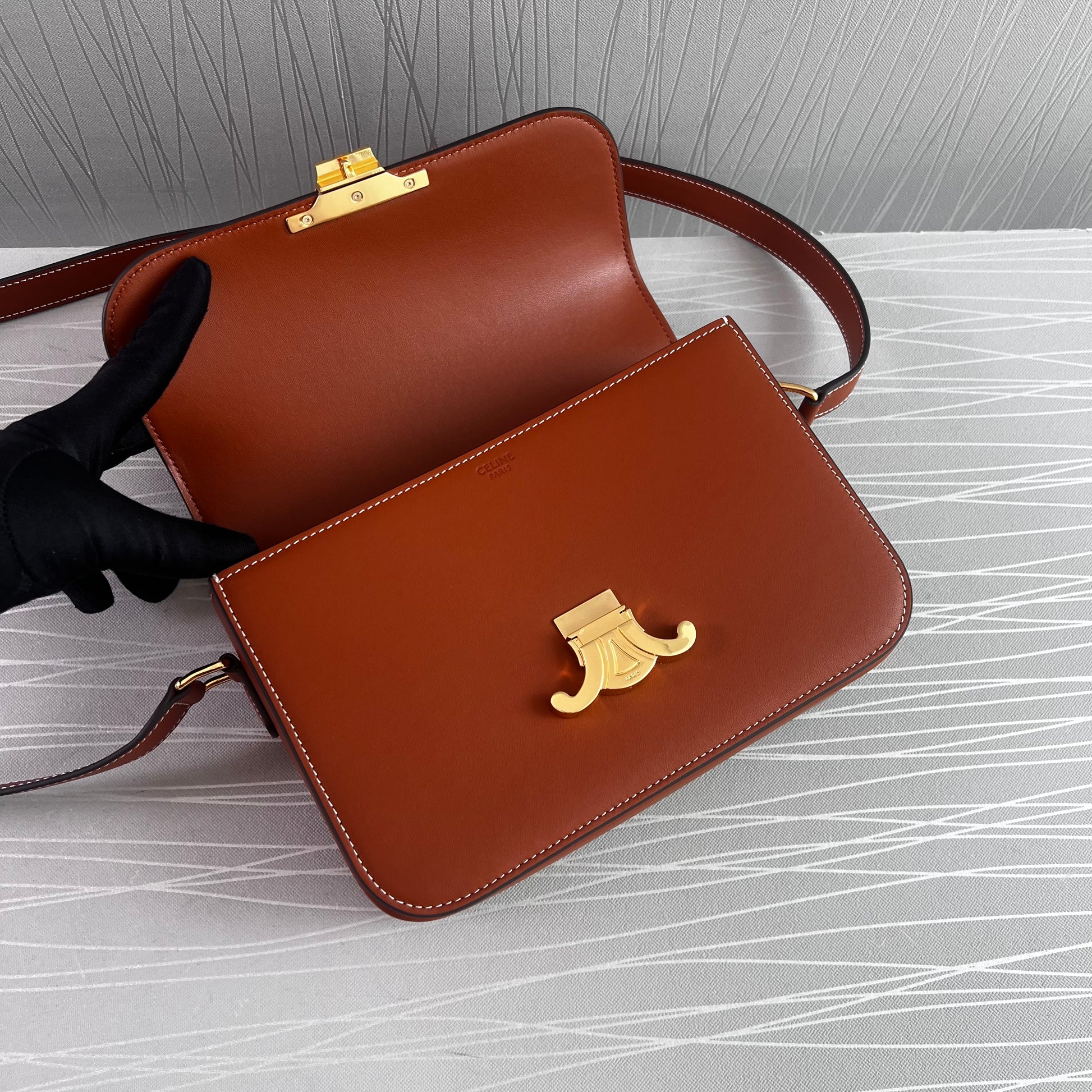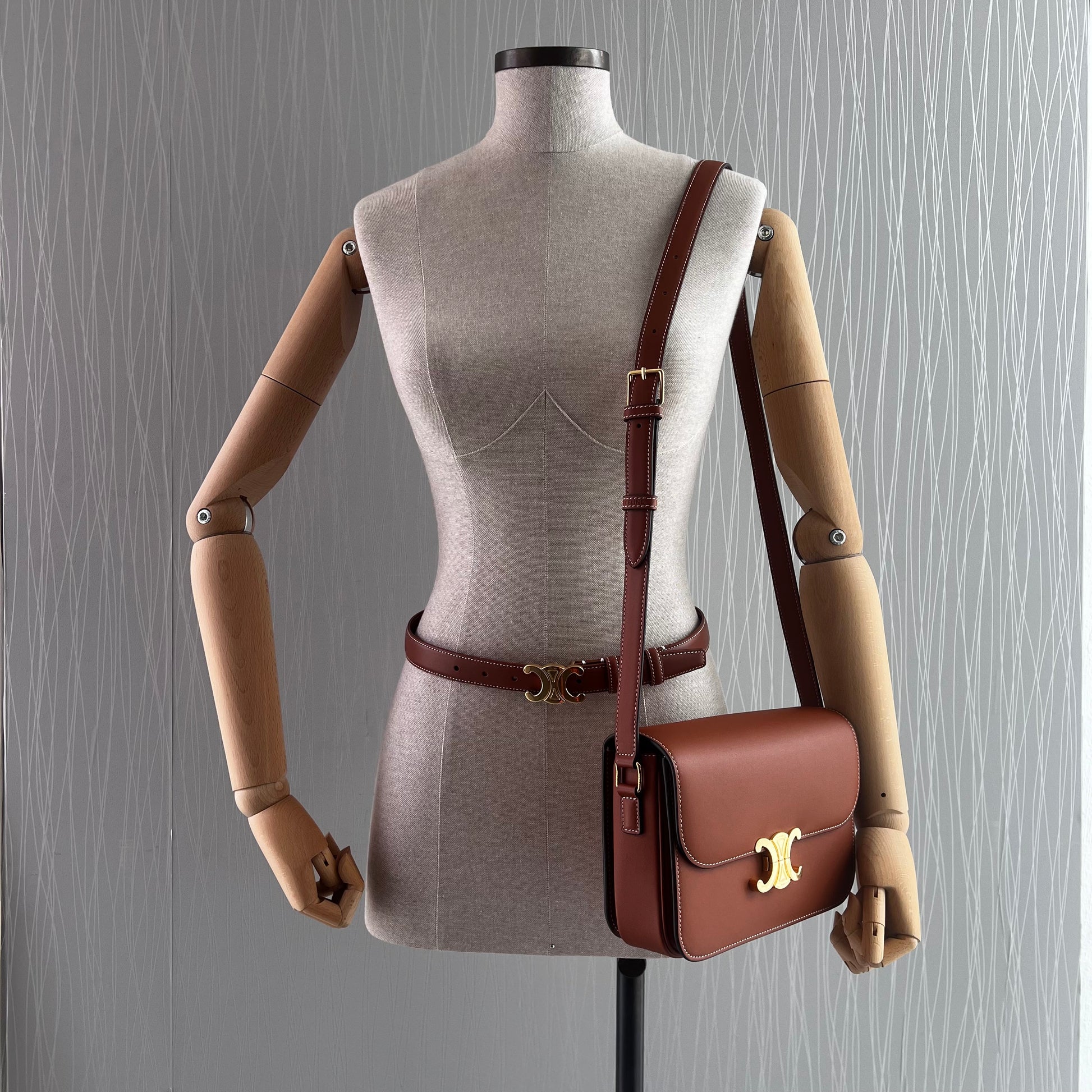 Bolso piel color camel con herraje dorado. Incluye caja y guardapolvo.Dimensiones 22 X 15.5 X 6 cm.