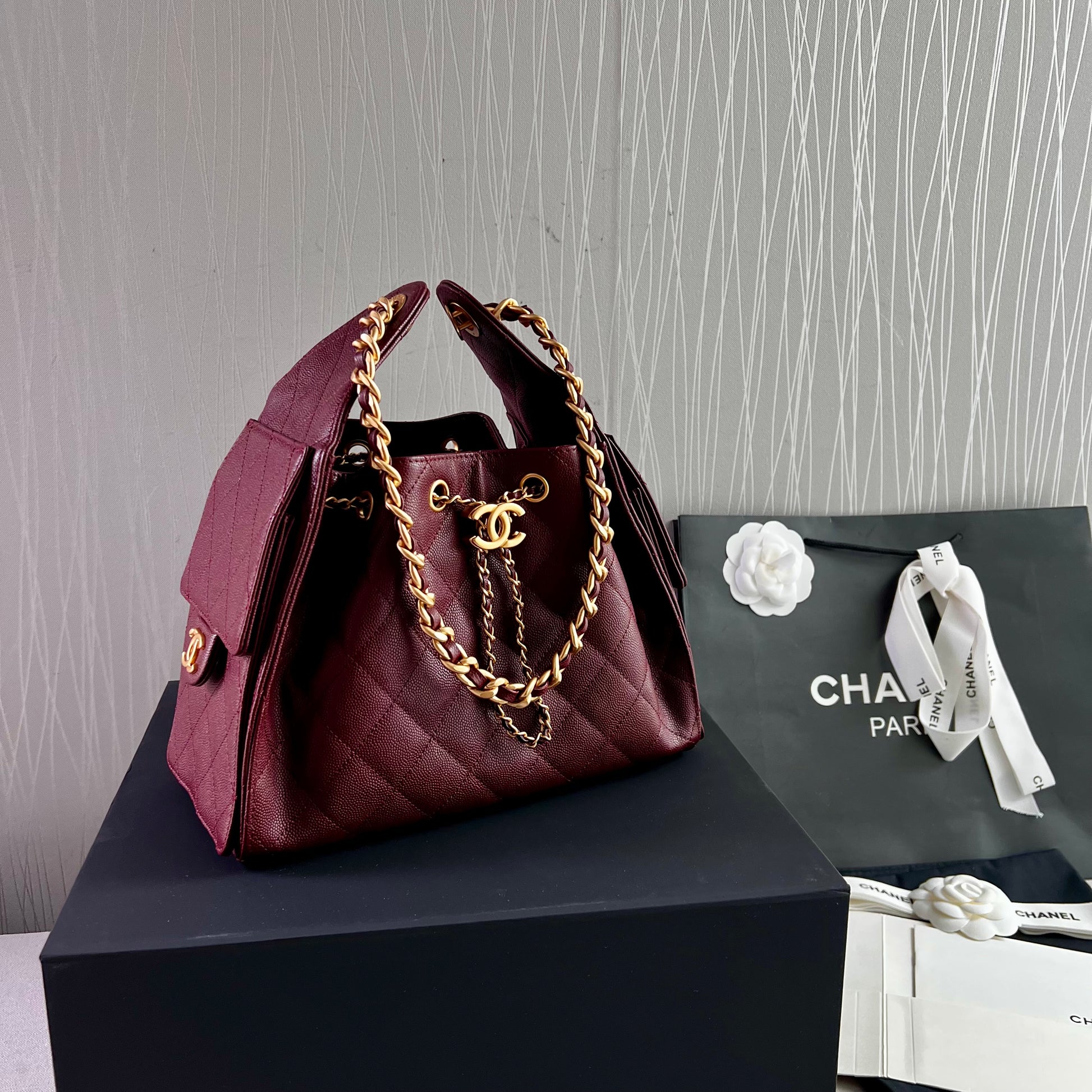 Bolsos laterales. Dimensiones 30 X 26 X 14 cm. Incluye caja, bolso cubrepolvo, shopping bag, listón y flor.