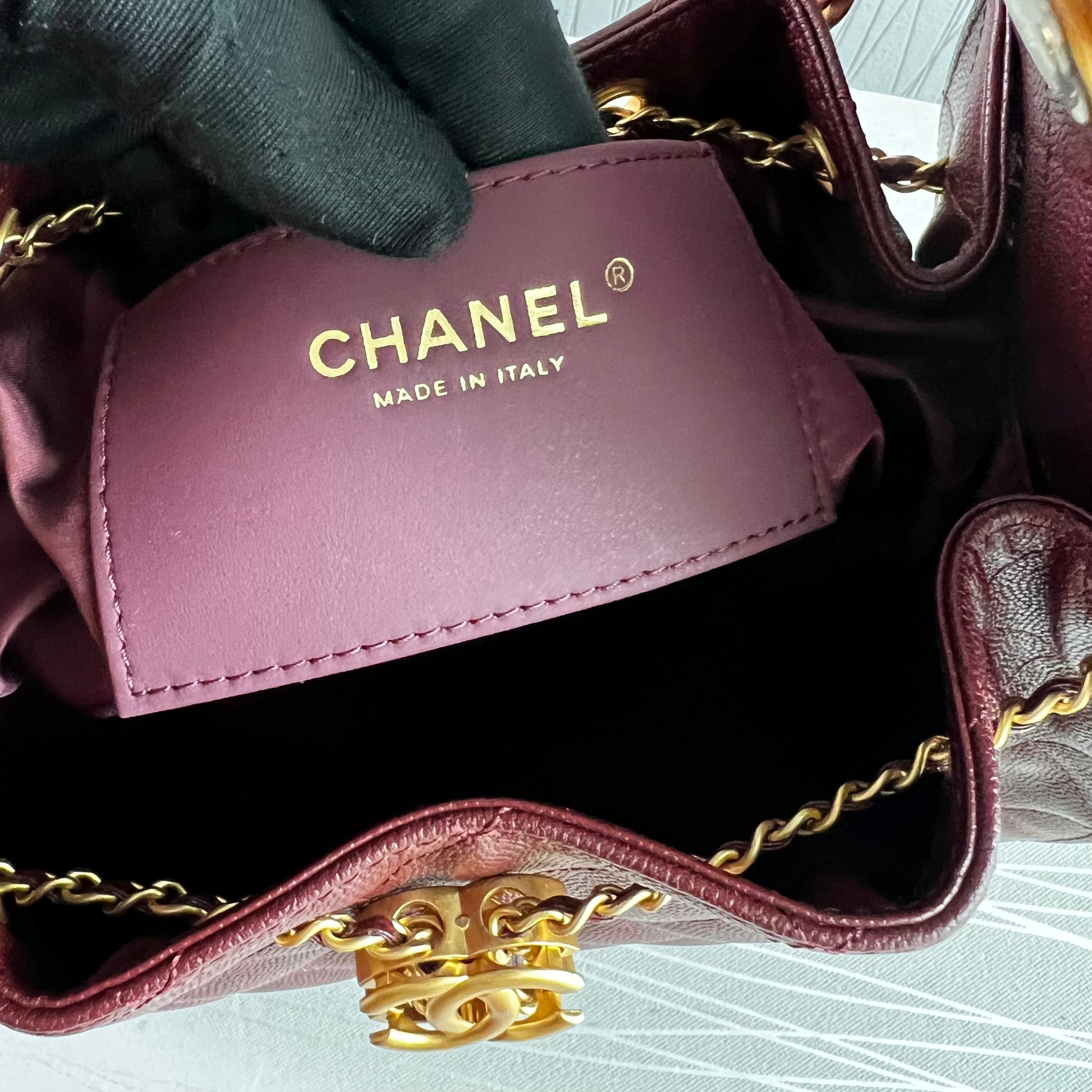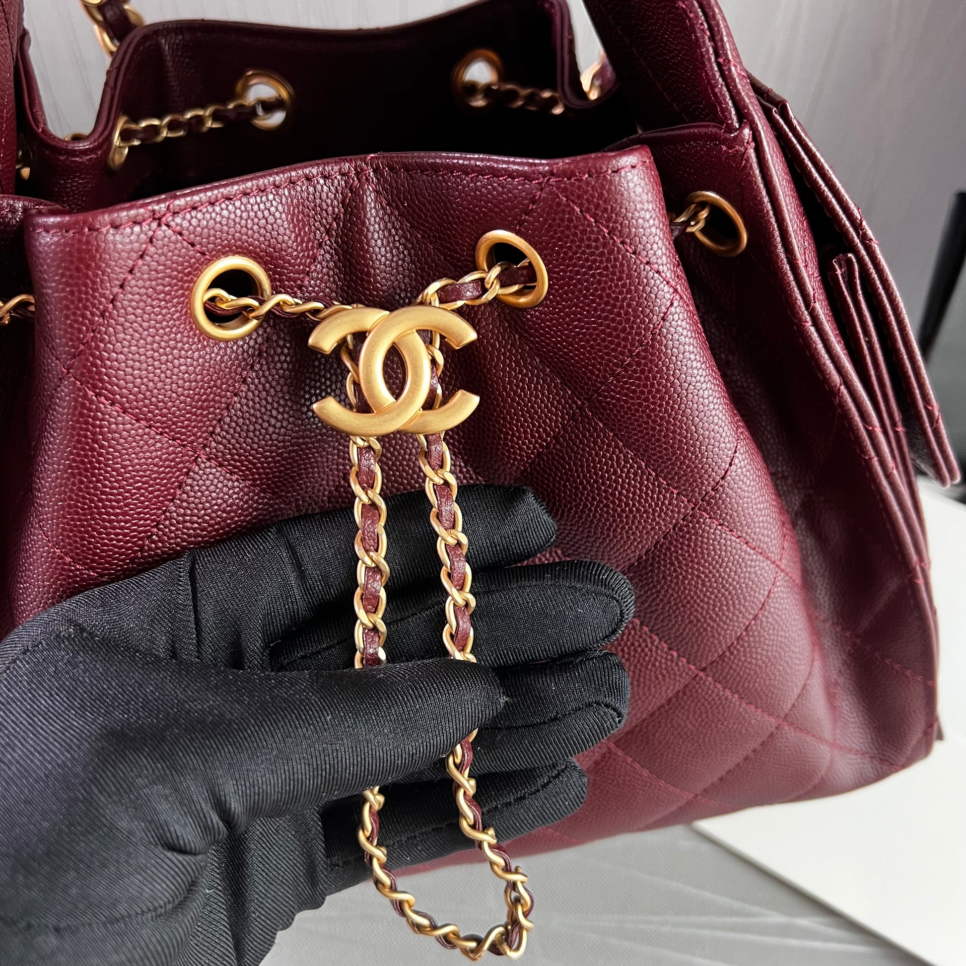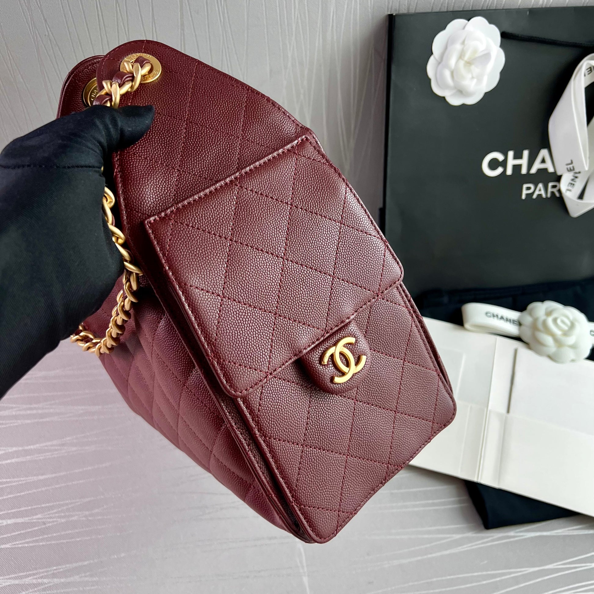 Bolso C piel de ternera granulada color burdeos y herrajes dorados.