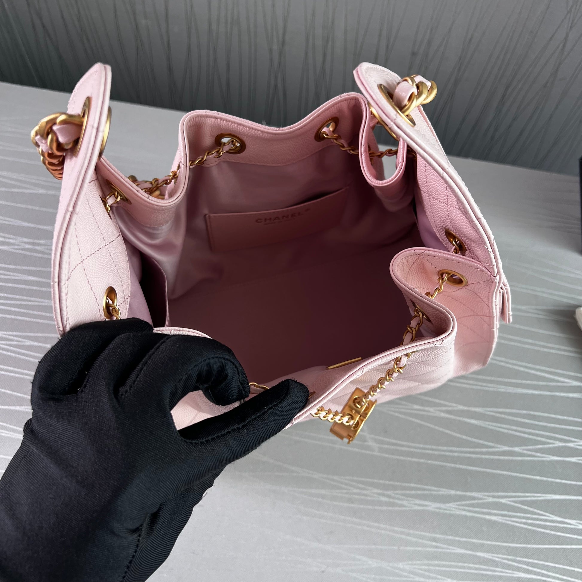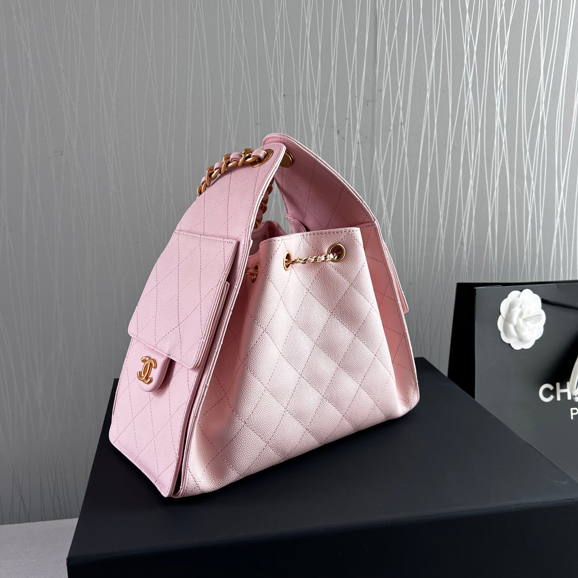 Bolso C piel de ternera granulada color rosa y herrajes dorados.