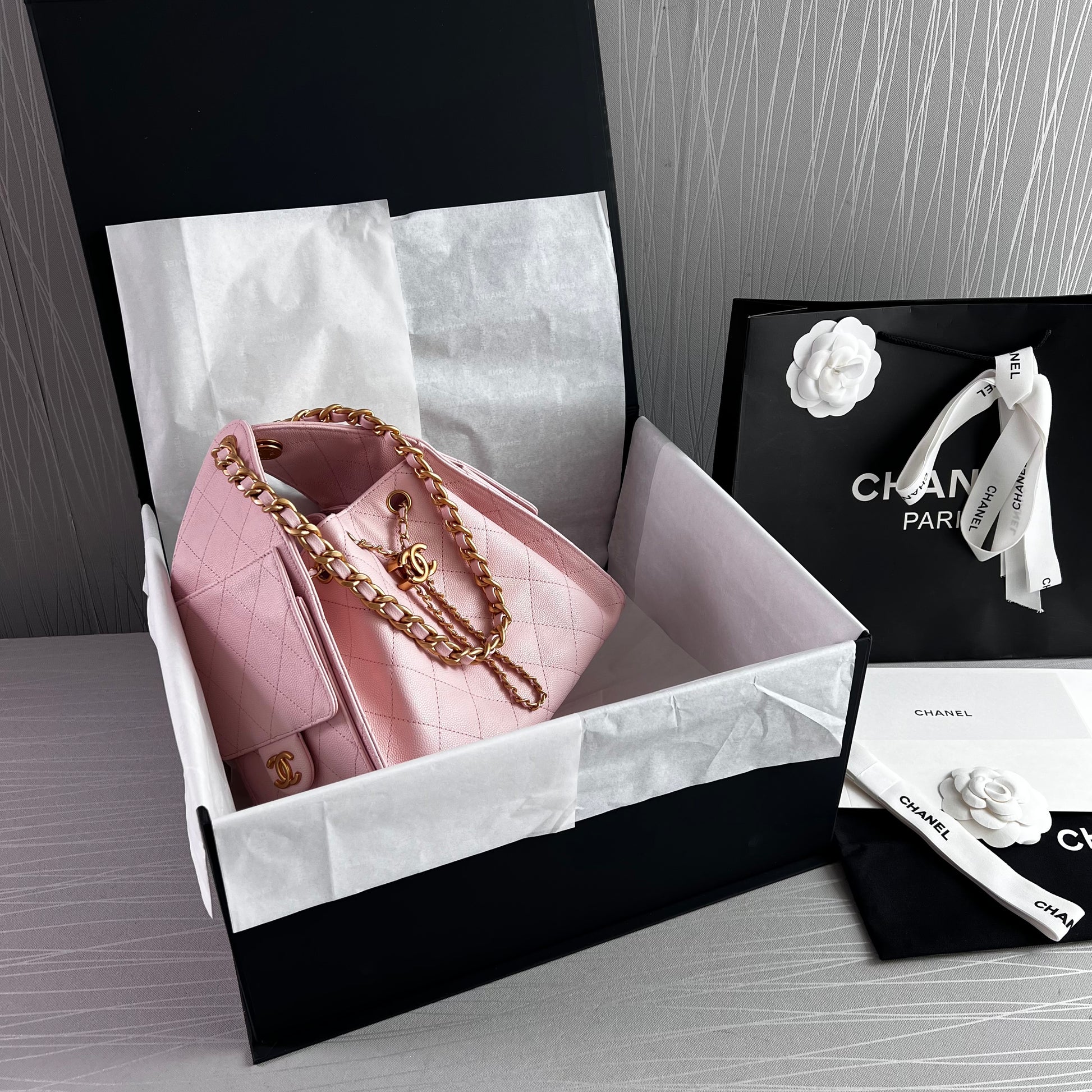 Bolsos laterales. Dimensiones 30 X 26 X 14 cm. Incluye caja, bolso cubrepolvo, shopping bag, listón y flor.
