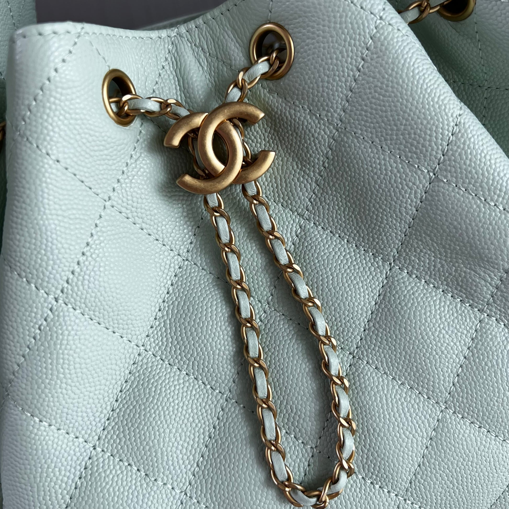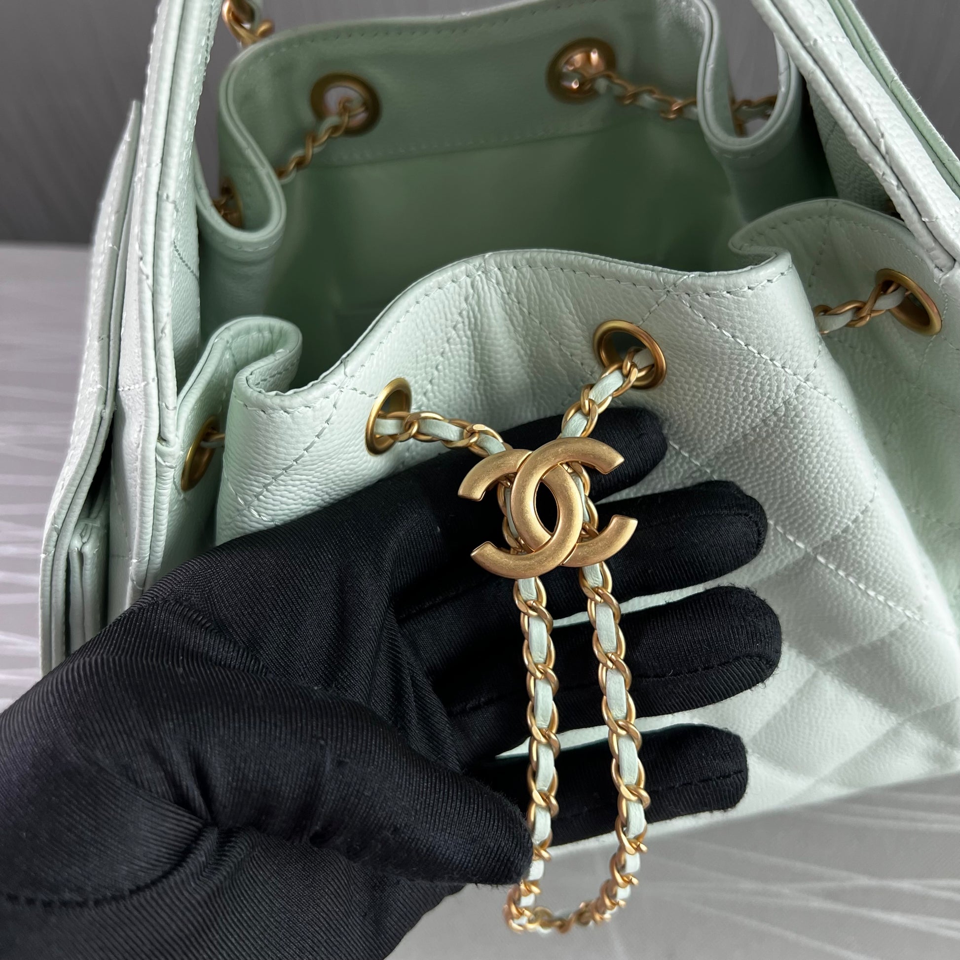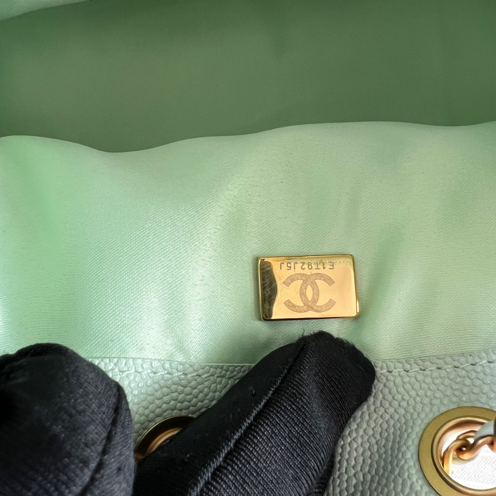 Bolso C piel de ternera granulada color verde menta y herrajes dorados.