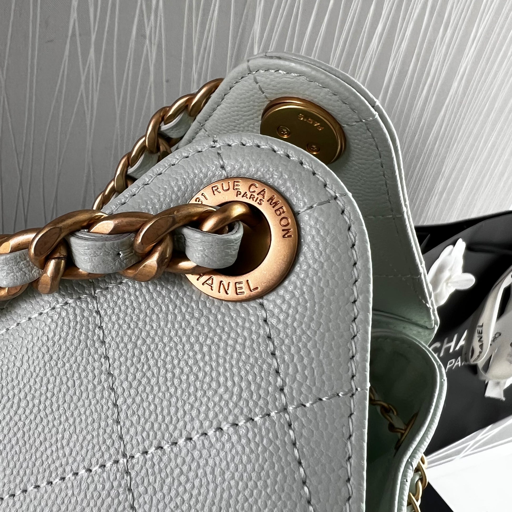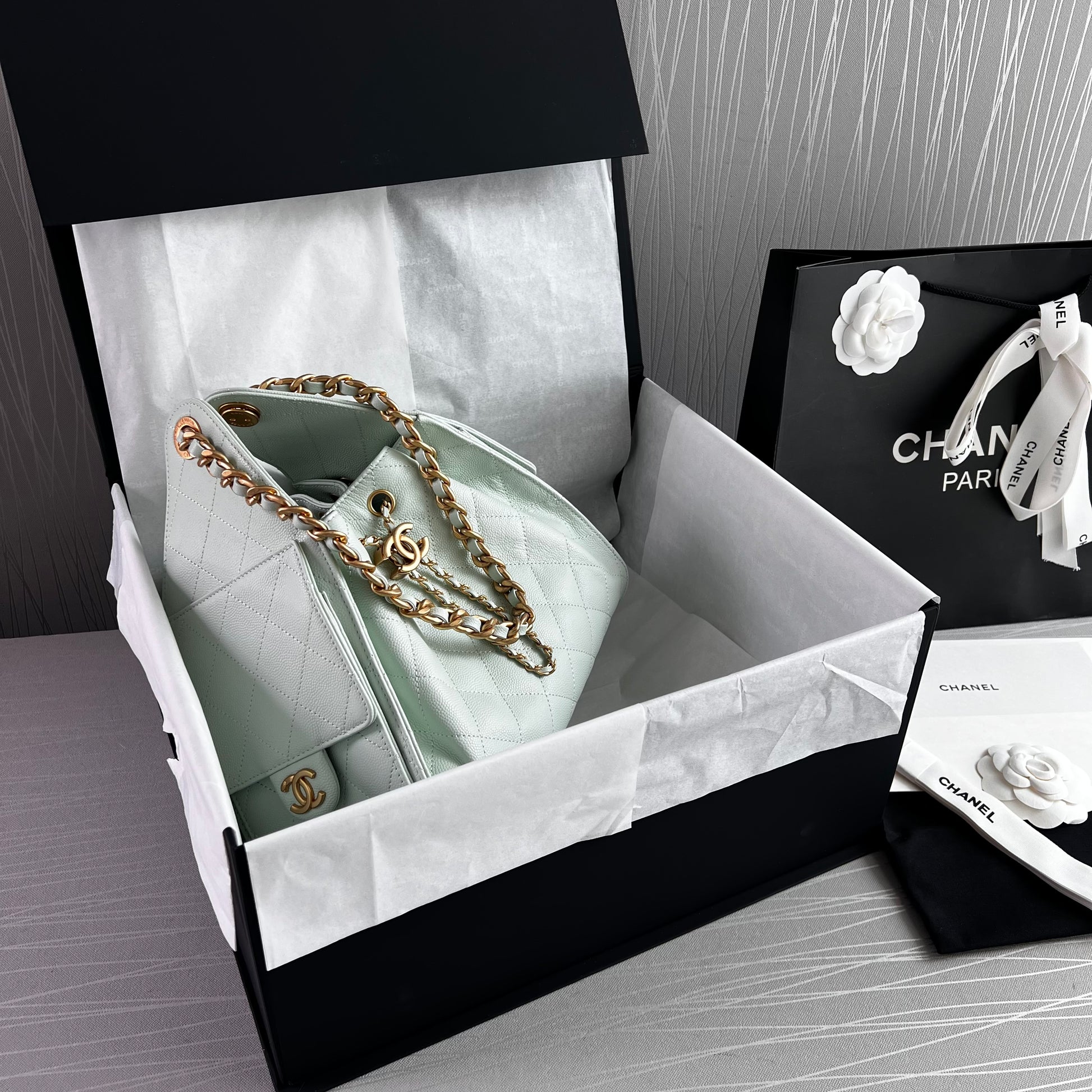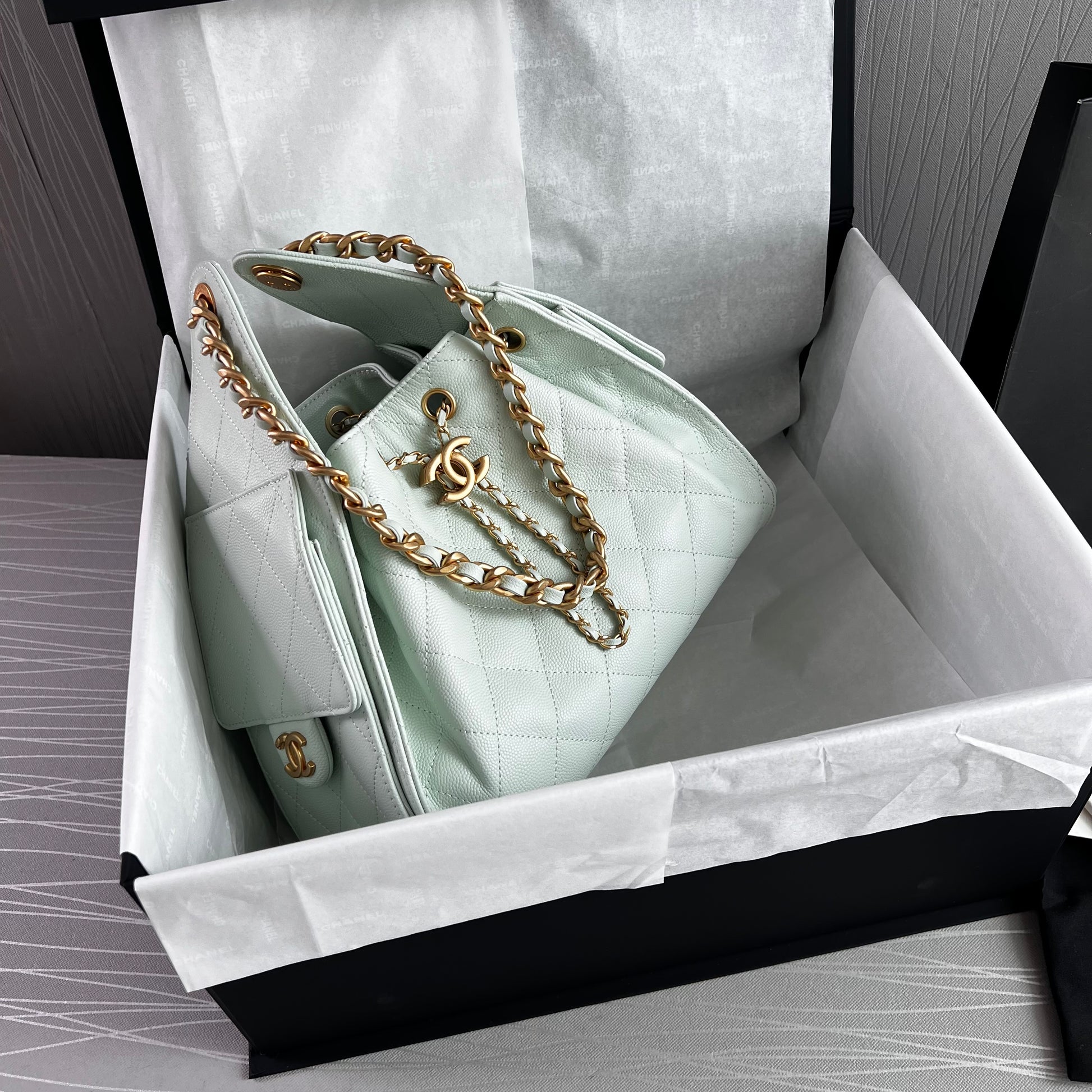 Bolso C piel de ternera granulada color verde menta y herrajes dorados.