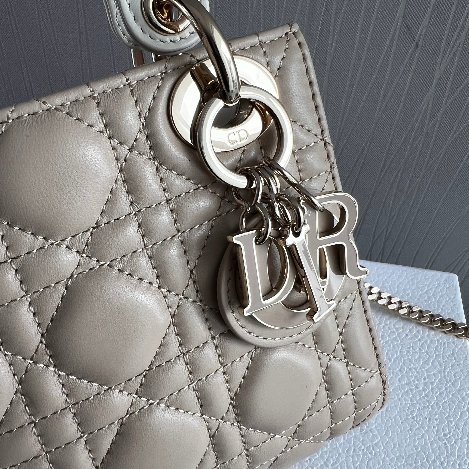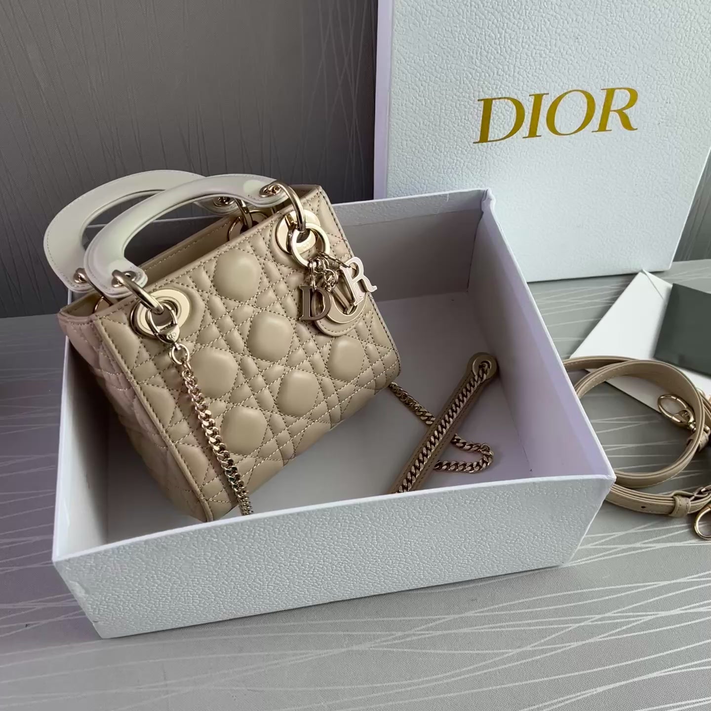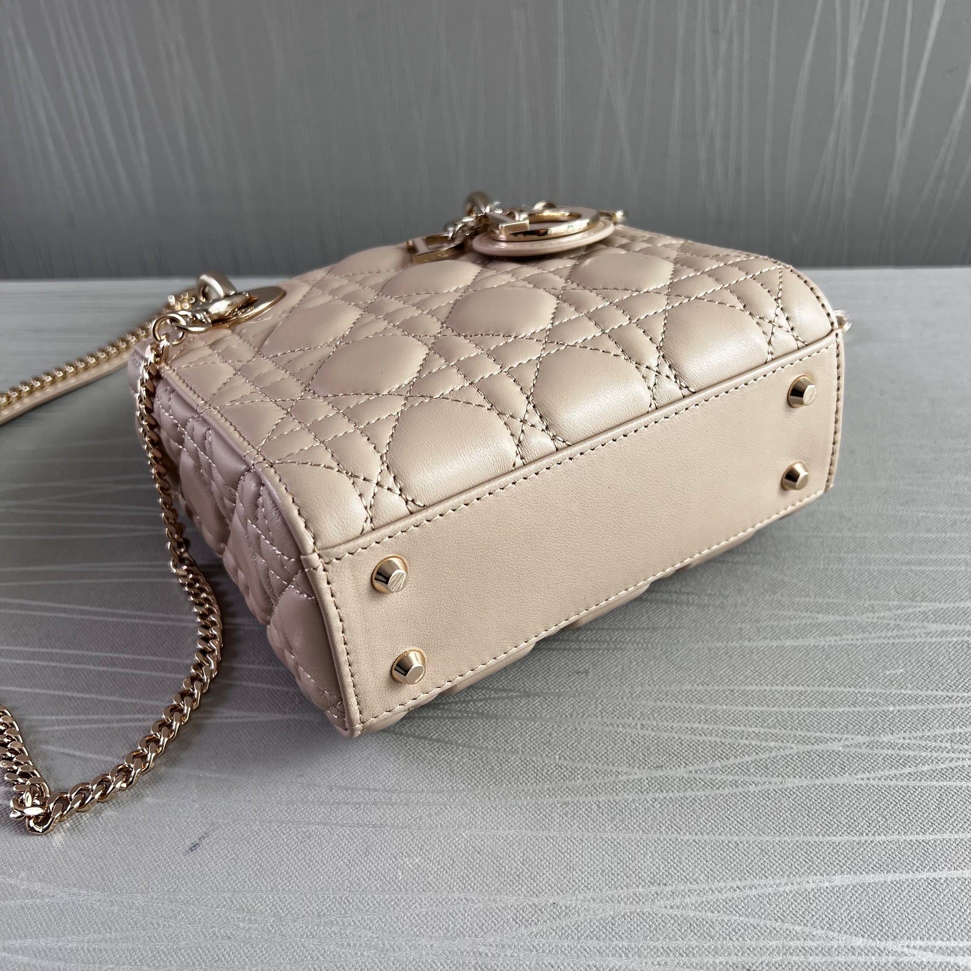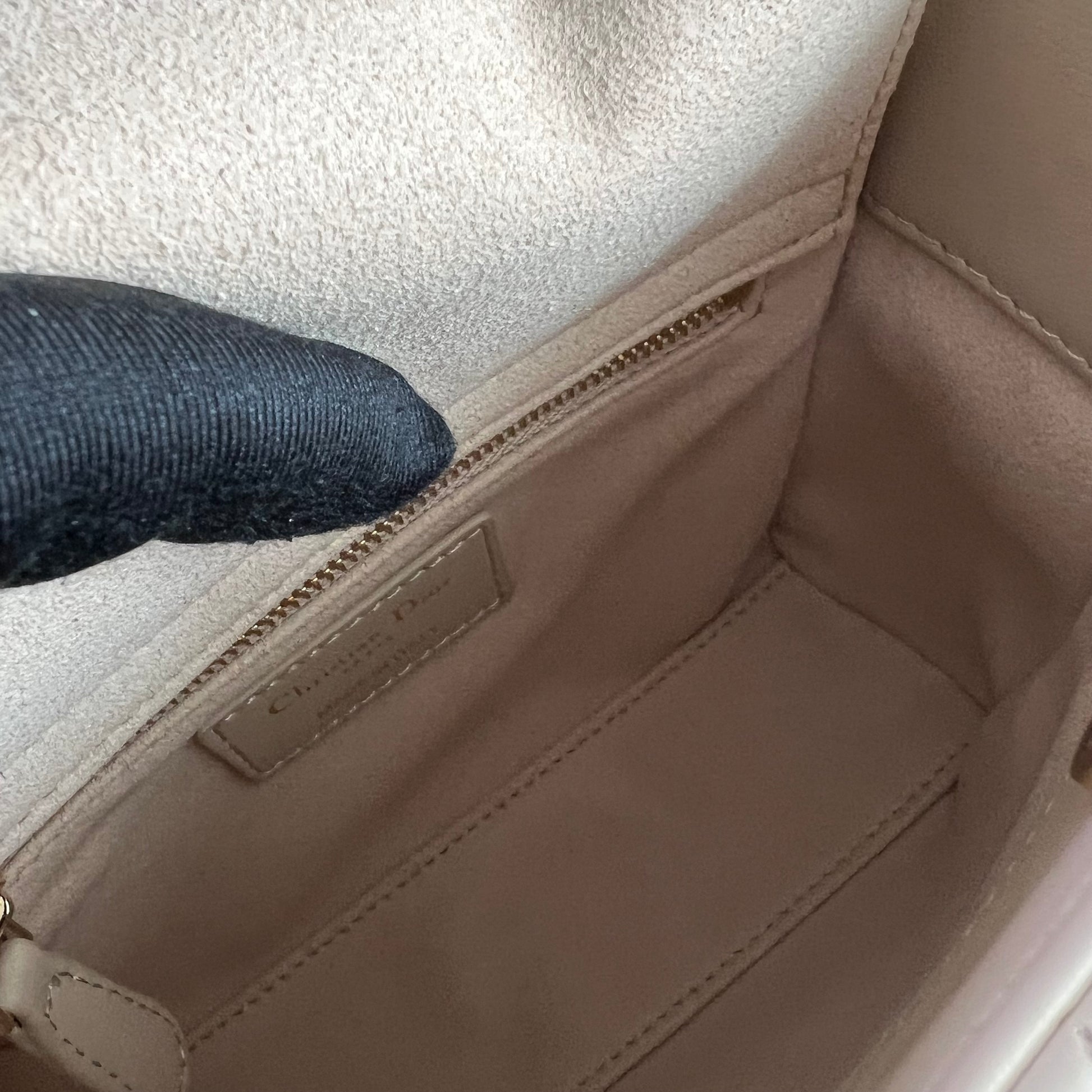 Bolso D piel color beige combinada con hueso, herrajes dorado pálido, incluye dos straps, piel y otro con cadena.Dimensiones 17 x 15 x 7 cm.Incluye caja, guardapolvo.