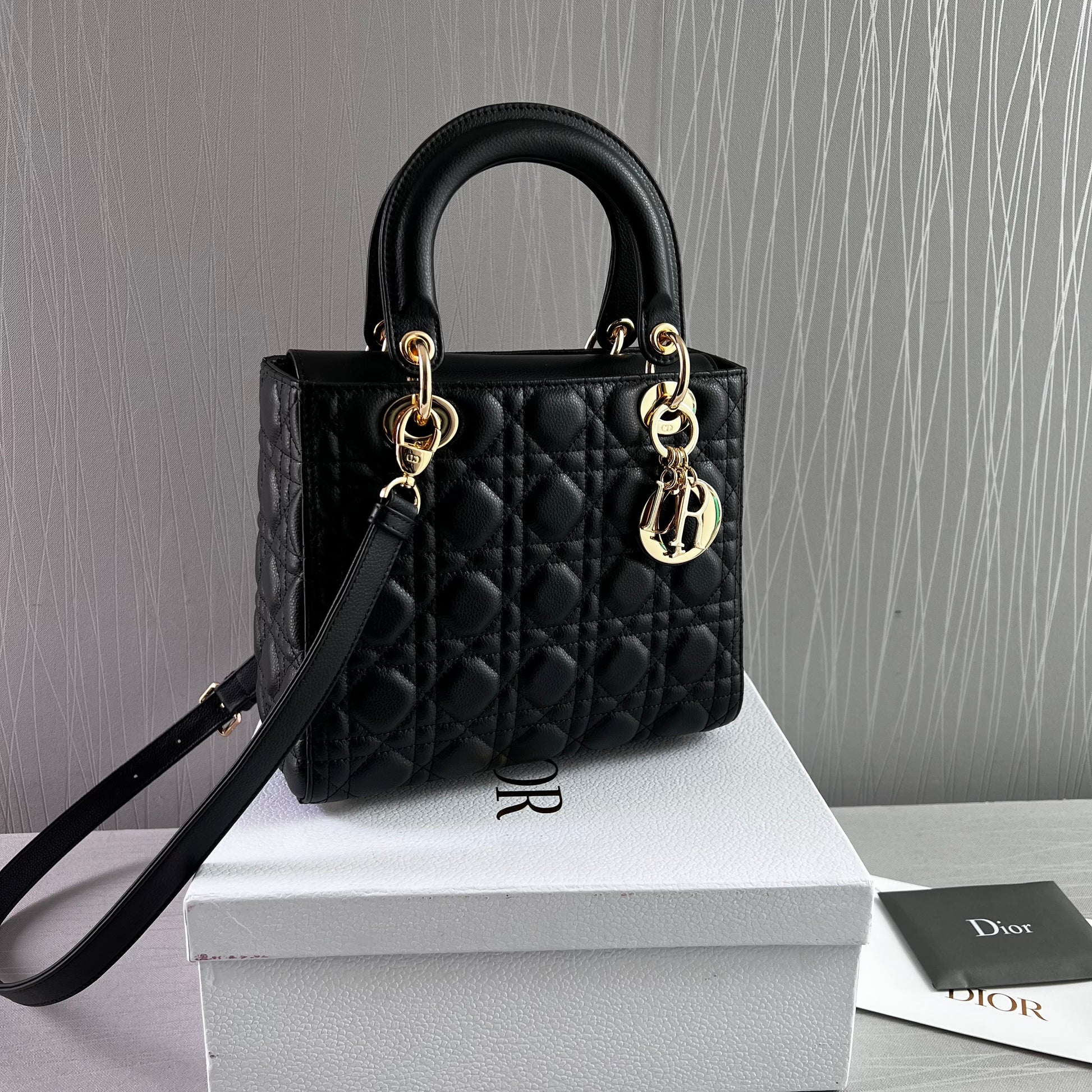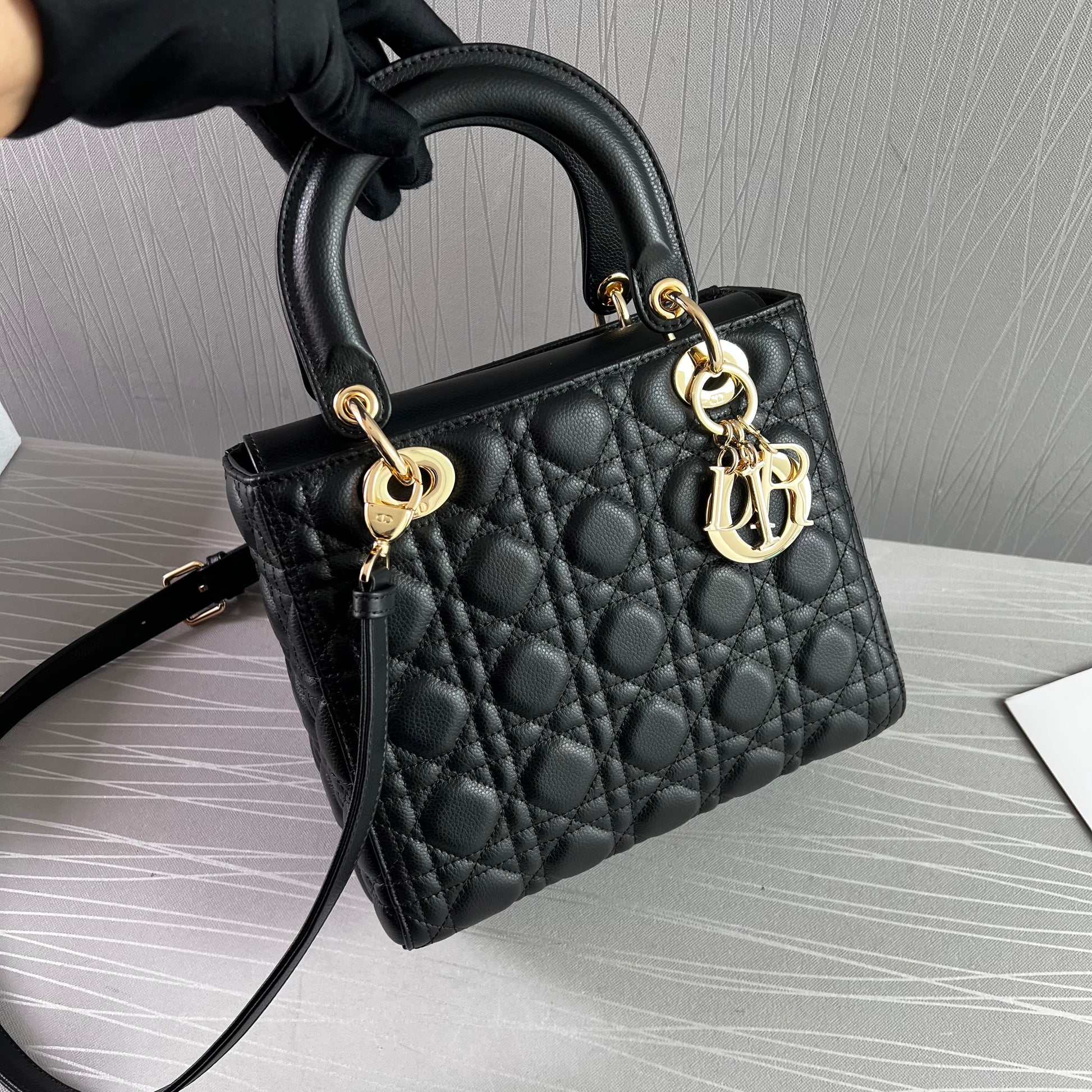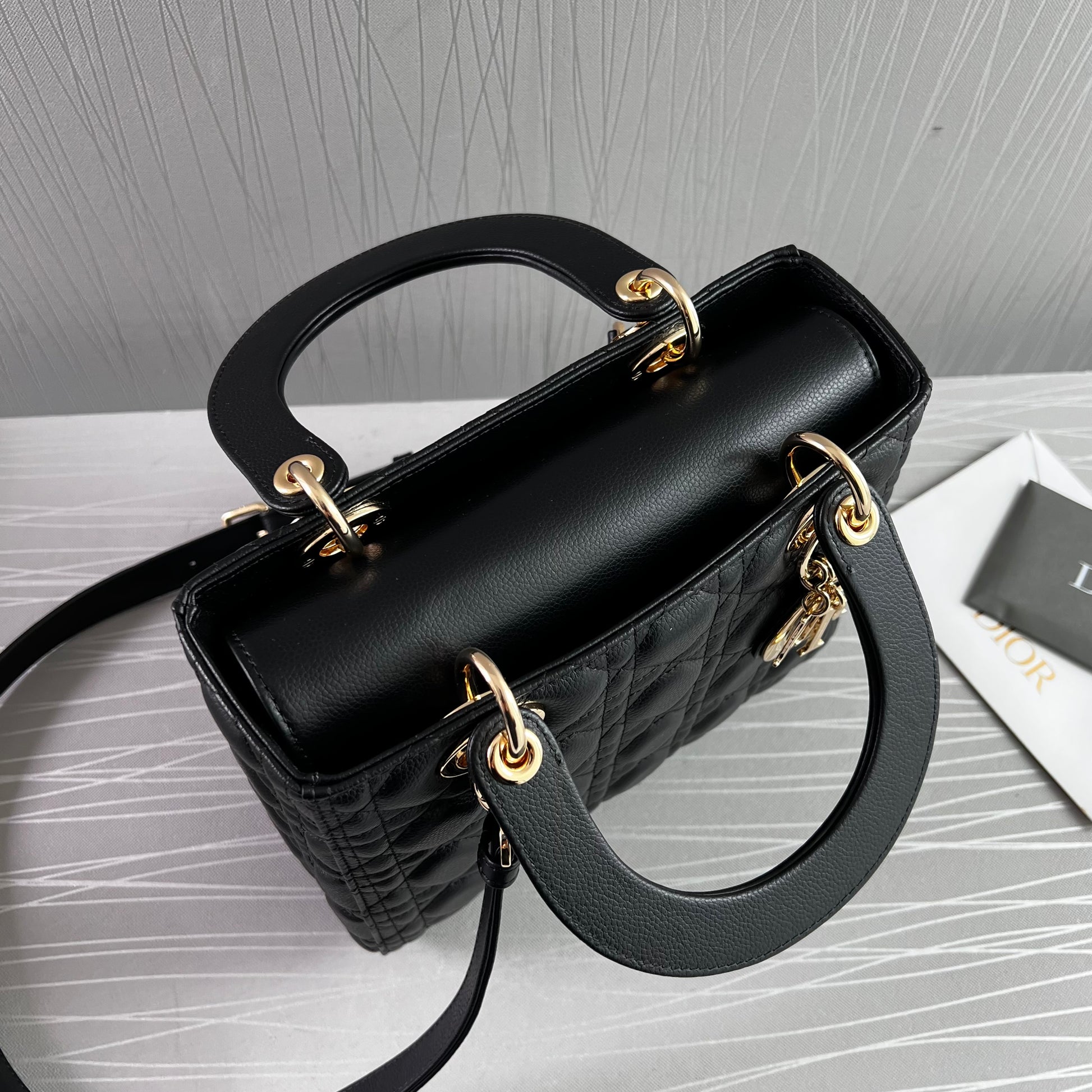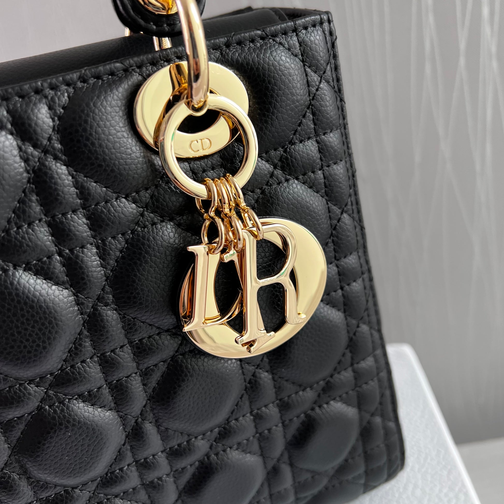Bolso D piel color negro , herrajes dorados. Incluye caja y guardapolvo. Dimensiones 24 x 21 x 12 cm.