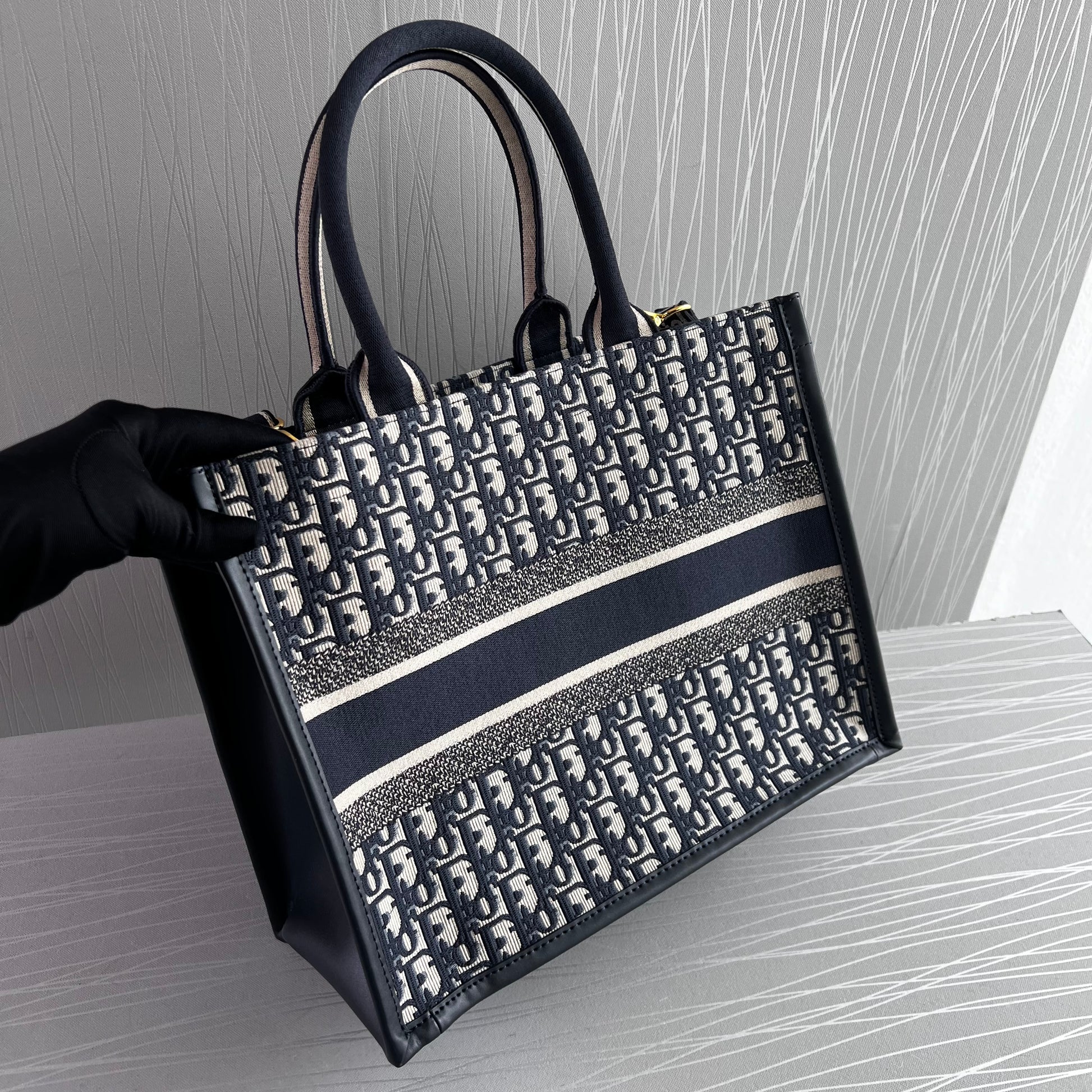 Bolso D Tote tela jacquard bordada en color azul marino