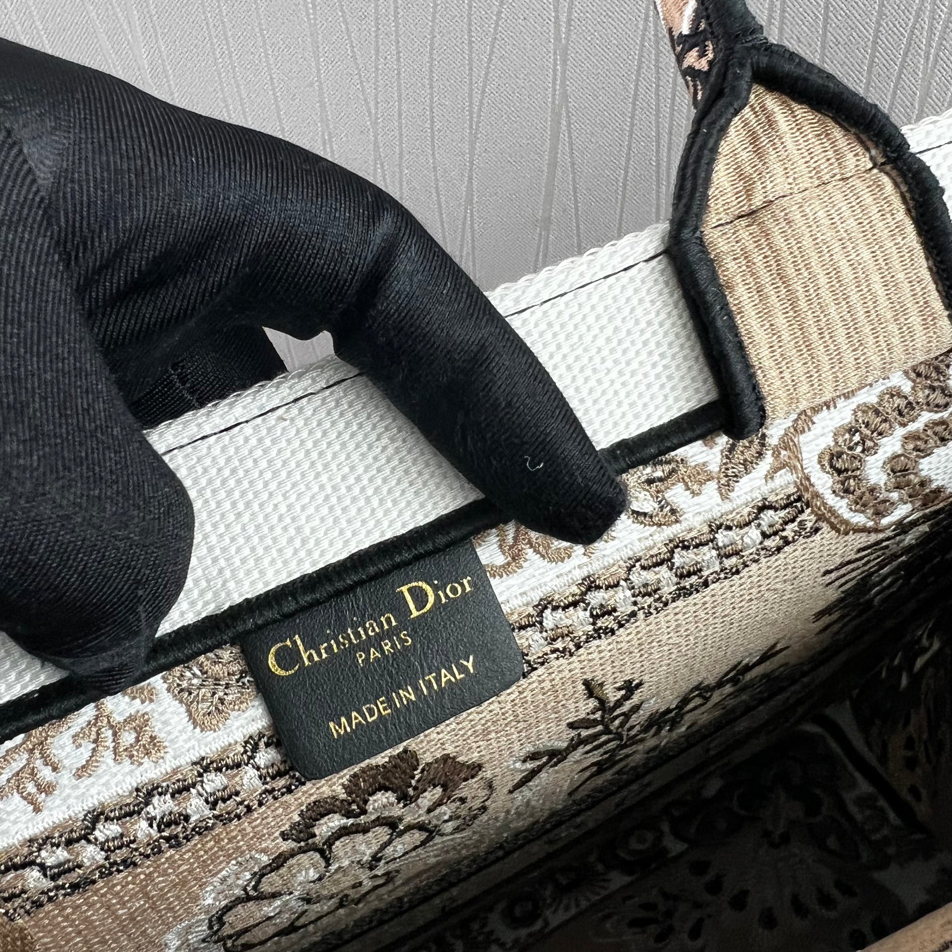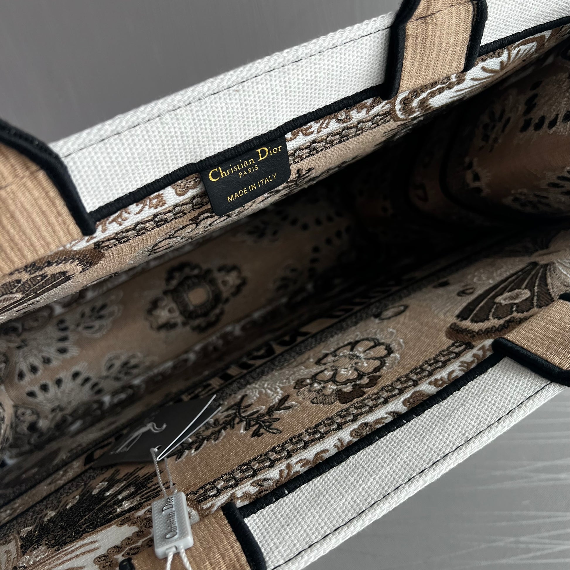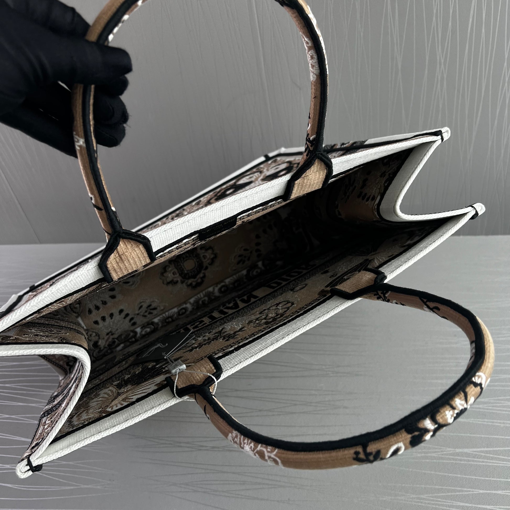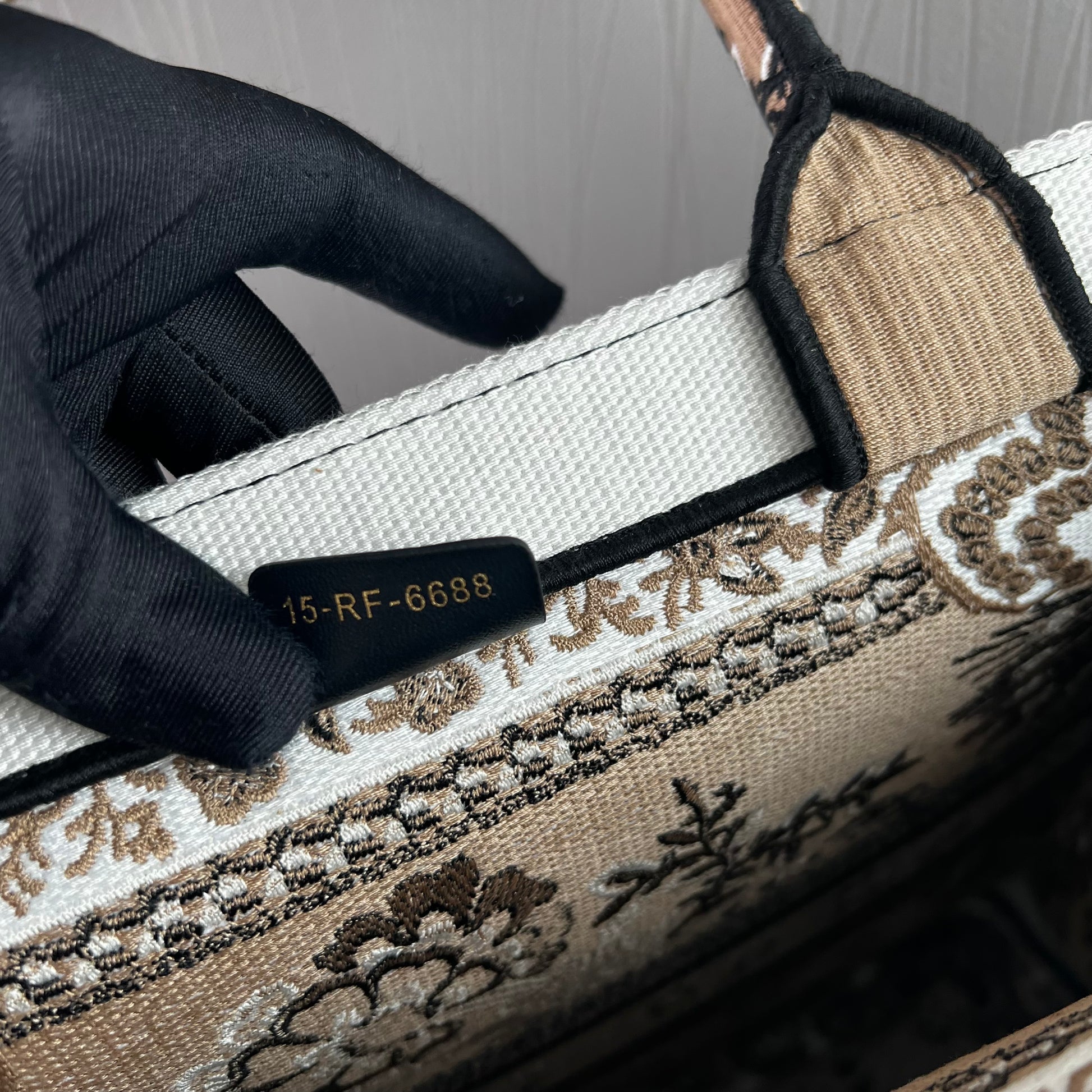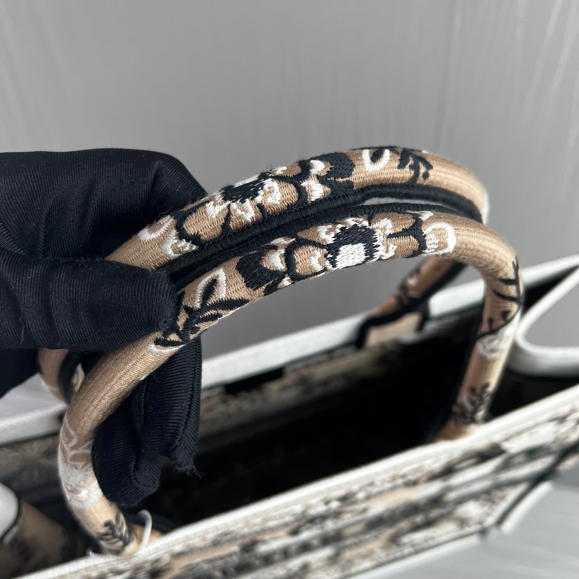 Bolso D Tote tela jacquard bordada en color beige