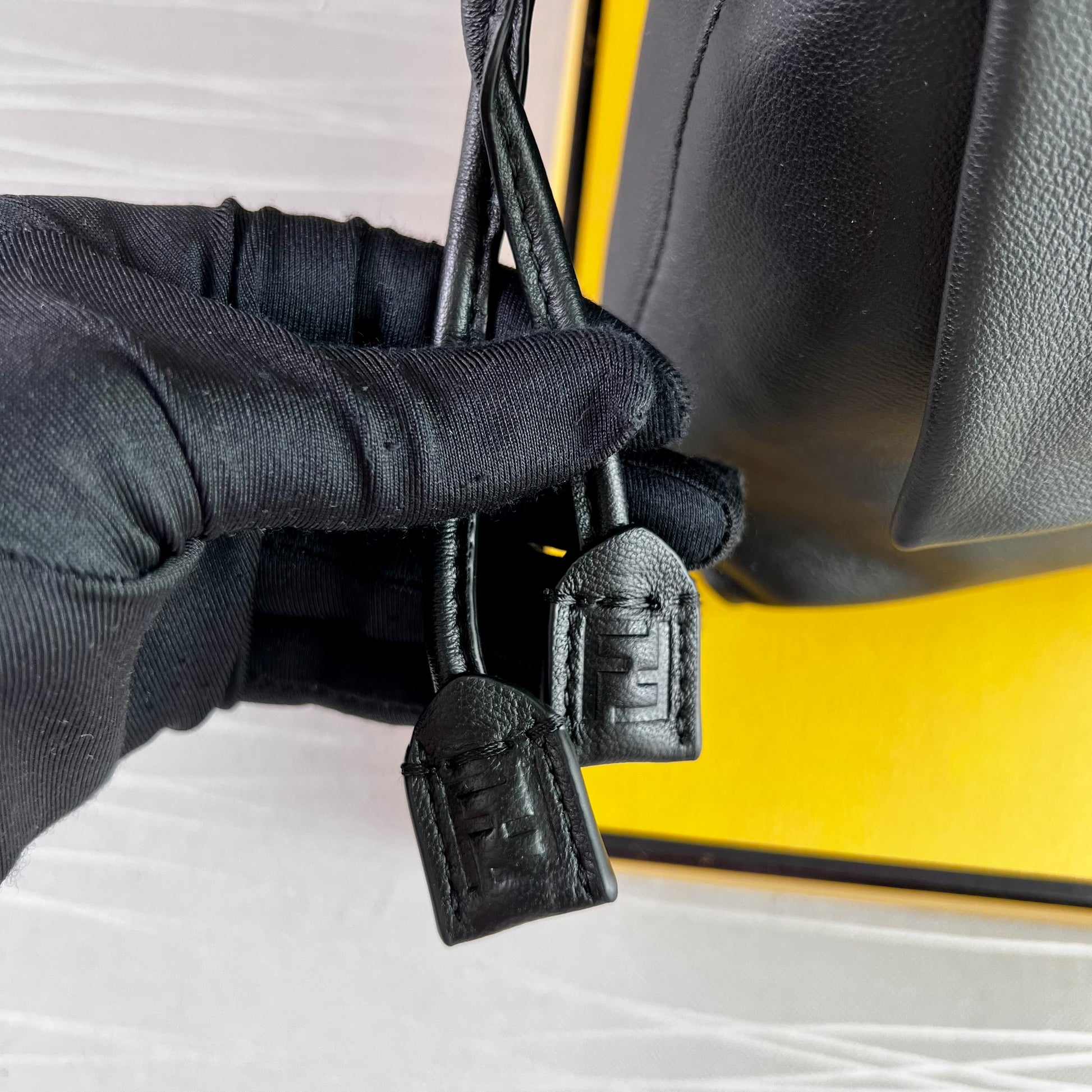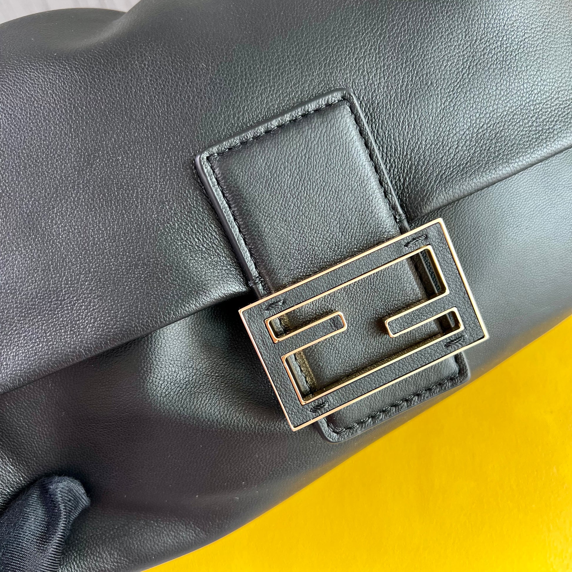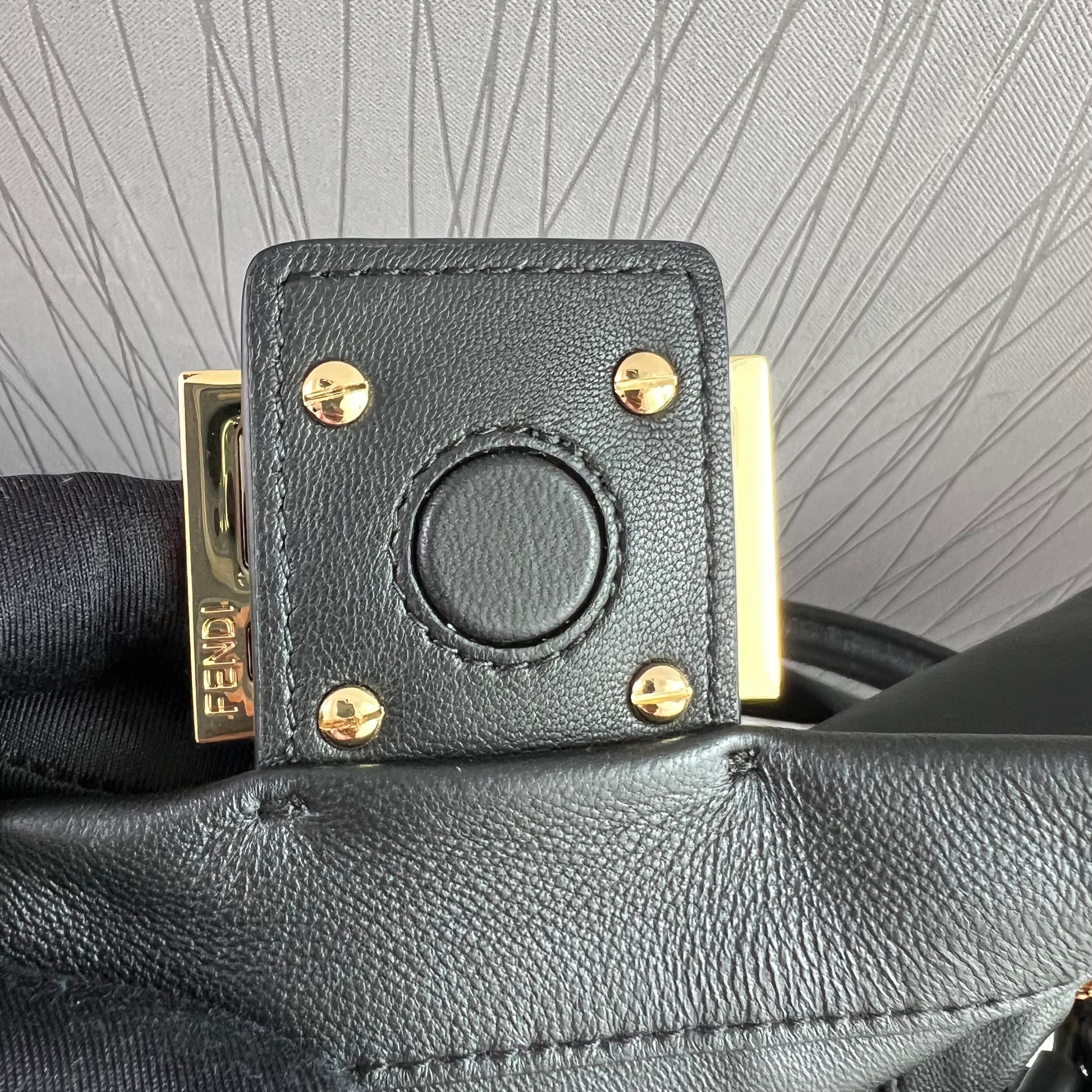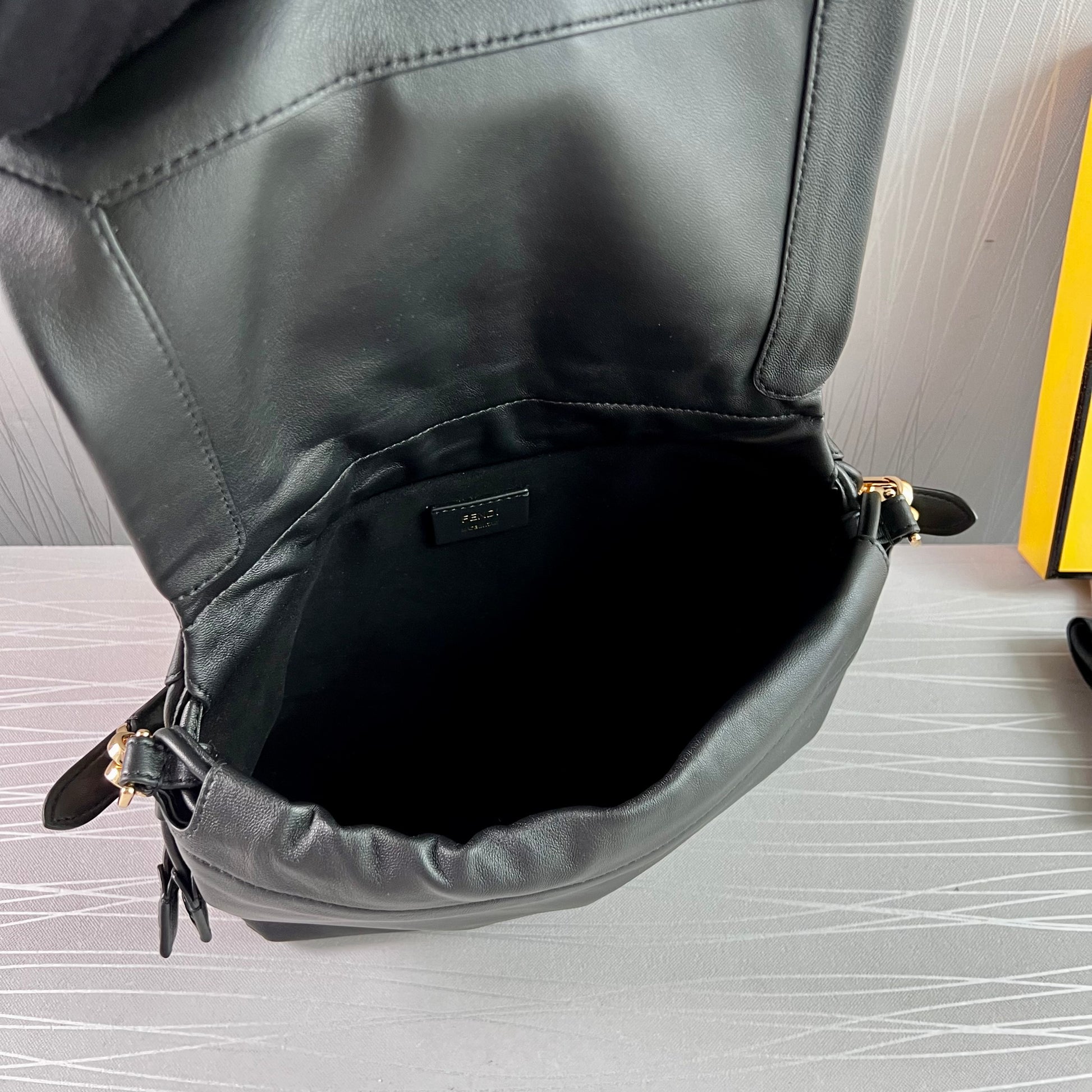 Bolso F piel napa color negro.Tamaño mediano, herrajes color dorado. Forro de ante.Cierre magnético de cordón ajustable. Se puede llevar al hombre o cruzada ambas asas desmontables. Piel suave. Dimensiones 26.5 x 18 x 8.5 cm. Incluye caja, shopping bag, listón, bolsa guardapolvo.