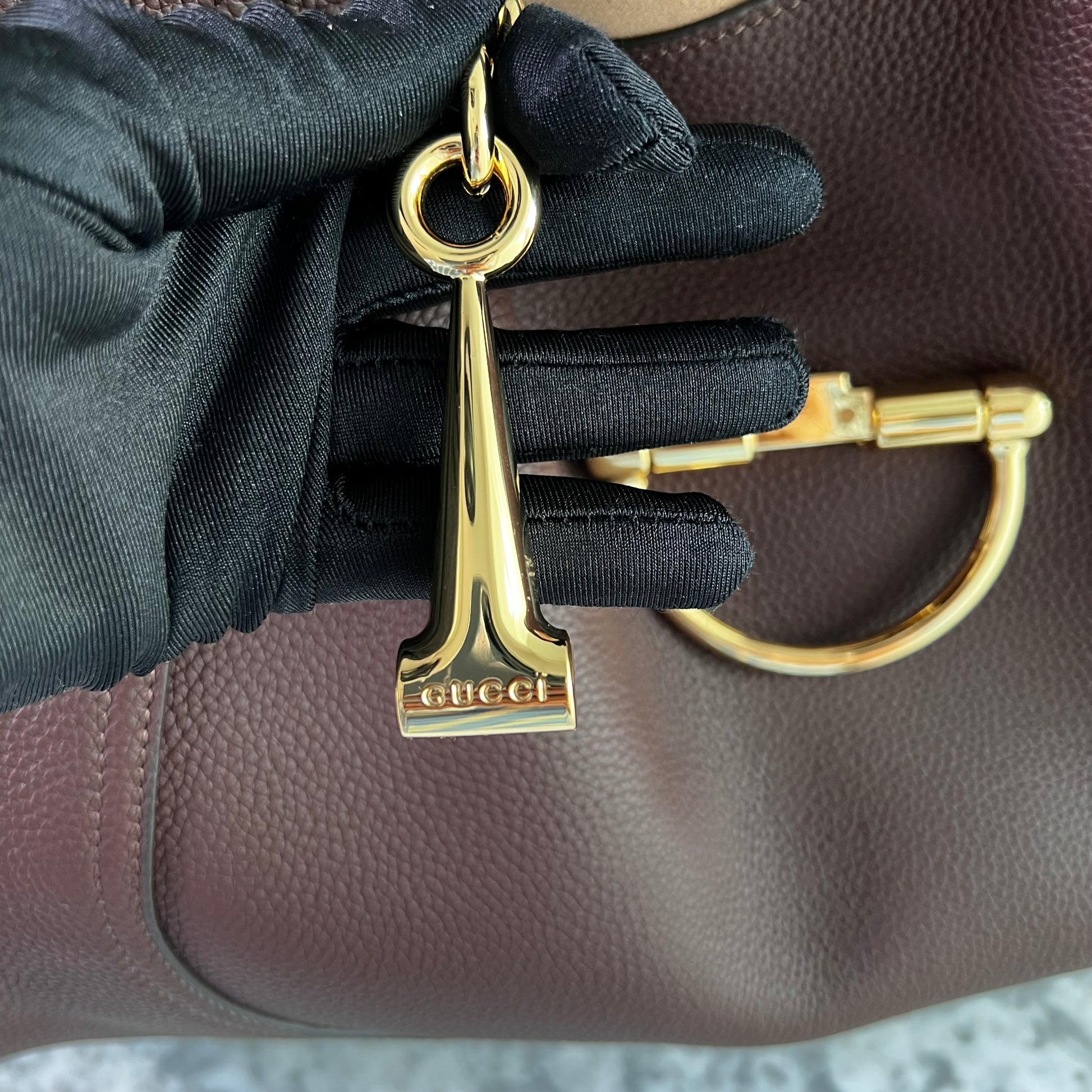 Bolso G-ucci piel granulada color café, incluye pochette. Interior gamuza en color beige. Tamaño grande. Incluye shopping bag y guardapolvo.