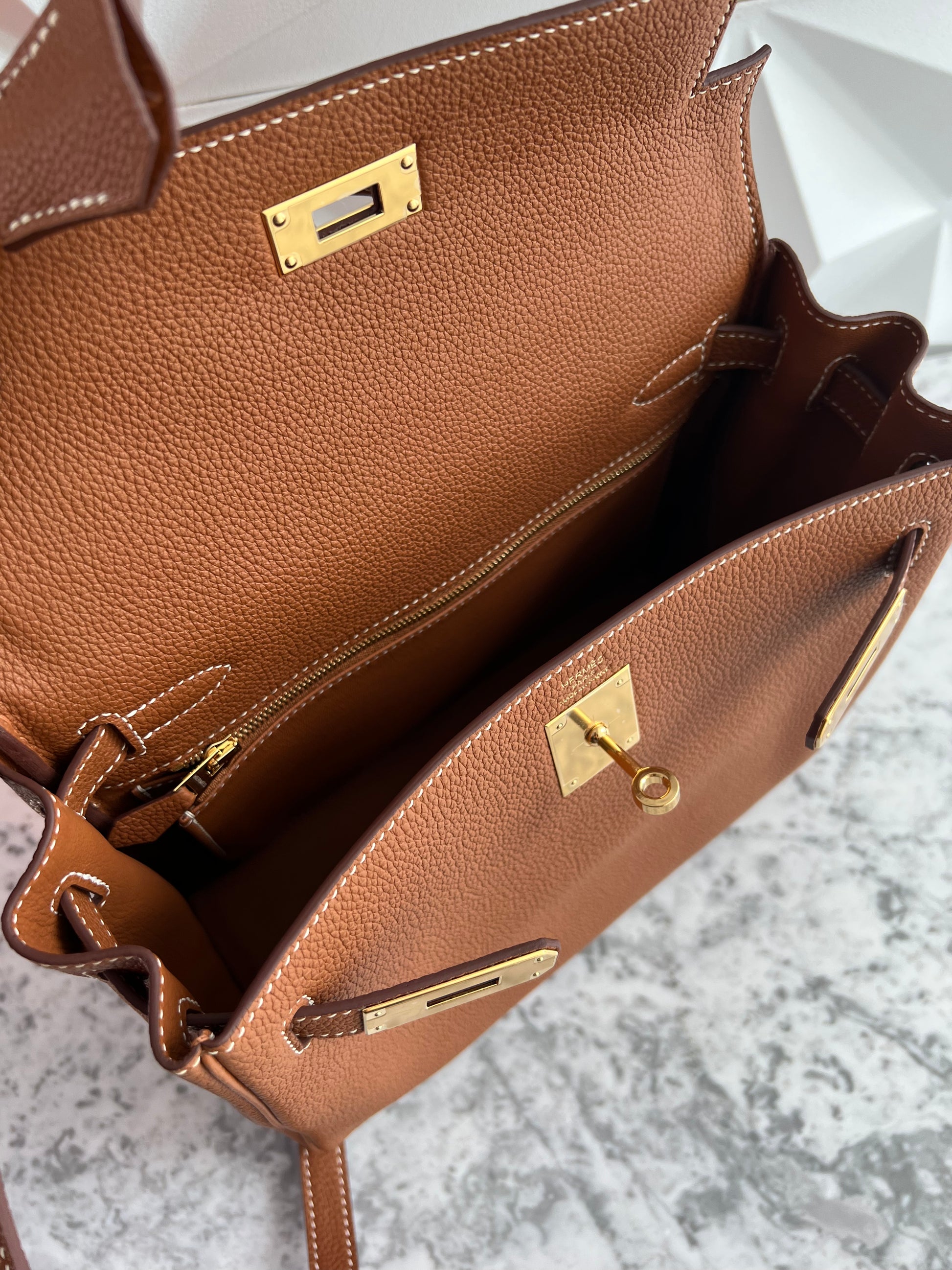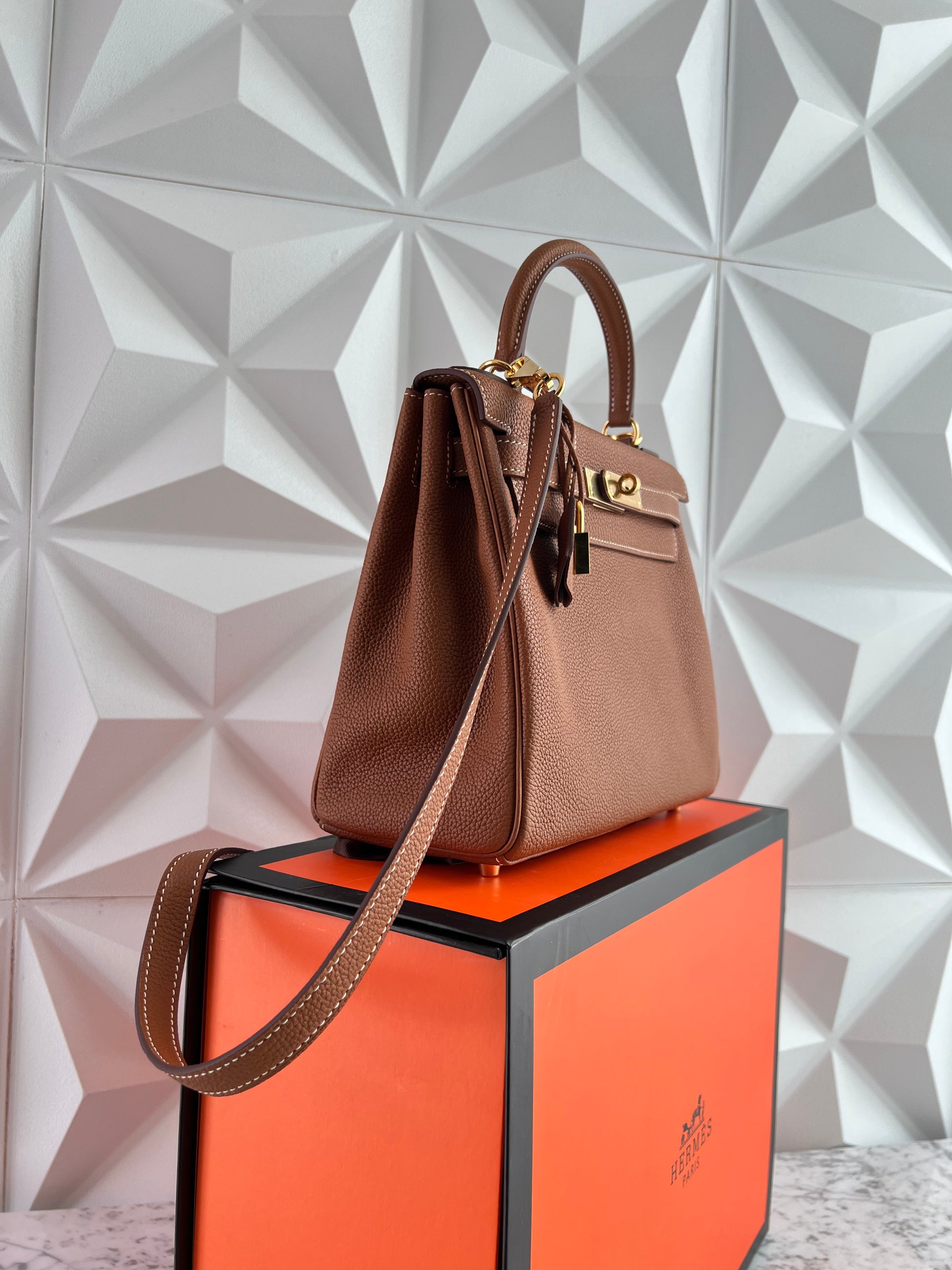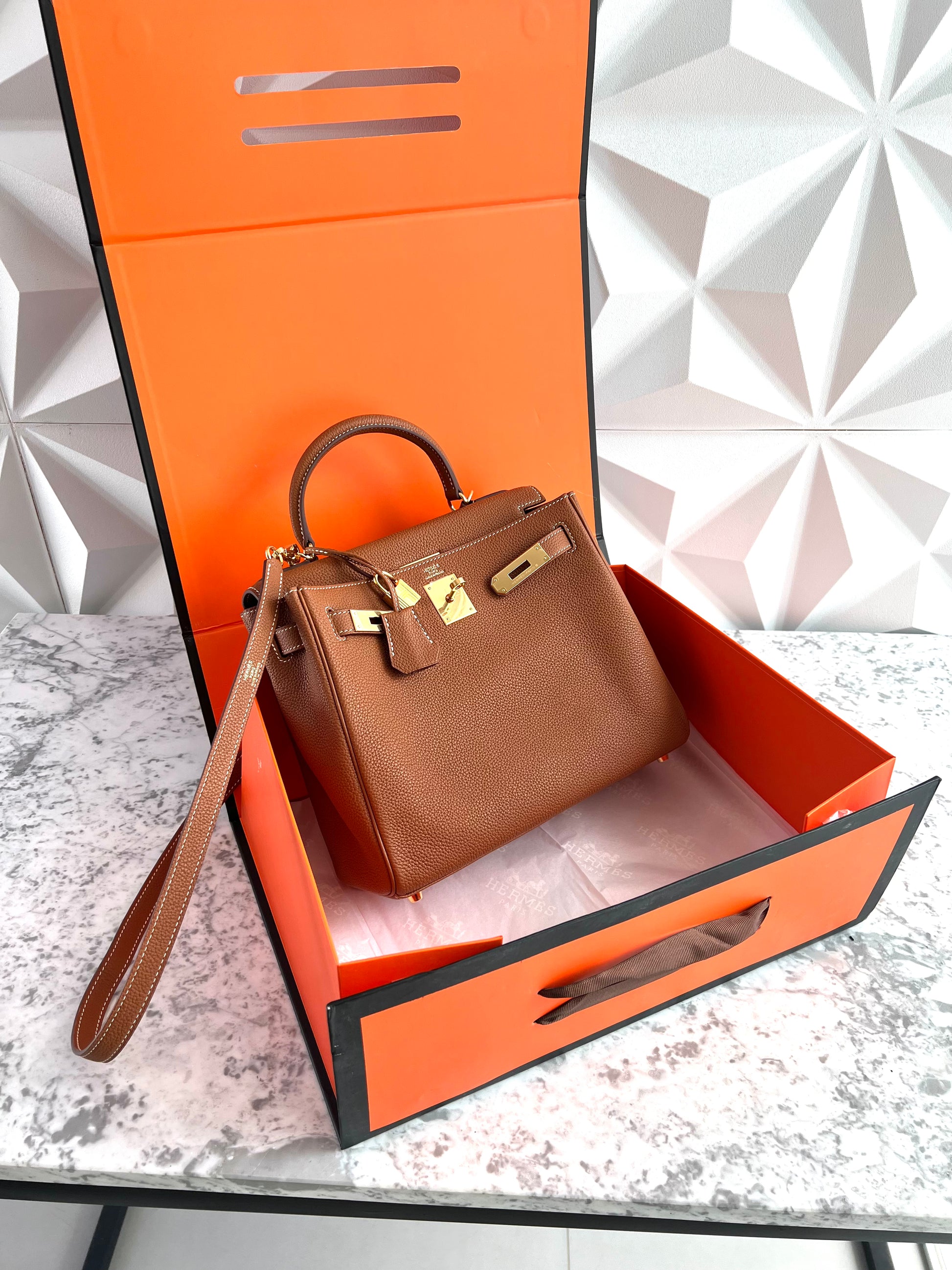 Bolso piel togo color camel 28 cm , herrajes dorado