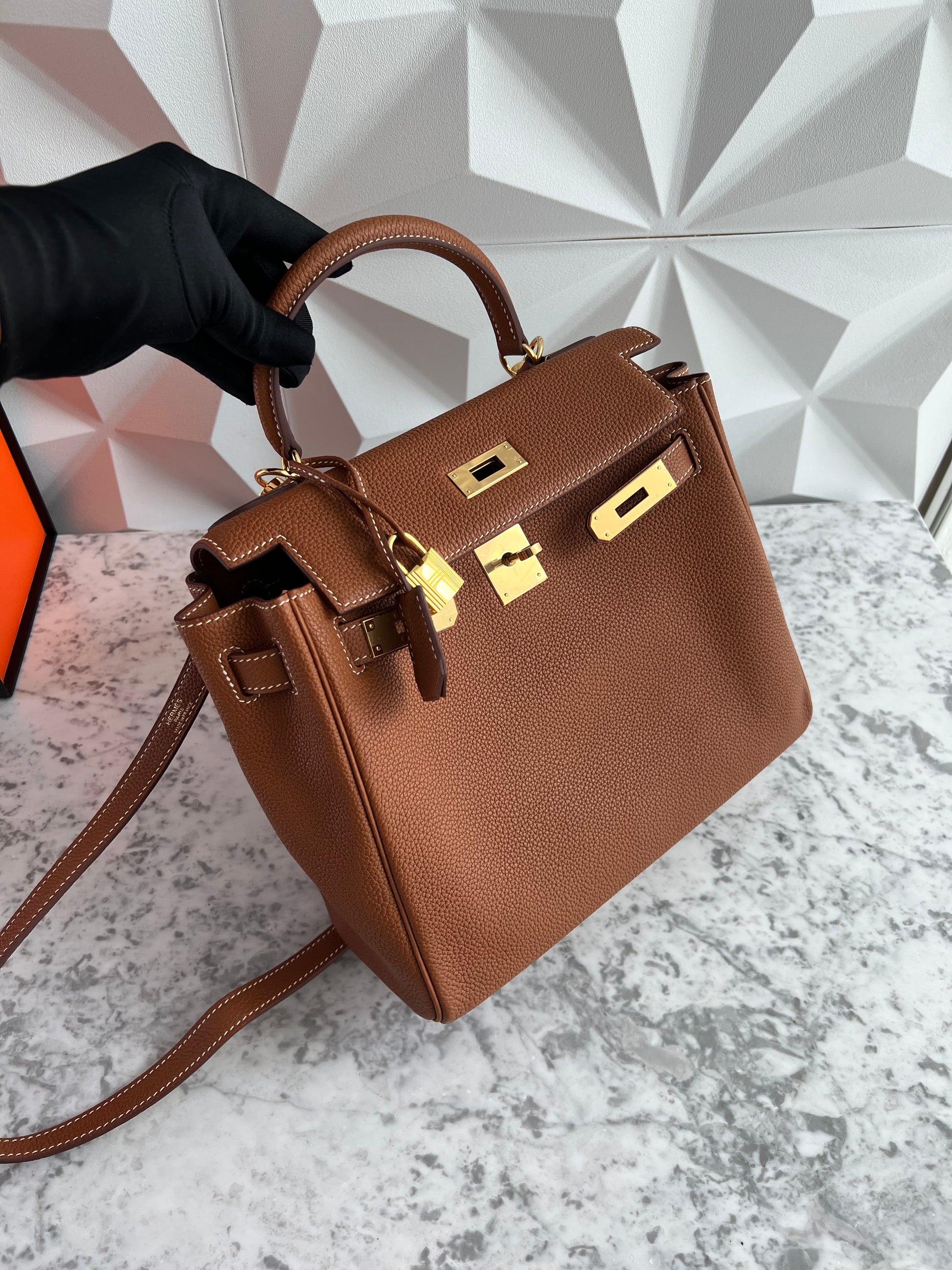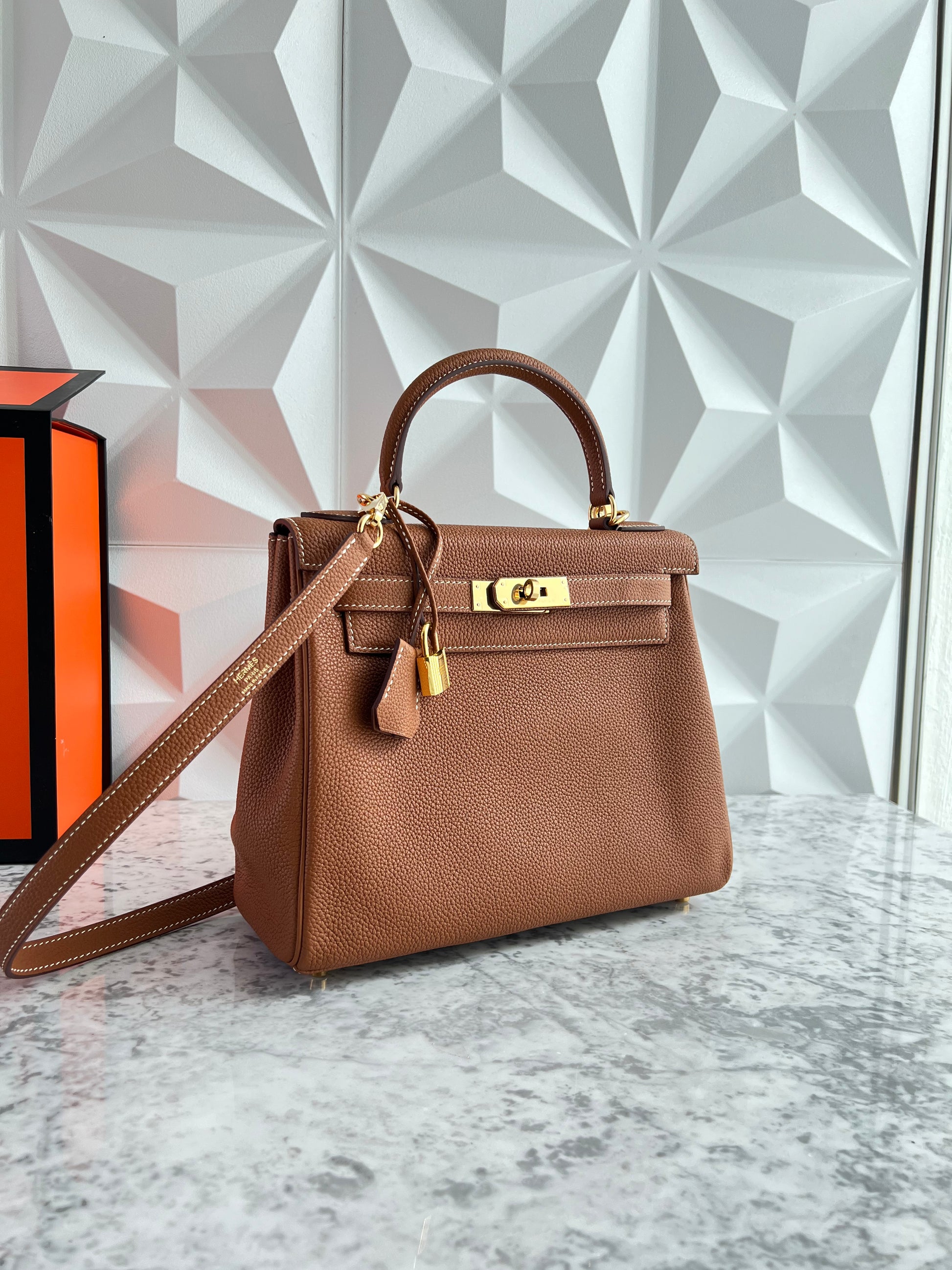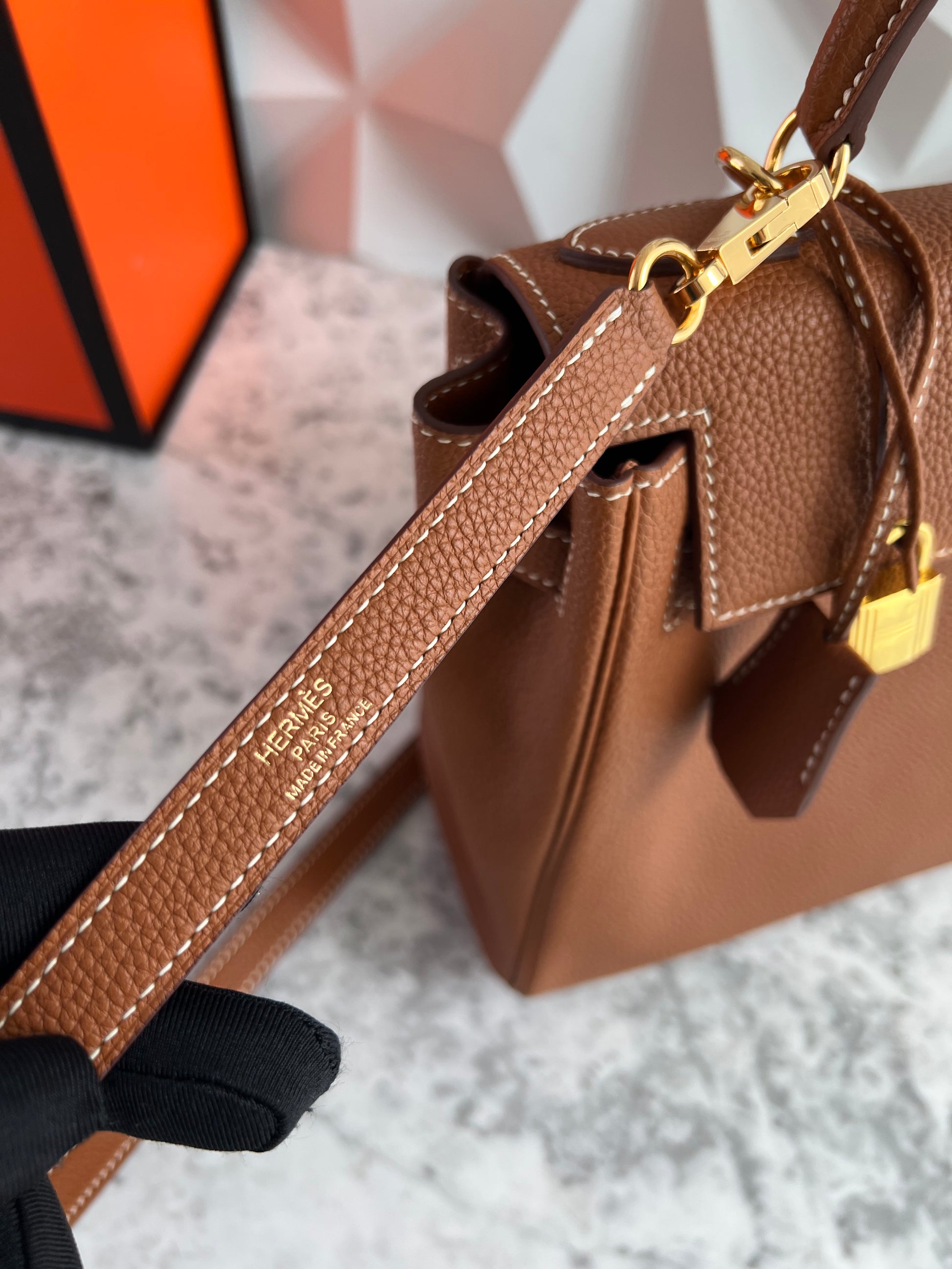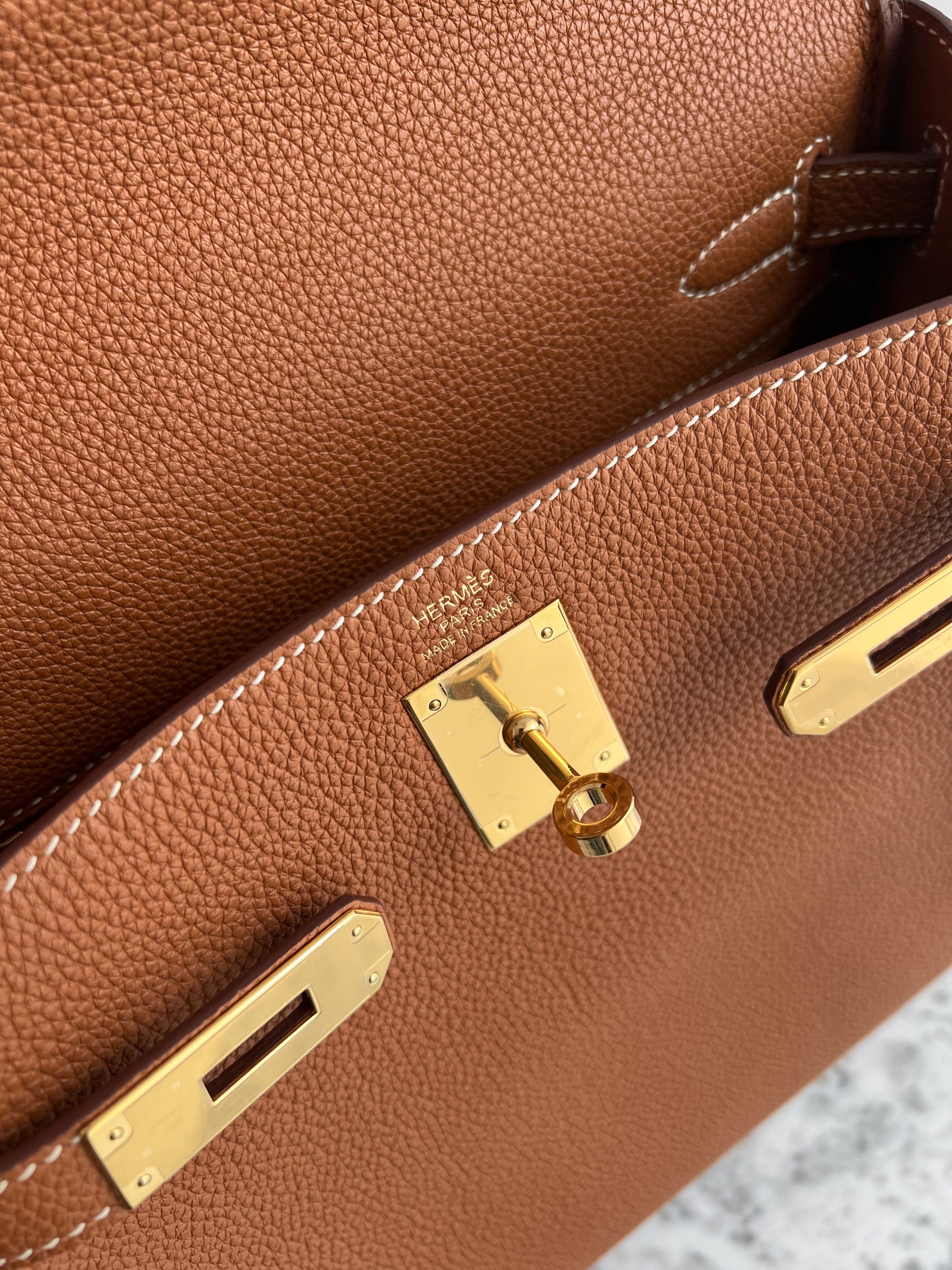 Bolso piel togo color camel 28 cm , herrajes dorado
