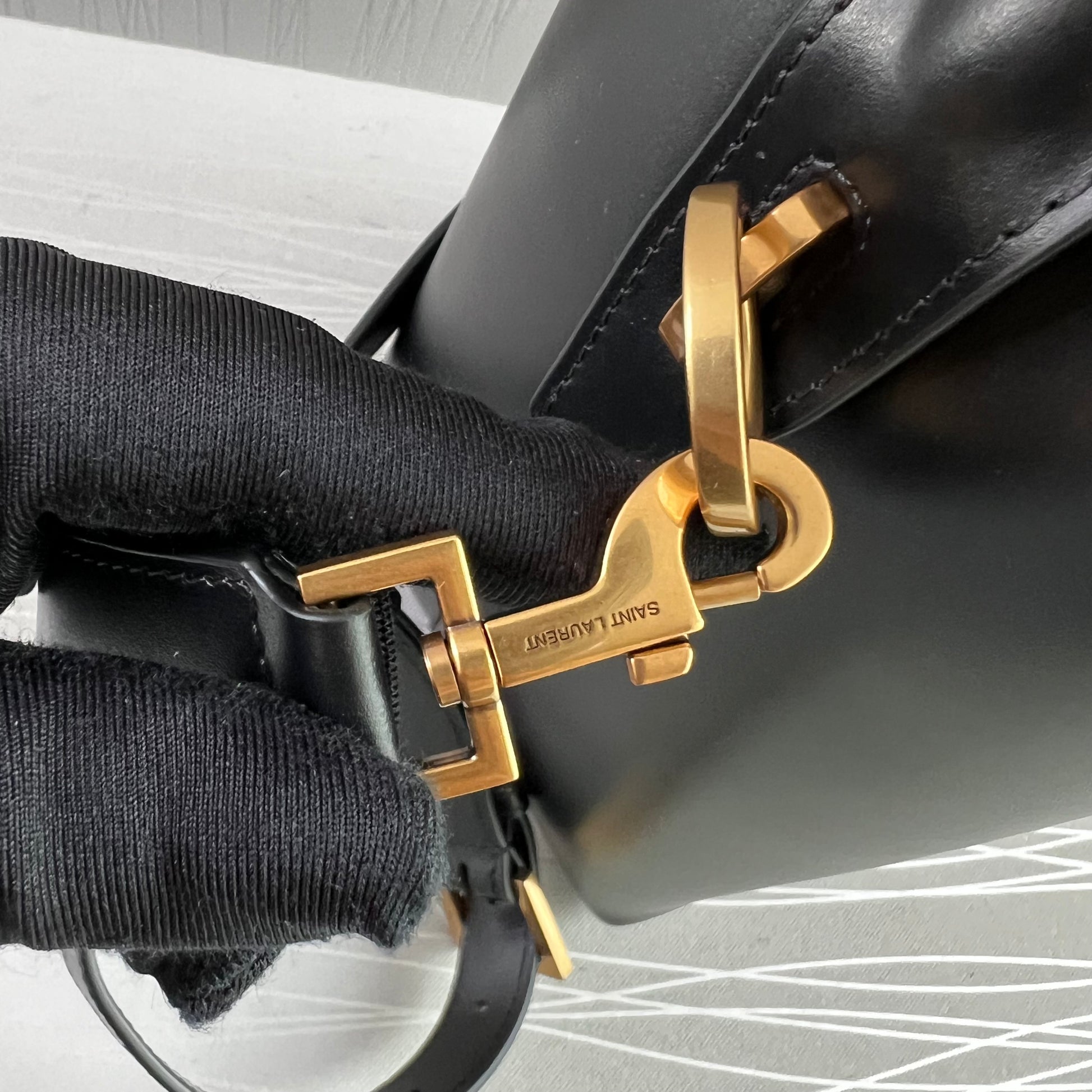 Bolso Y negro piel herrajes dorados