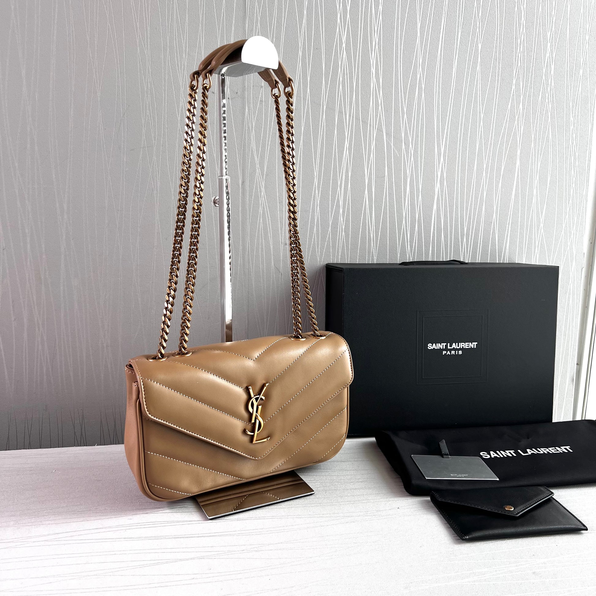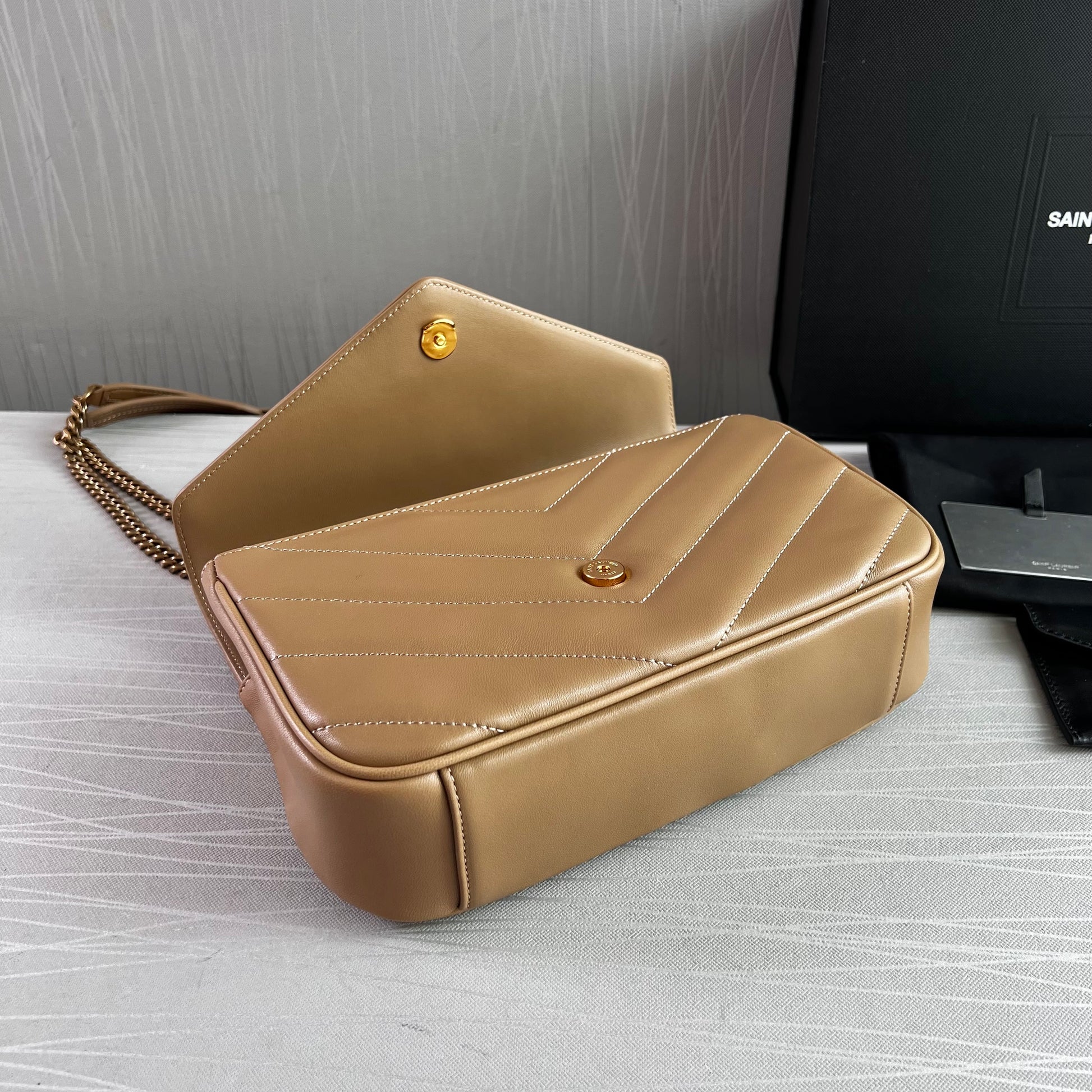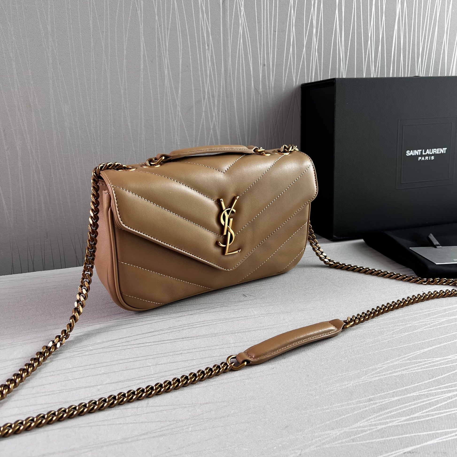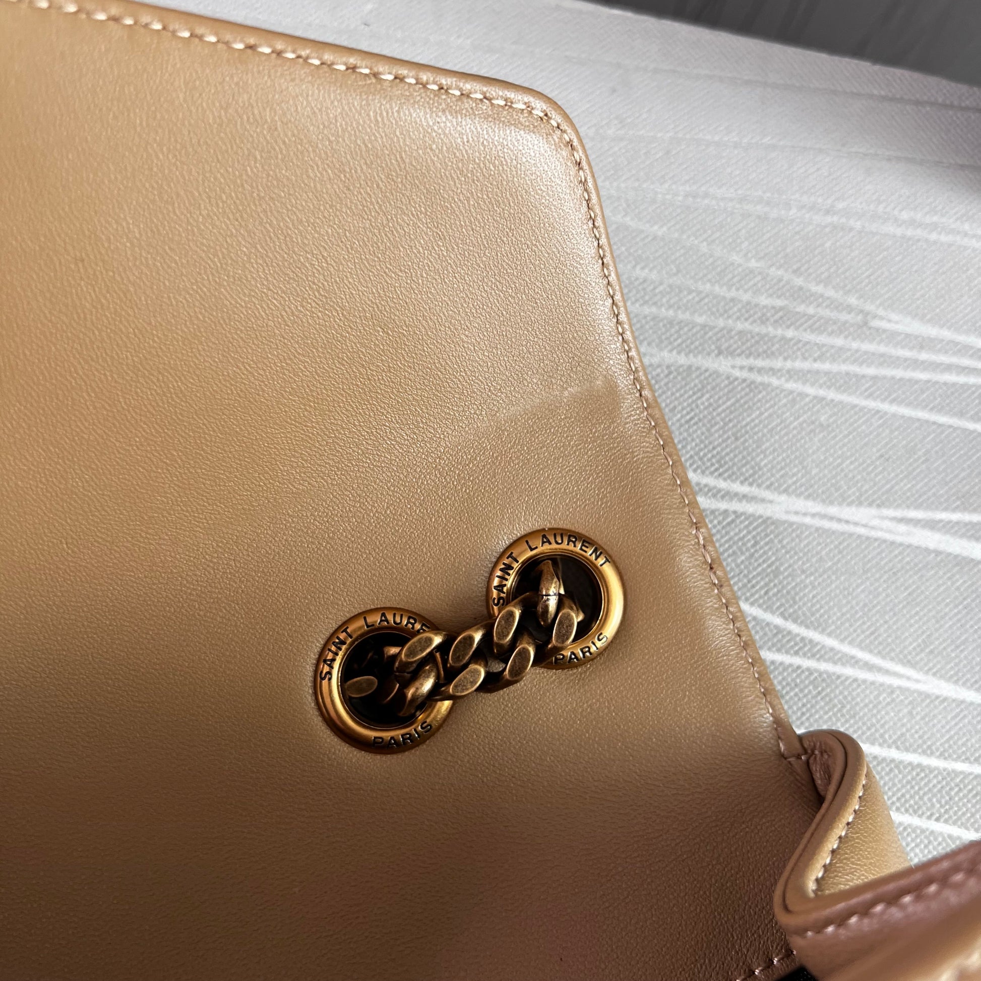 Bolso Y piel color beige bronce, con herrajes en color oro vintage. Se puede usar cruzada o al hombro.Dimensiones 24 X 14 X 6 cm. En el interior viene un pequeño monedero y en espejo. Incluye caja, shopping bag y bolsa guardapolvo.