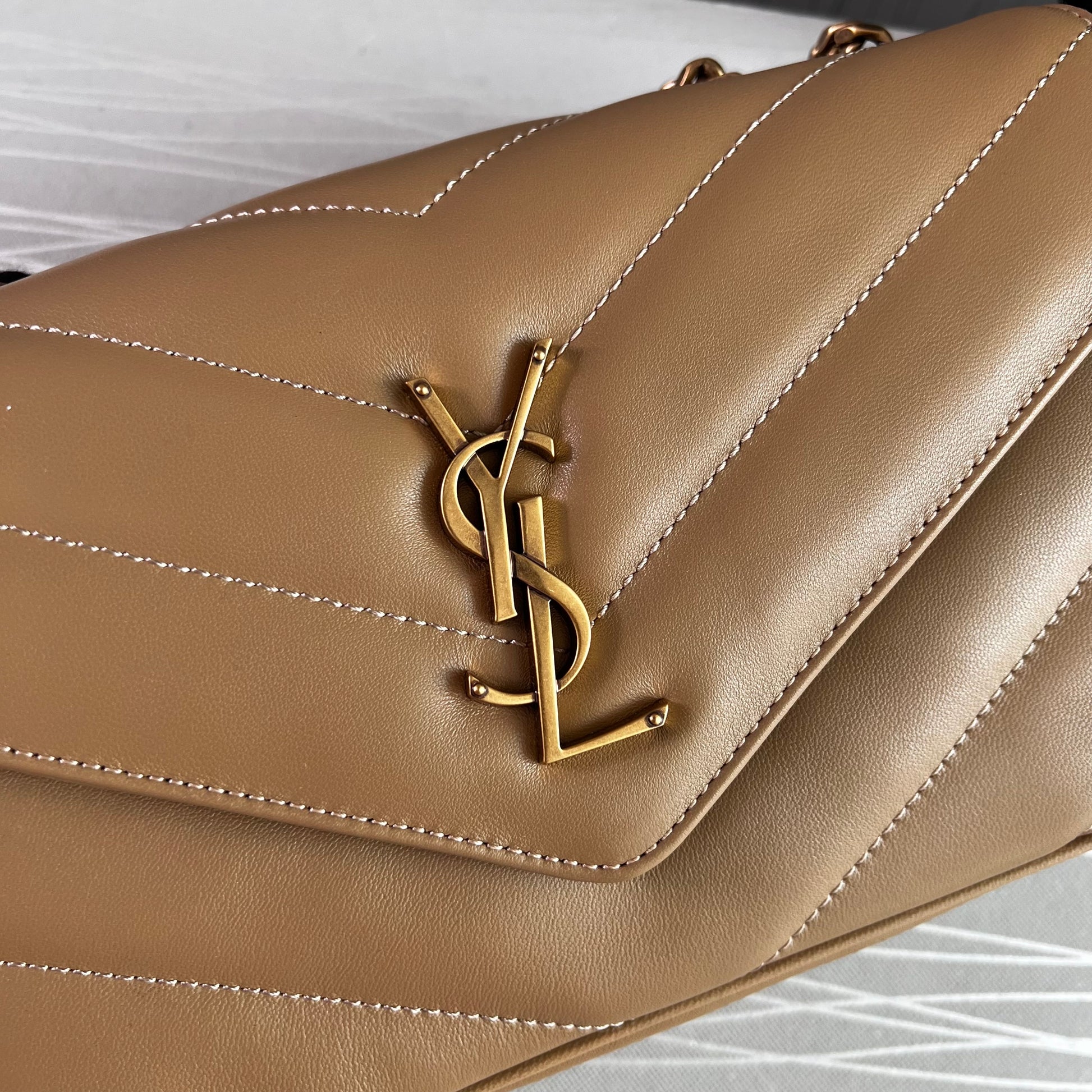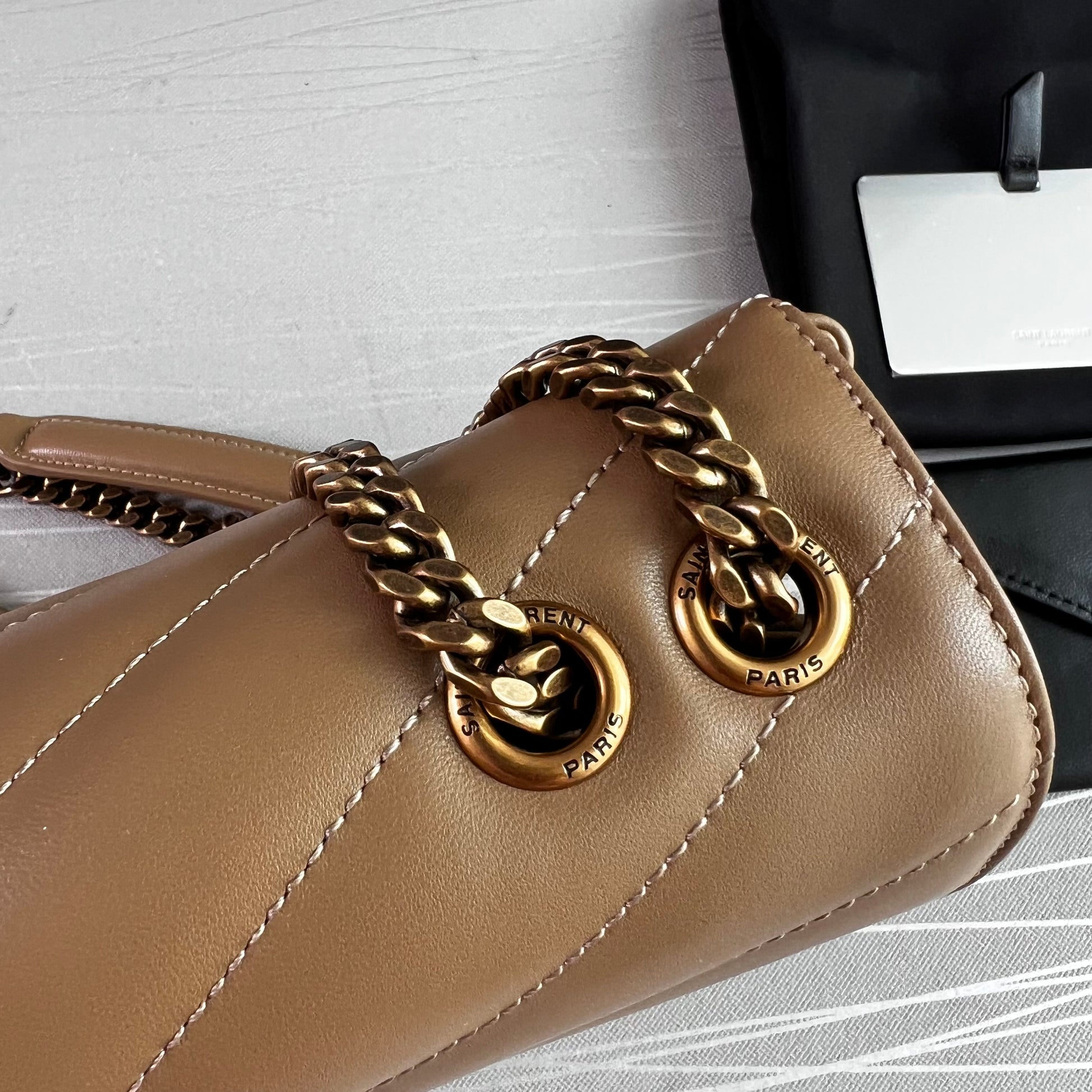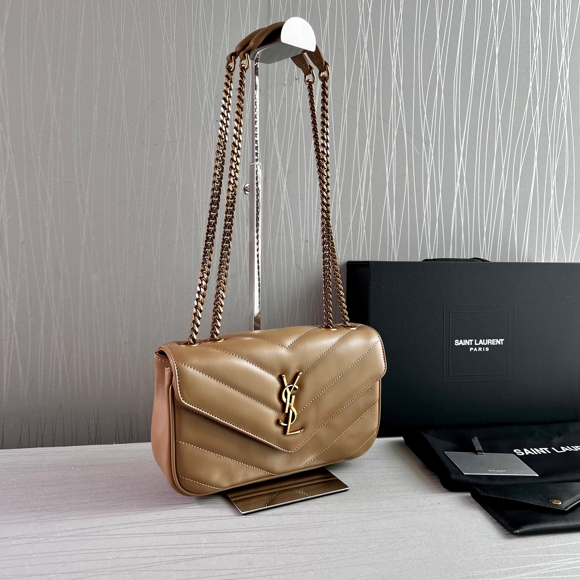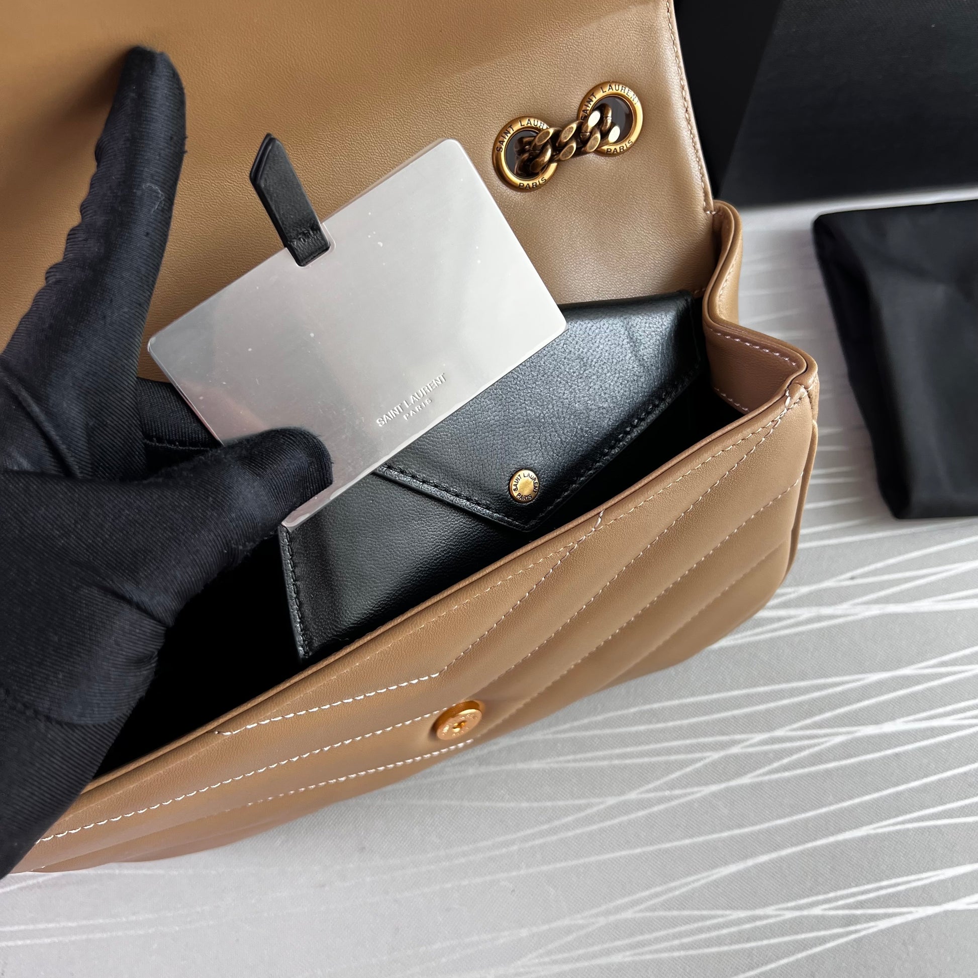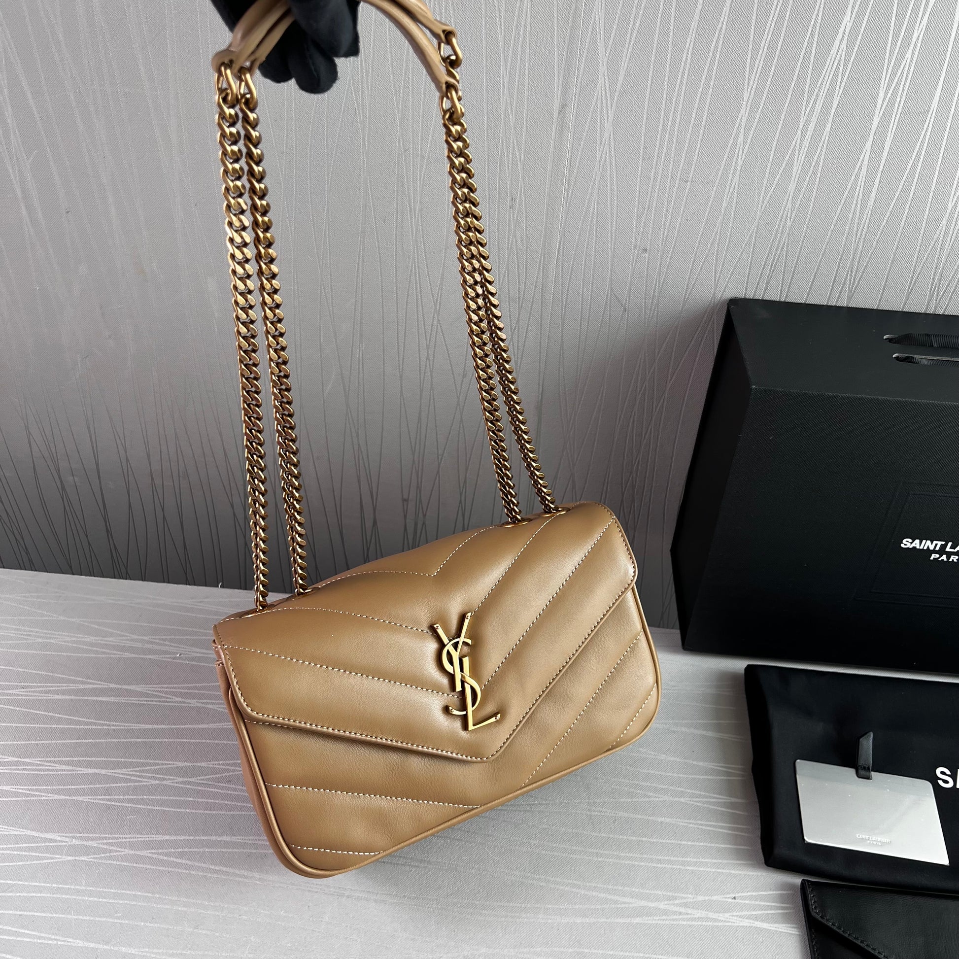 Bolso Y piel color beige bronce, con herrajes en color oro vintage. Se puede usar cruzada o al hombro.Dimensiones 24 X 14 X 6 cm. En el interior viene un pequeño monedero y en espejo. Incluye caja, shopping bag y bolsa guardapolvo.