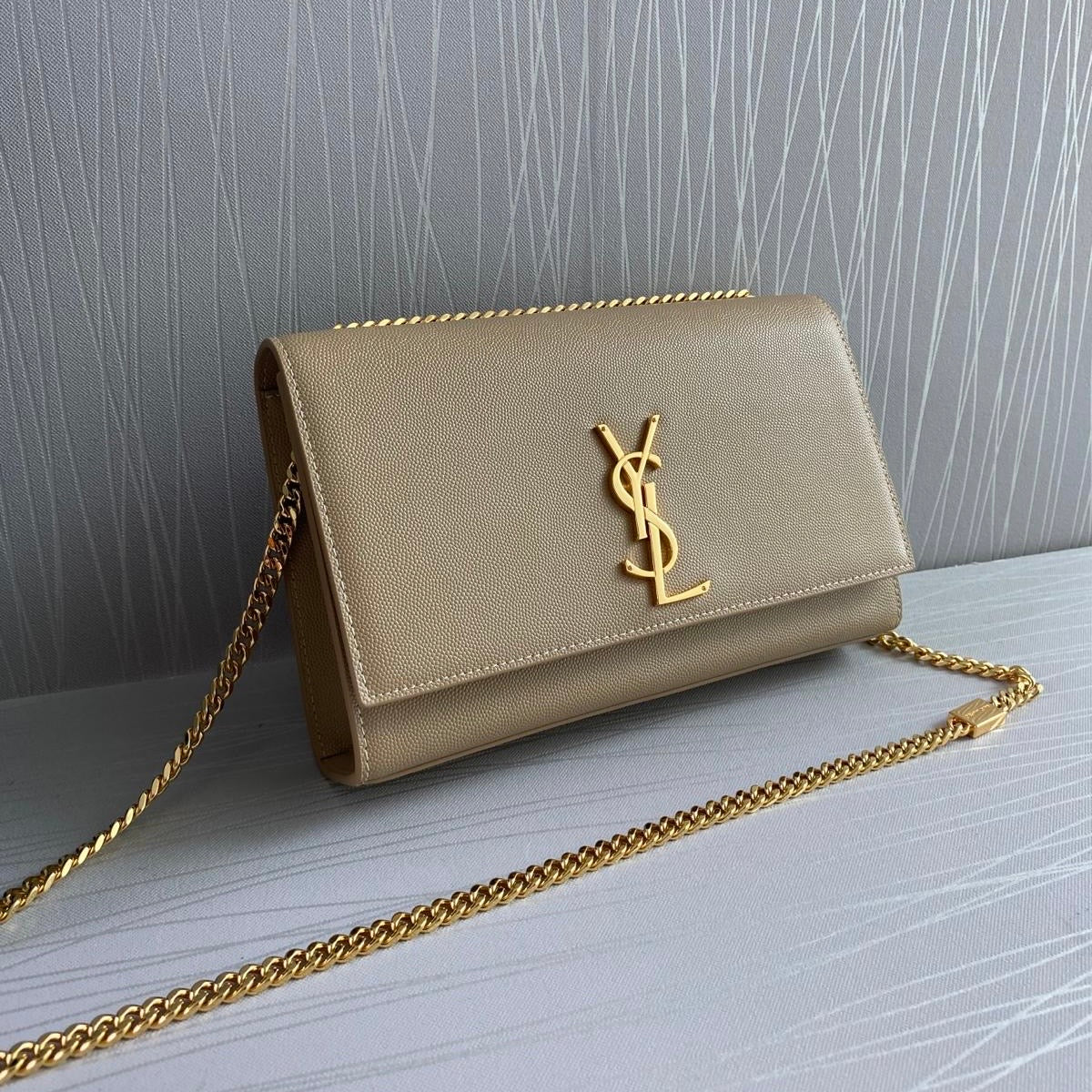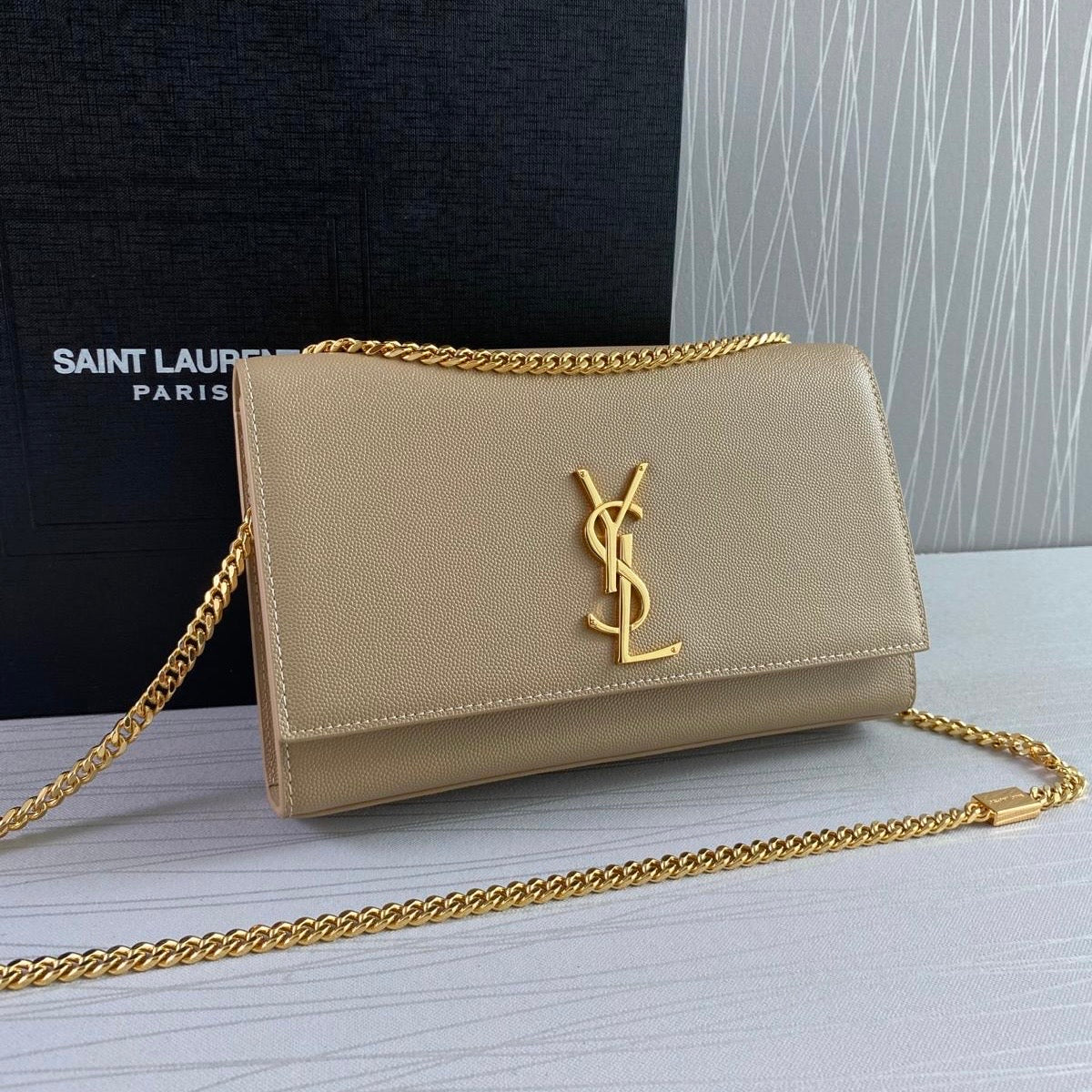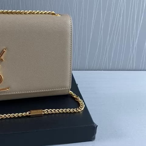 Bolso Y K-ate piel grained color beige herrajes dorados