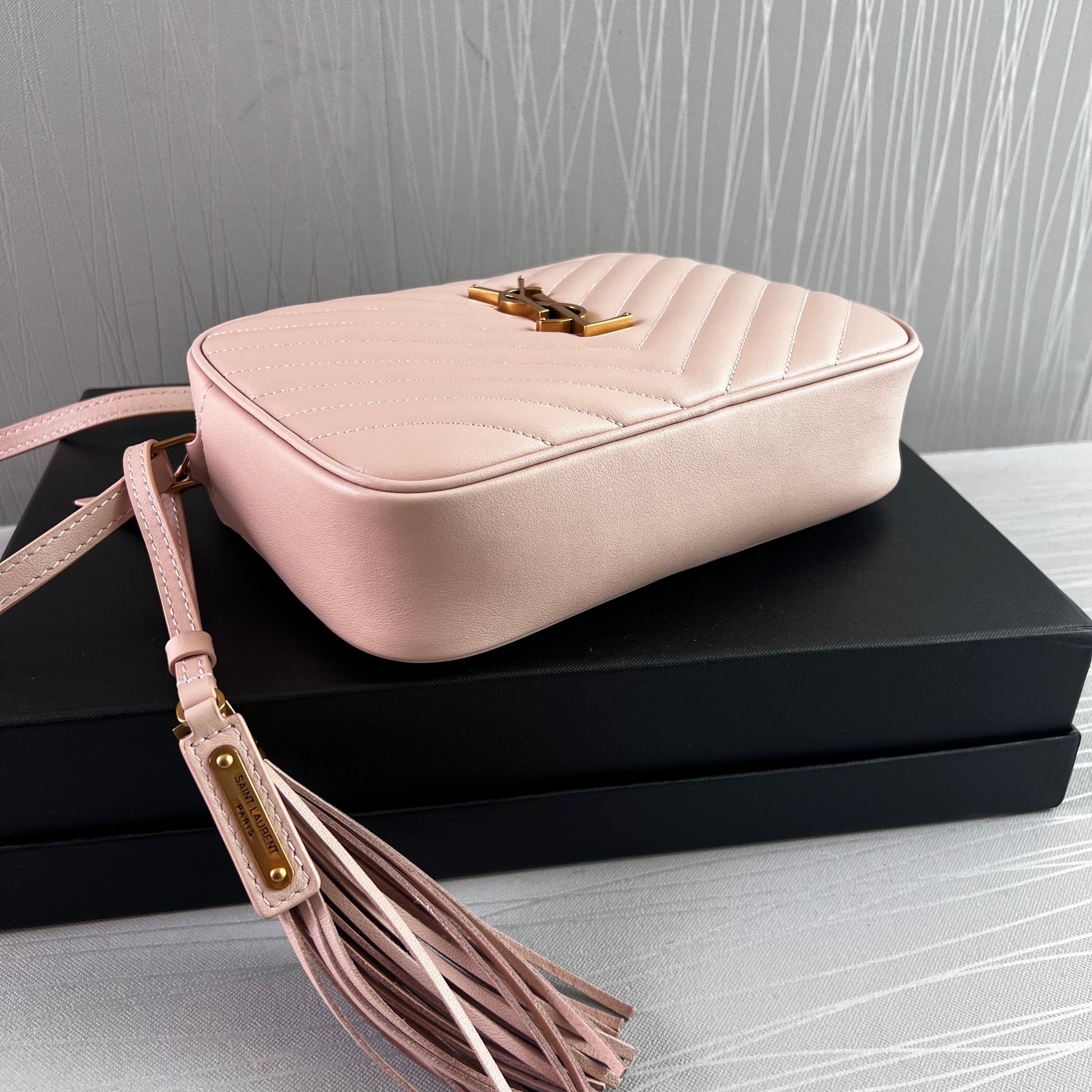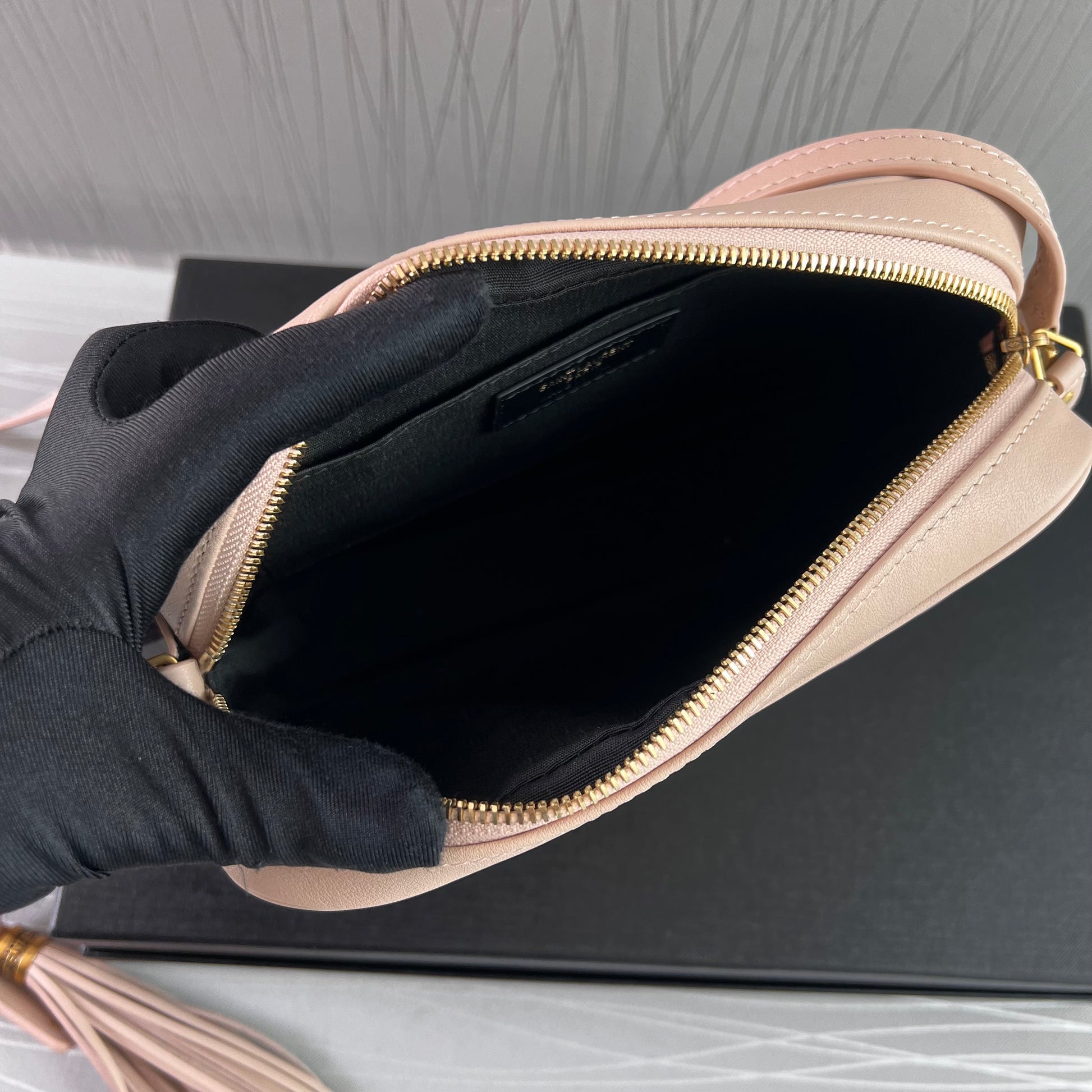 Bolso en piel color rosa nude, herrajes en color oro vintage. Dimensiones 23 x 16 x 3 cm. Incluye shopping bag y guardapolvo.