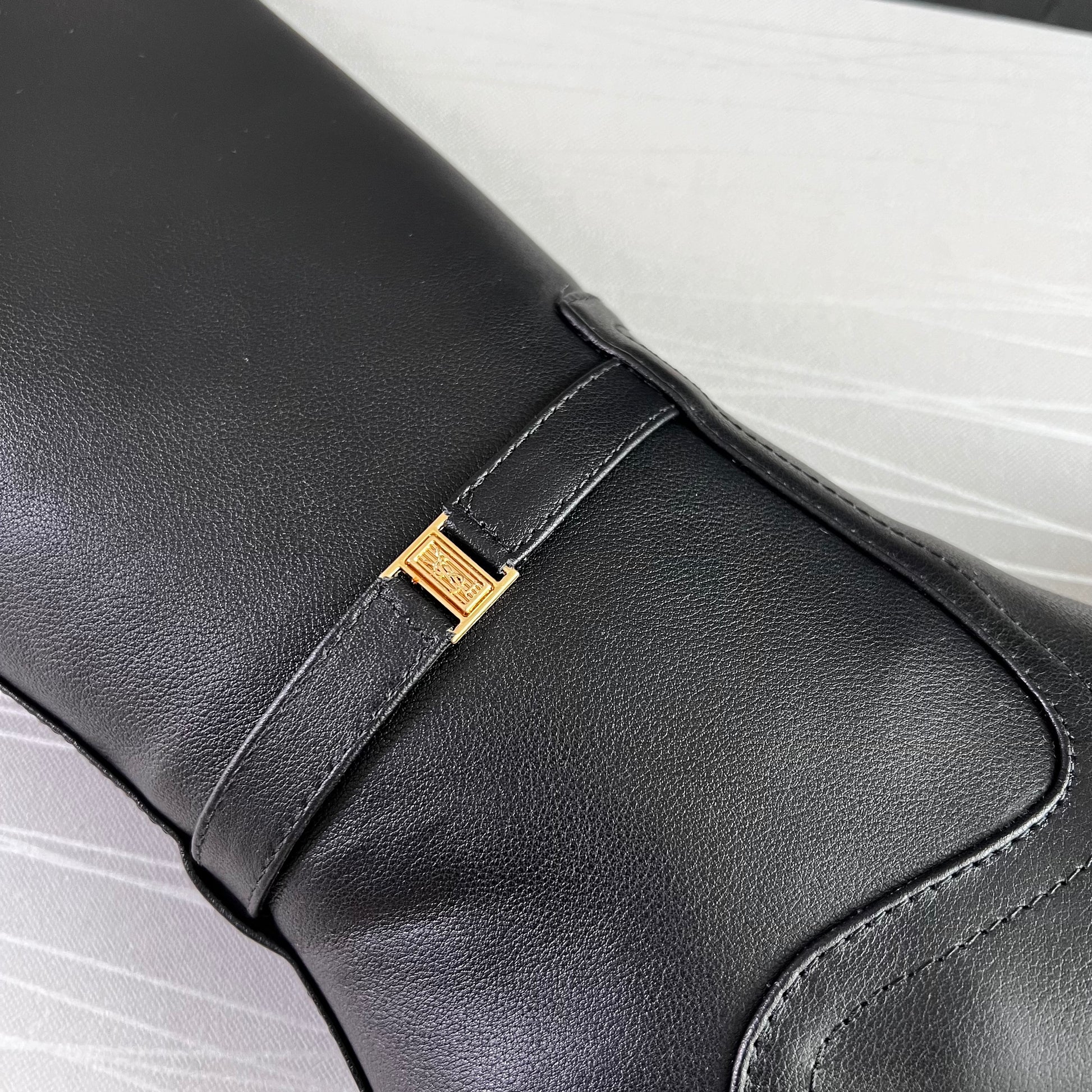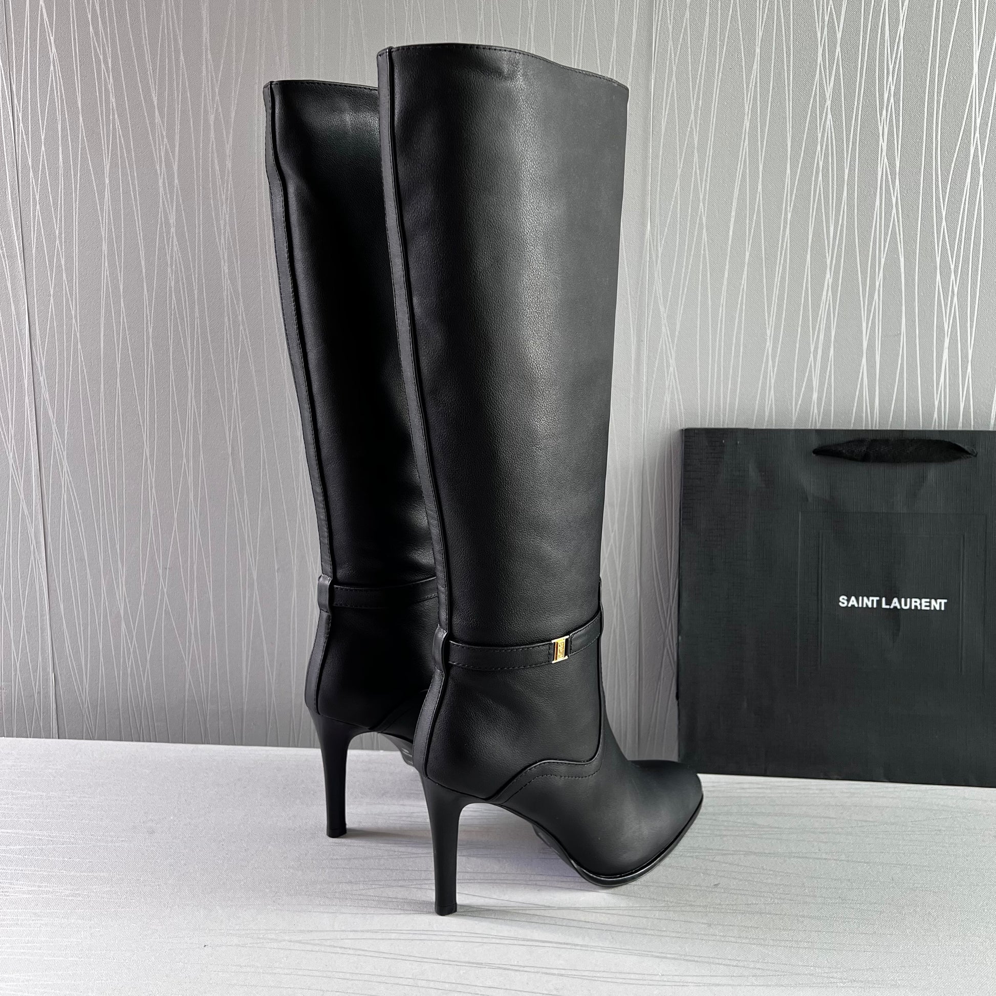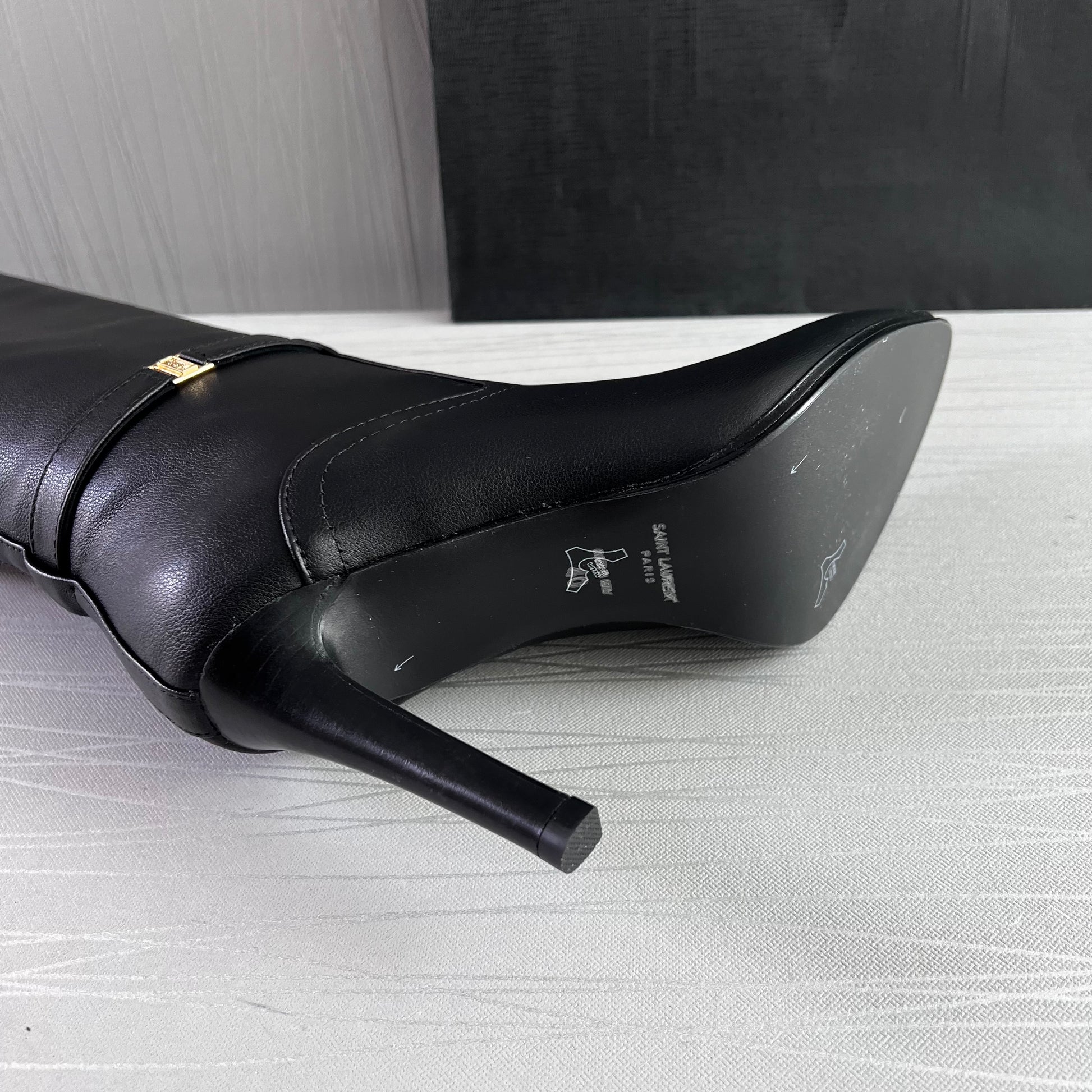 Botas Y largas piel color negro con herraje dorado de la marca. Tacón 10 cm.
