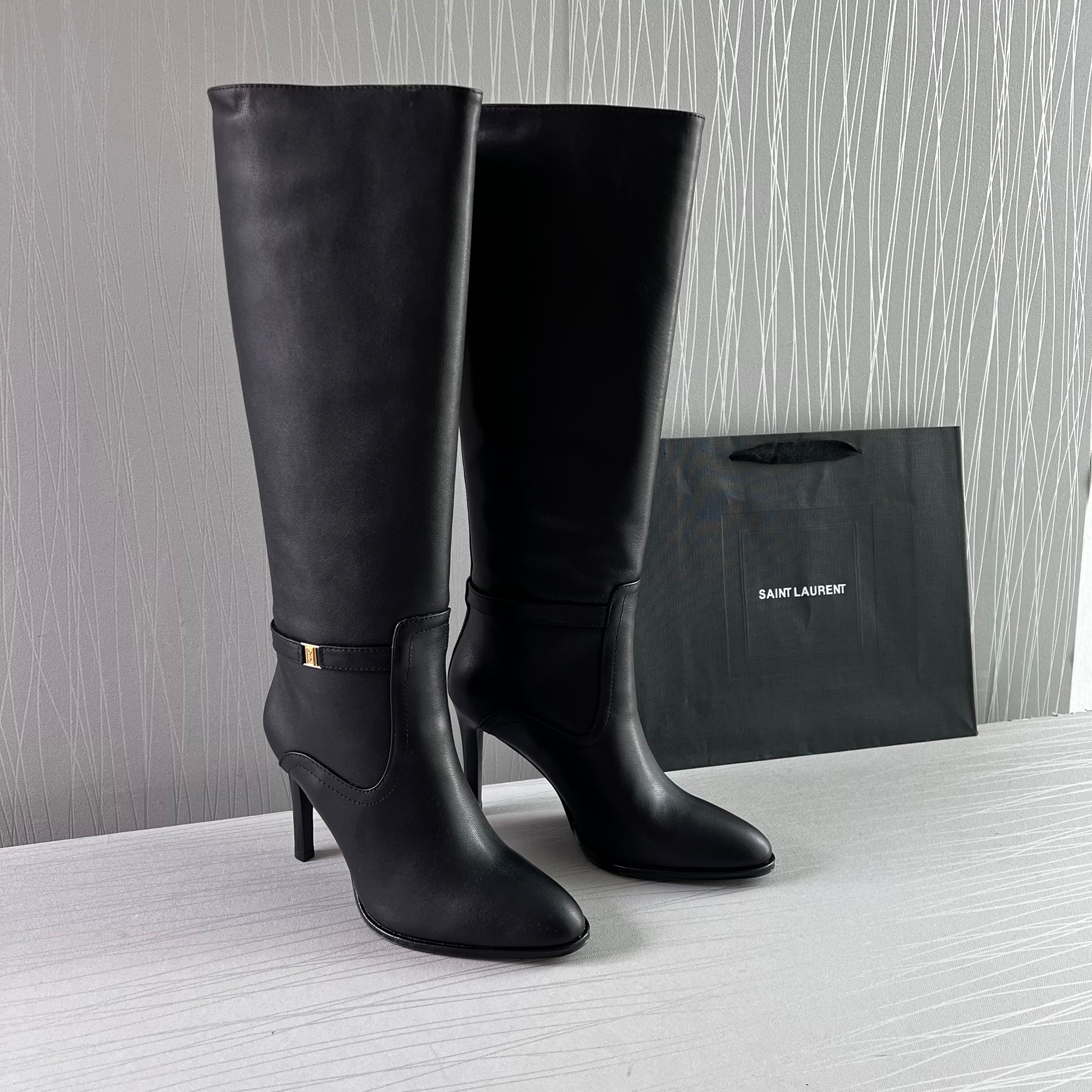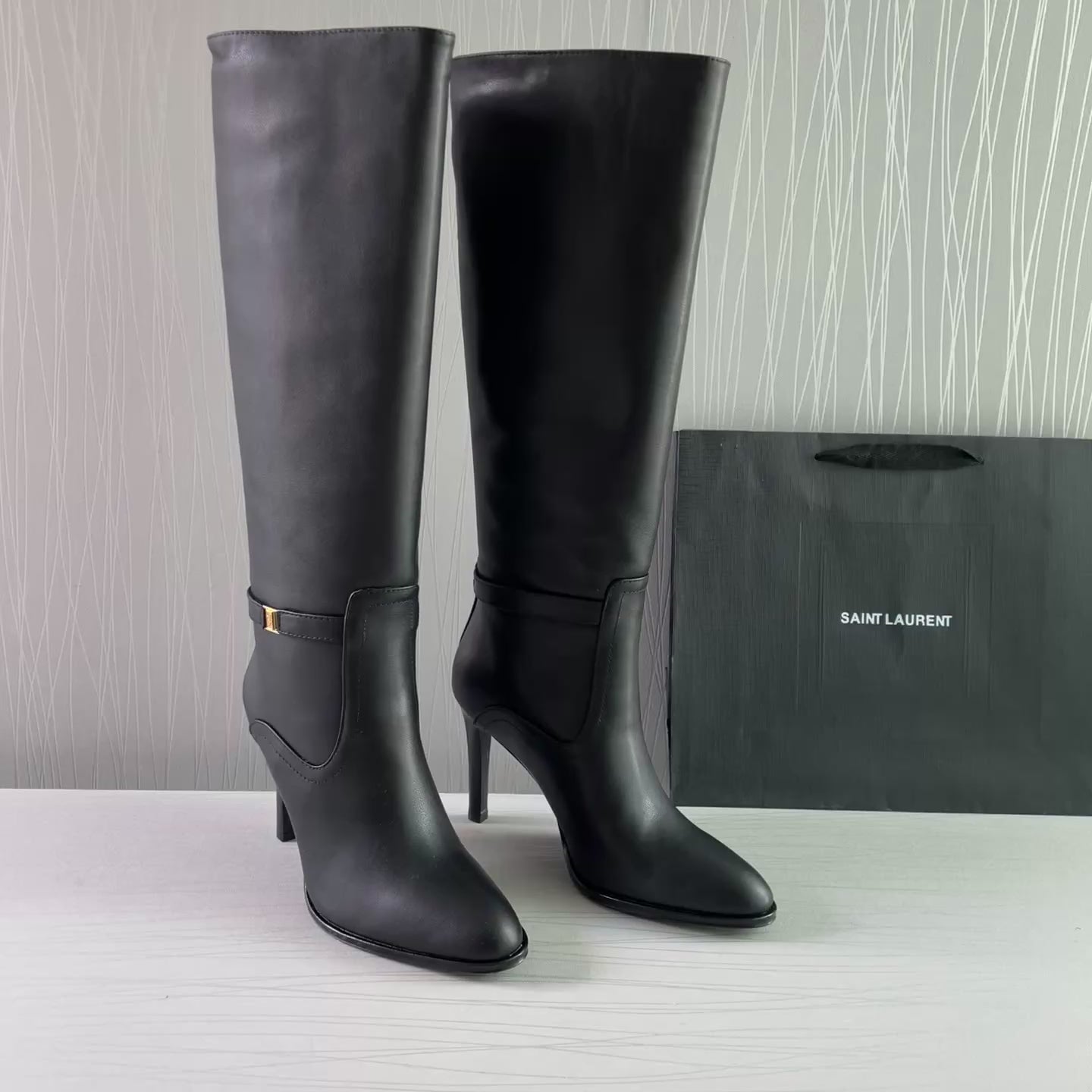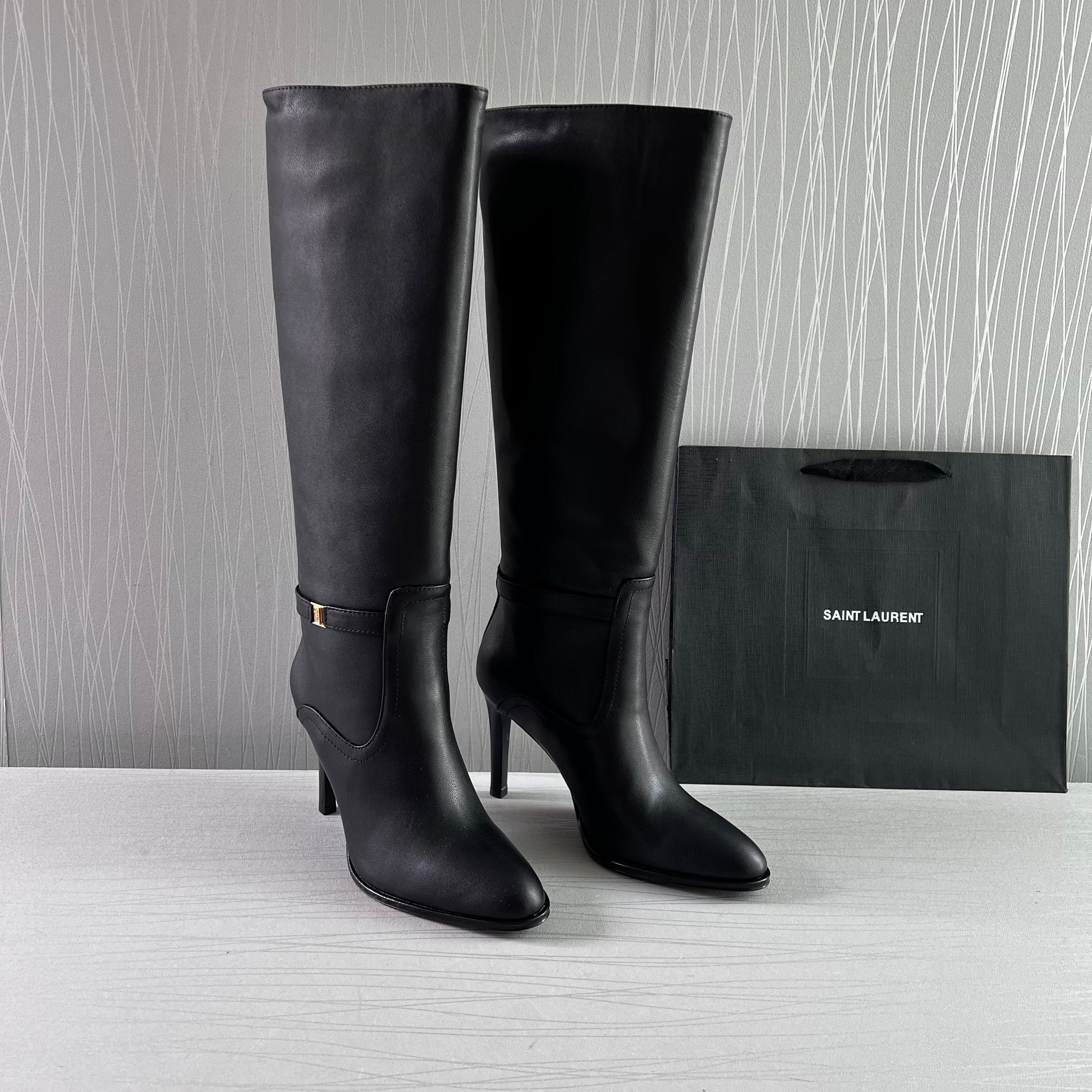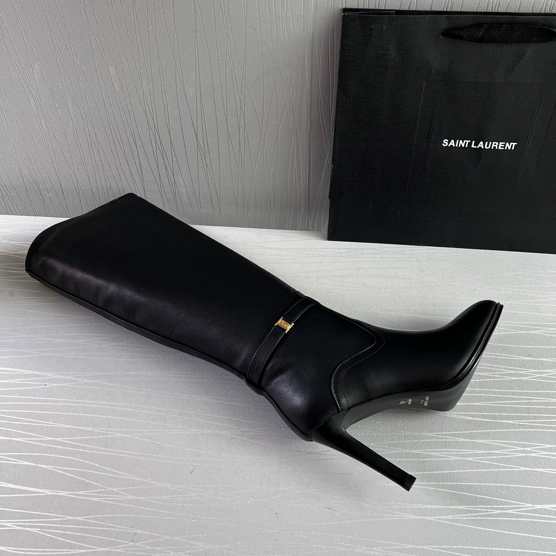 Botas Y largas piel color negro con herraje dorado de la marca. Tacón 10 cm.
