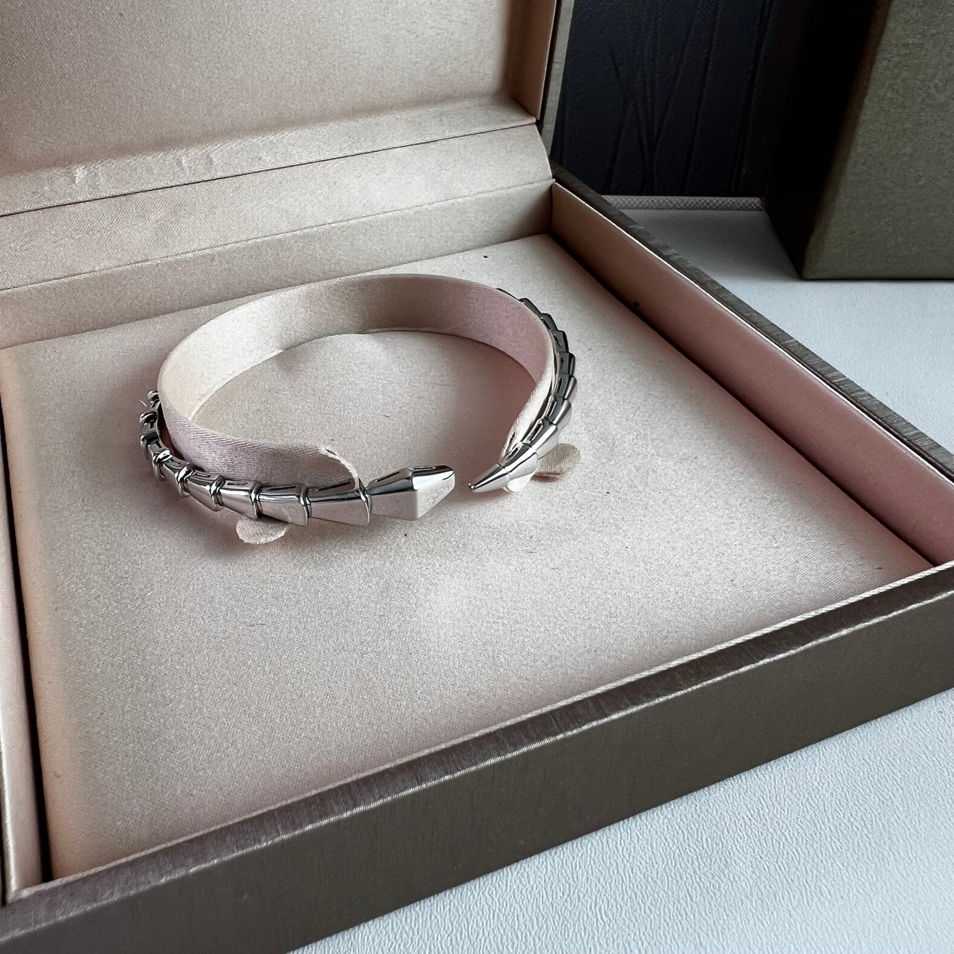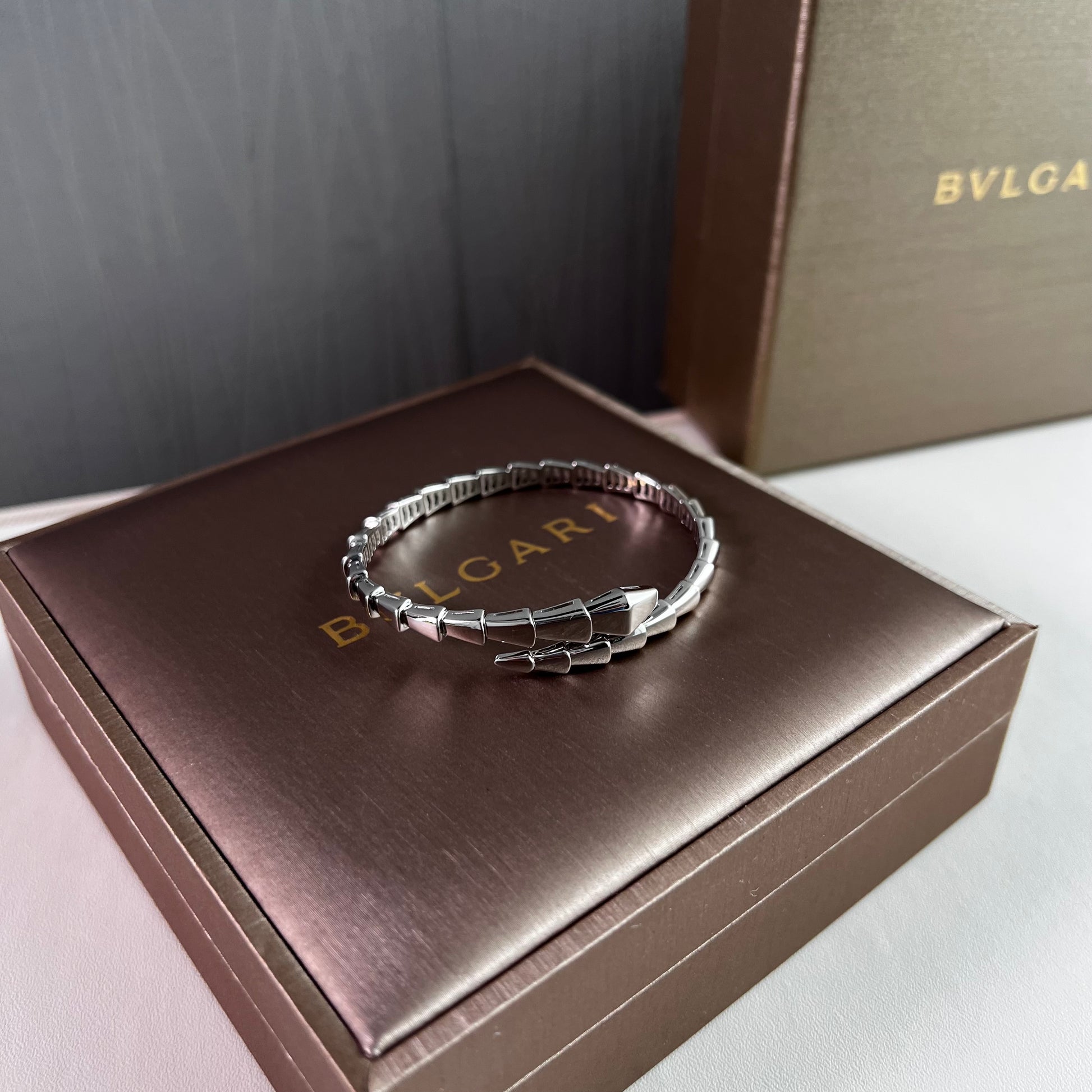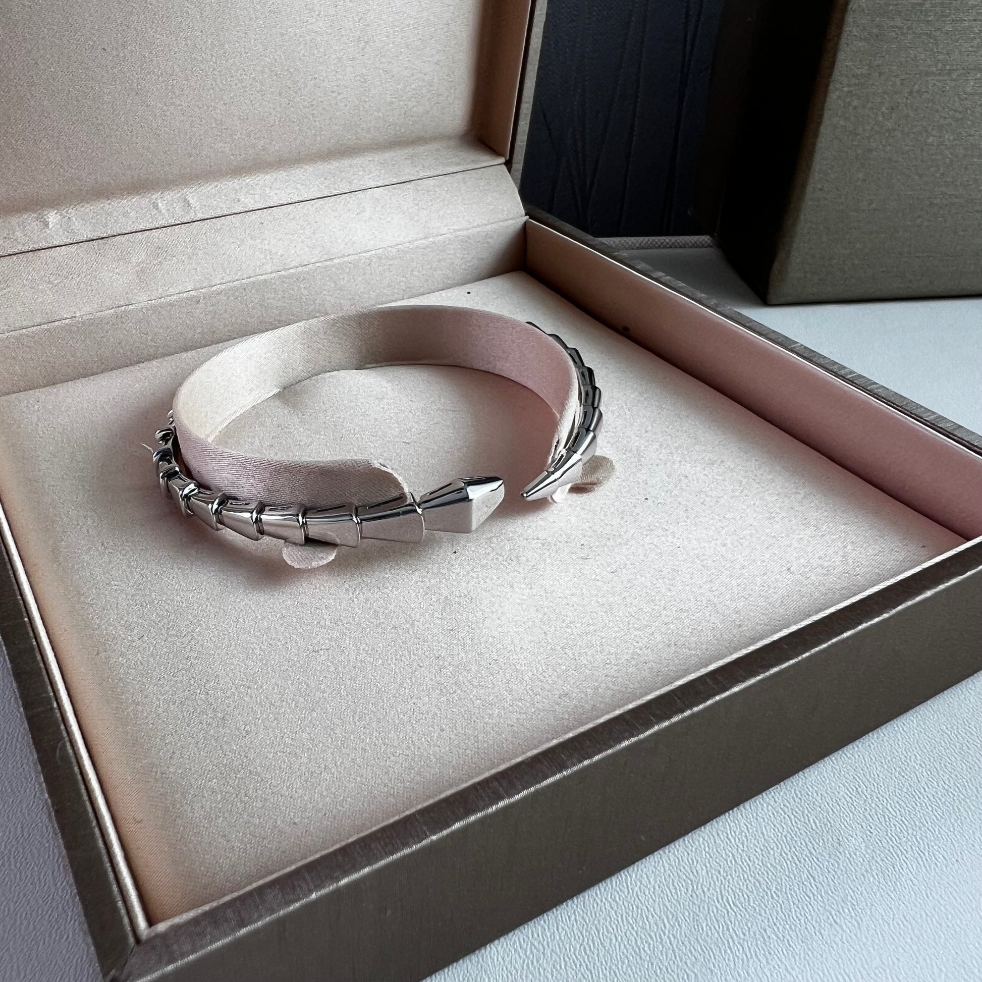 Brazalete B flexible color plateado unitalla. Incluye caja y shopping bag.