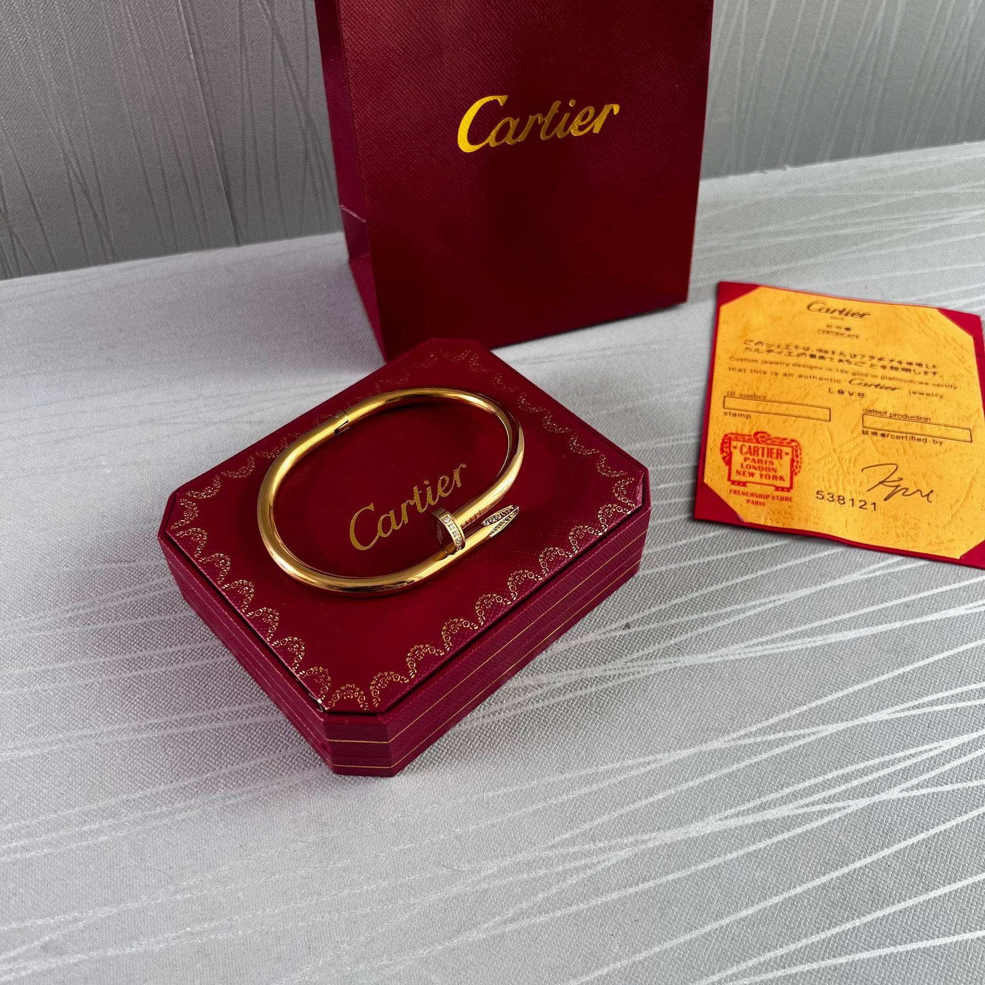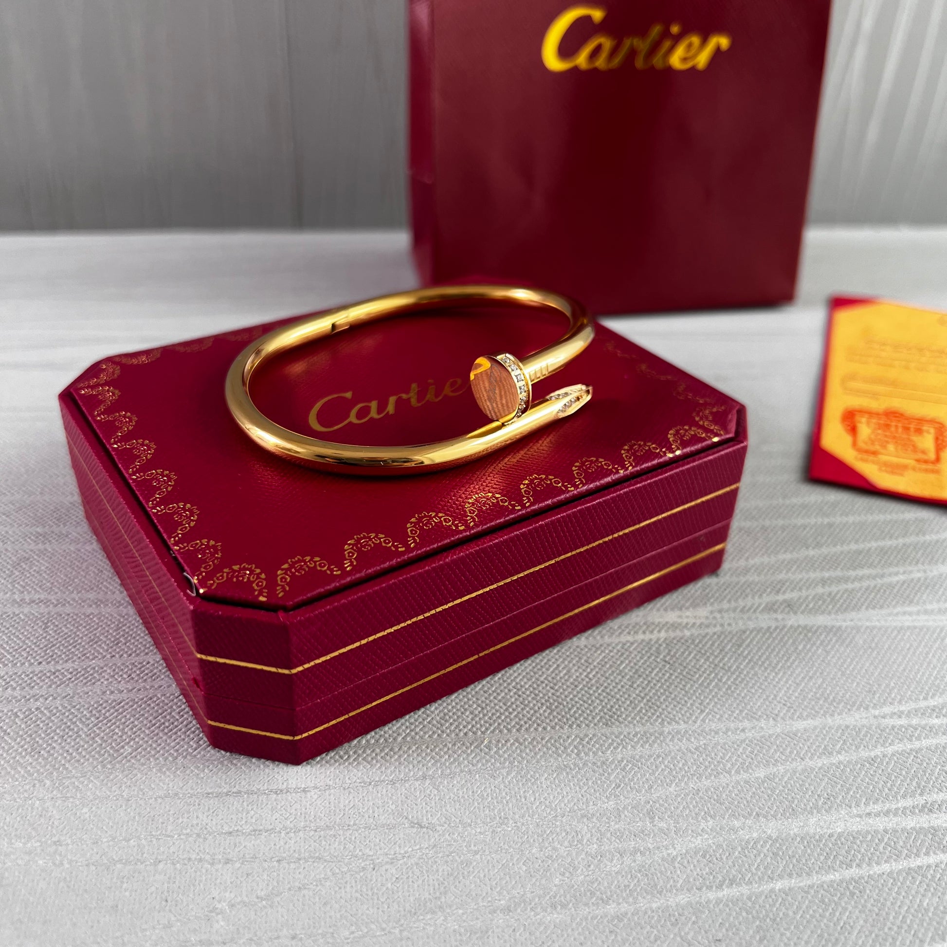 Brazalete C color dorado con brillos. Shopping bag, cubrepolvo y caja.