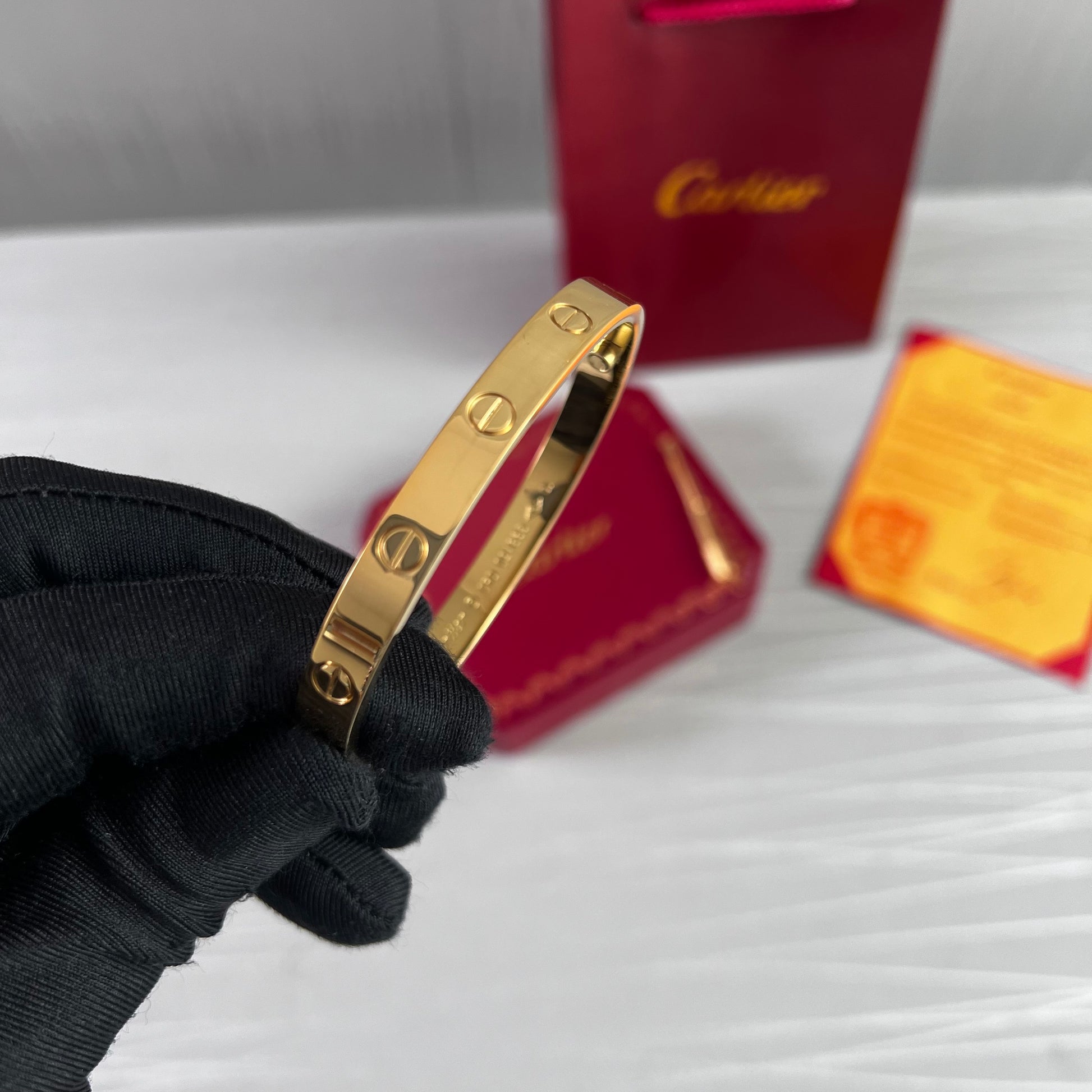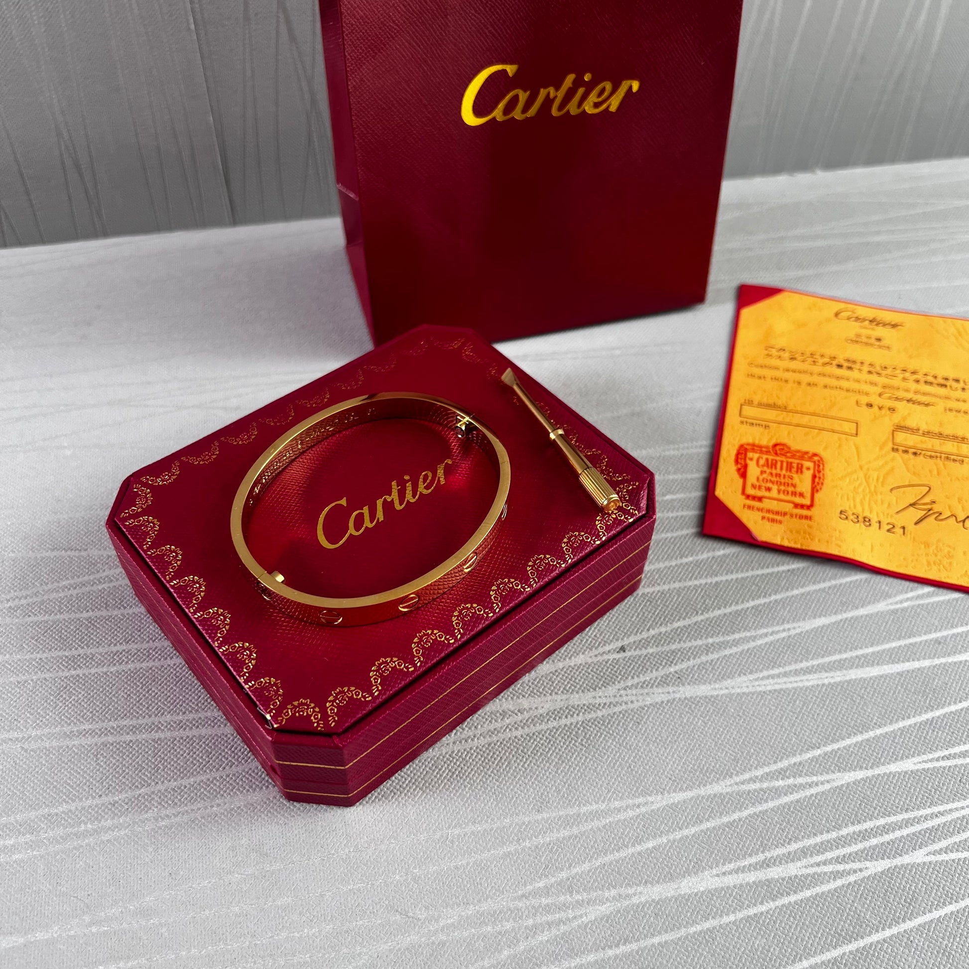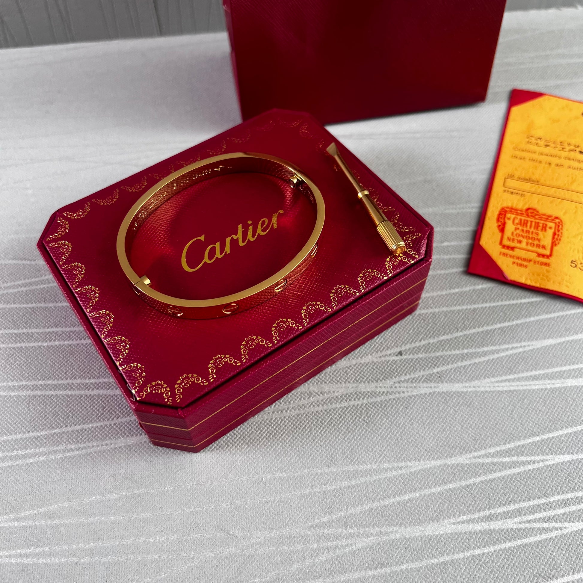 Brazalete C dorado. Incluye herramienta para abrirlo. Shopping bag y estuche.