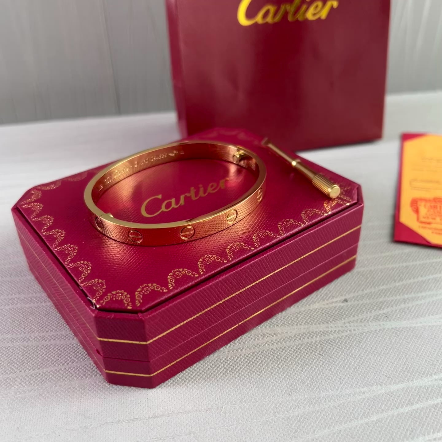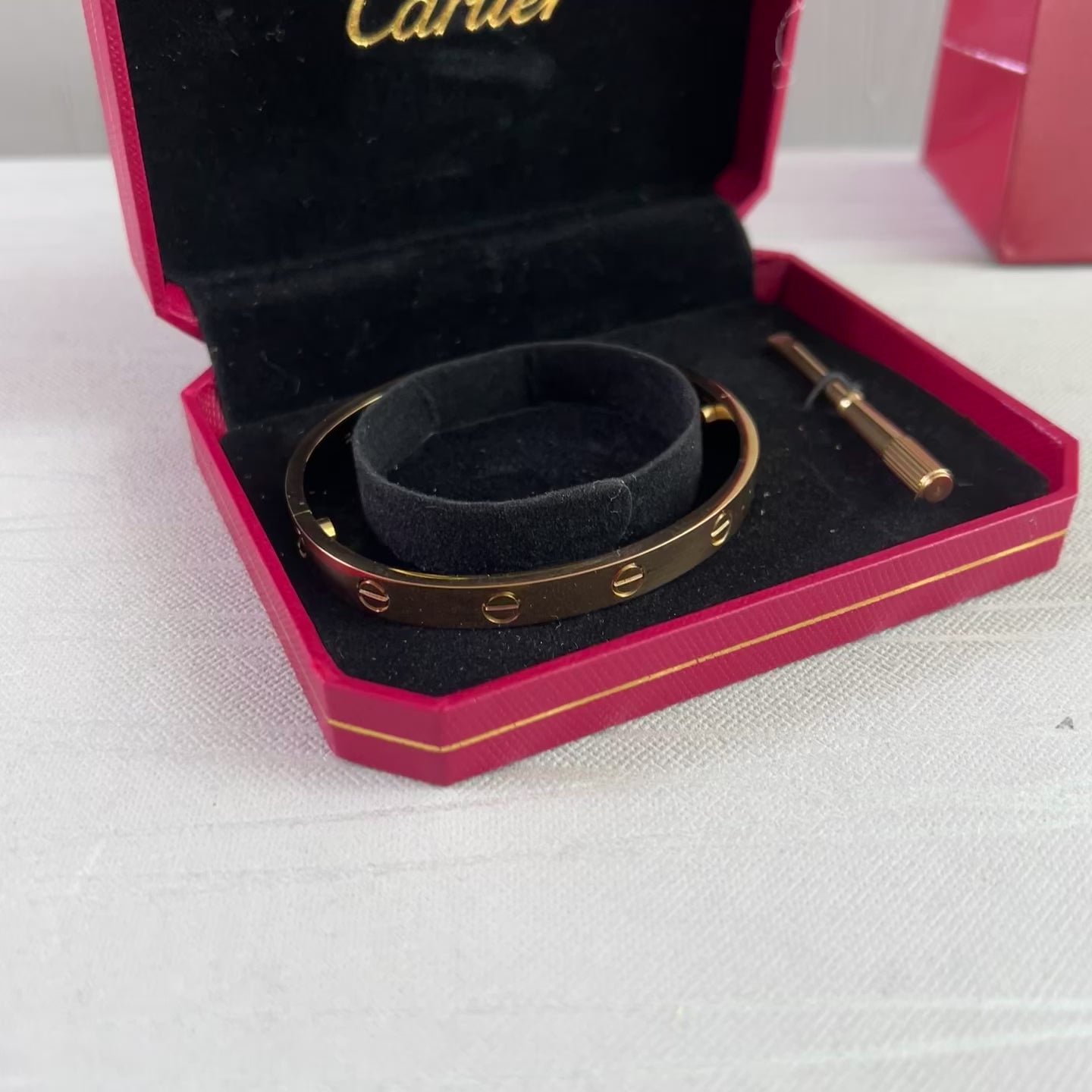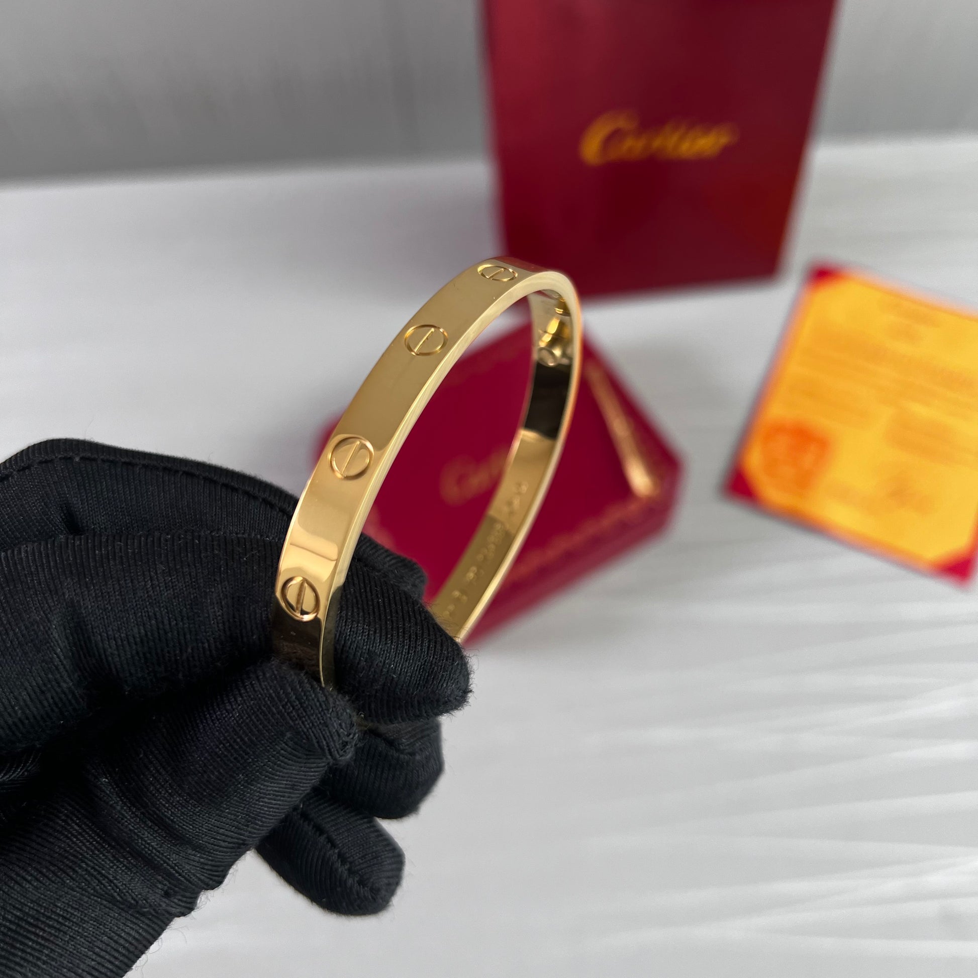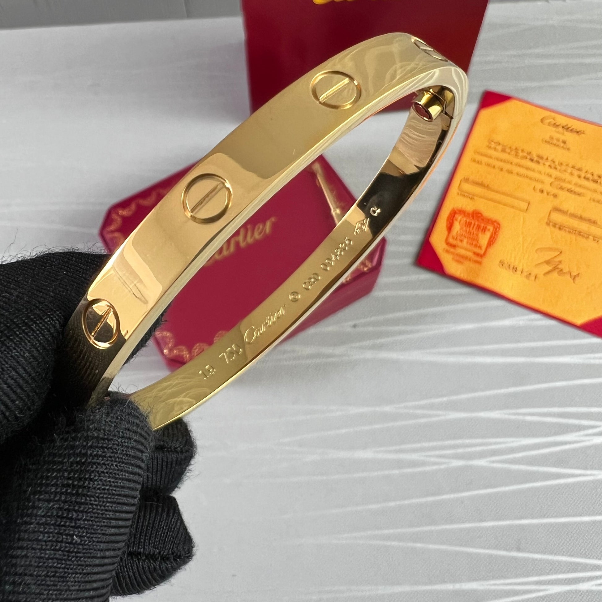 Brazalete C dorado. Incluye herramienta para abrirlo. Shopping bag y estuche.