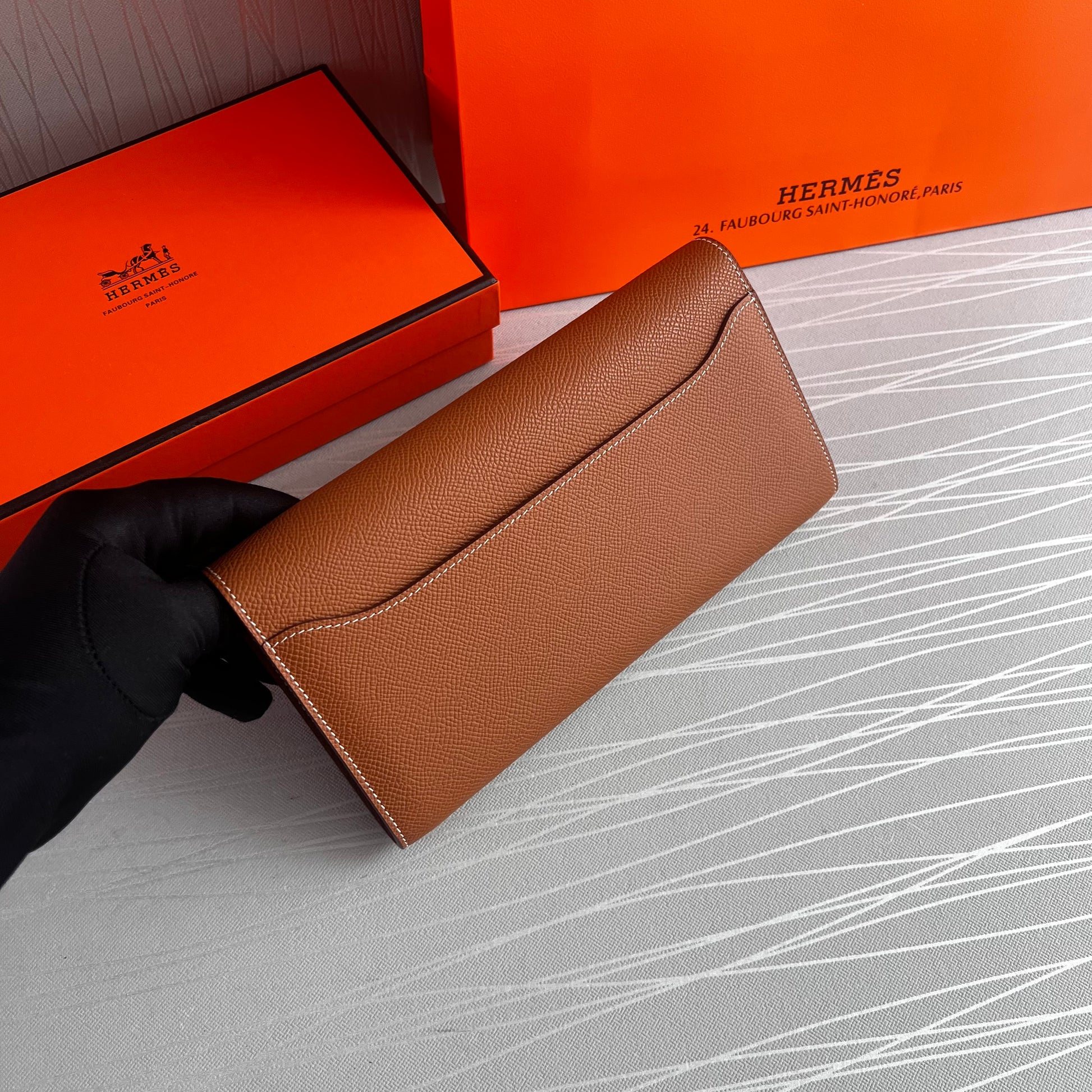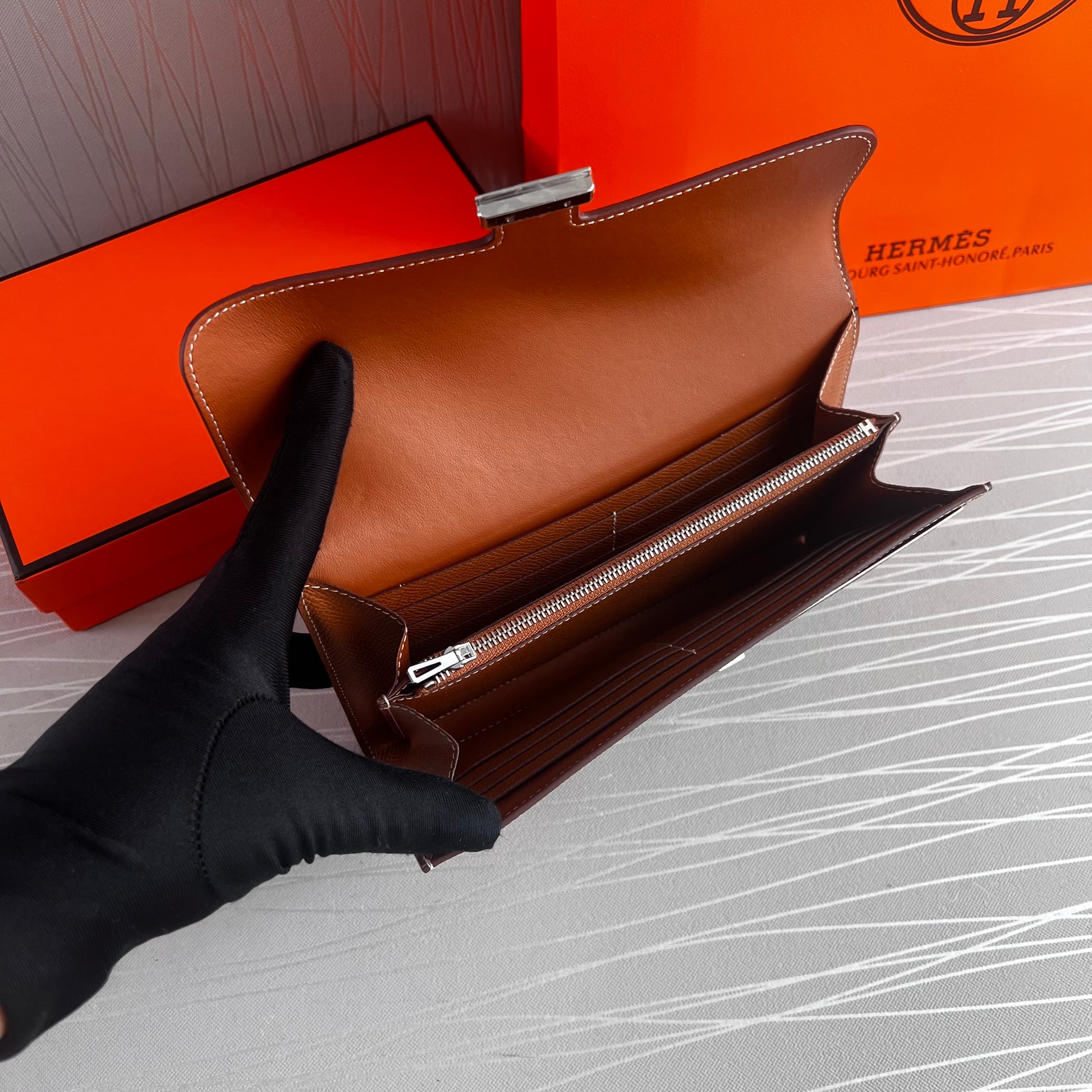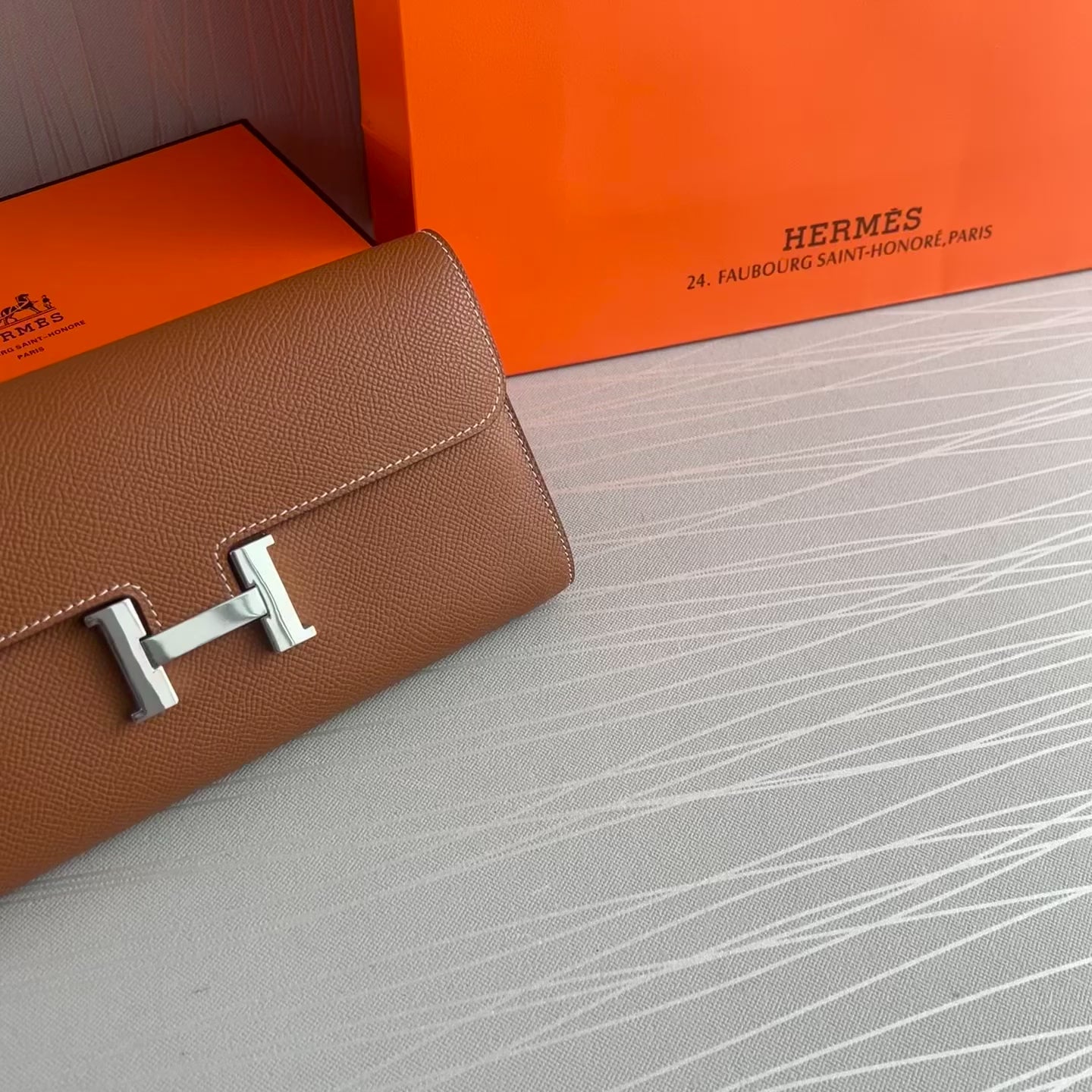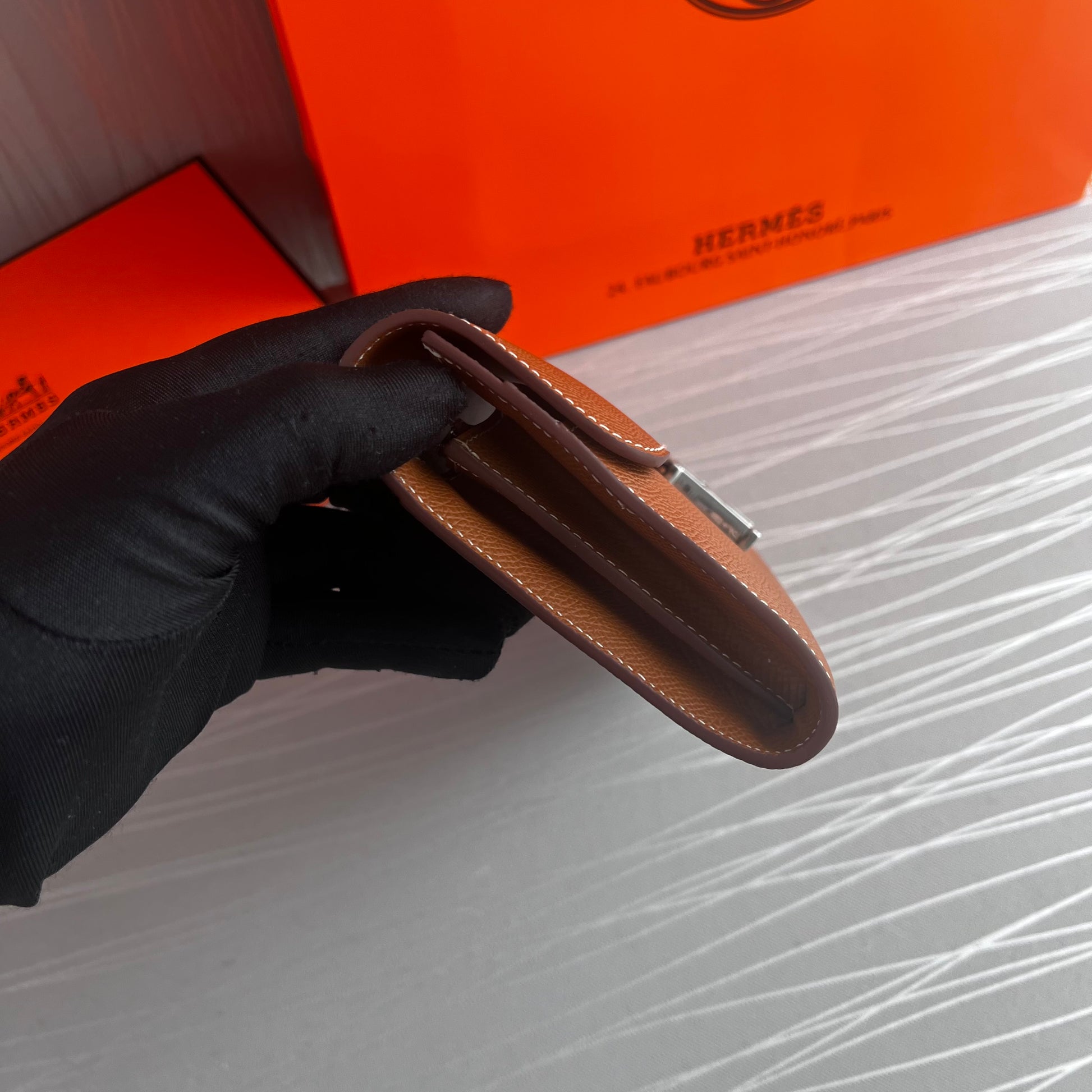 Cartera H piel color café herraje plata