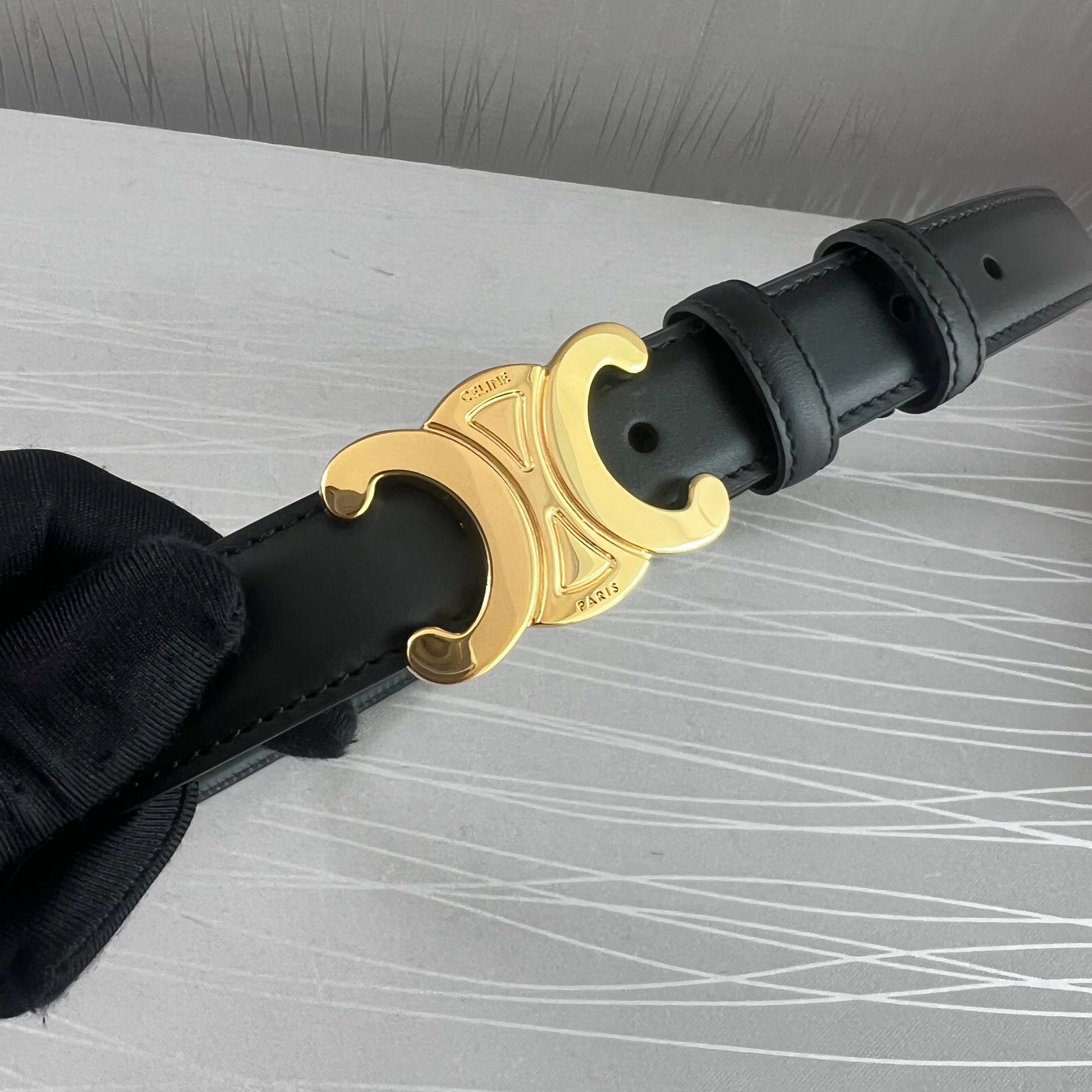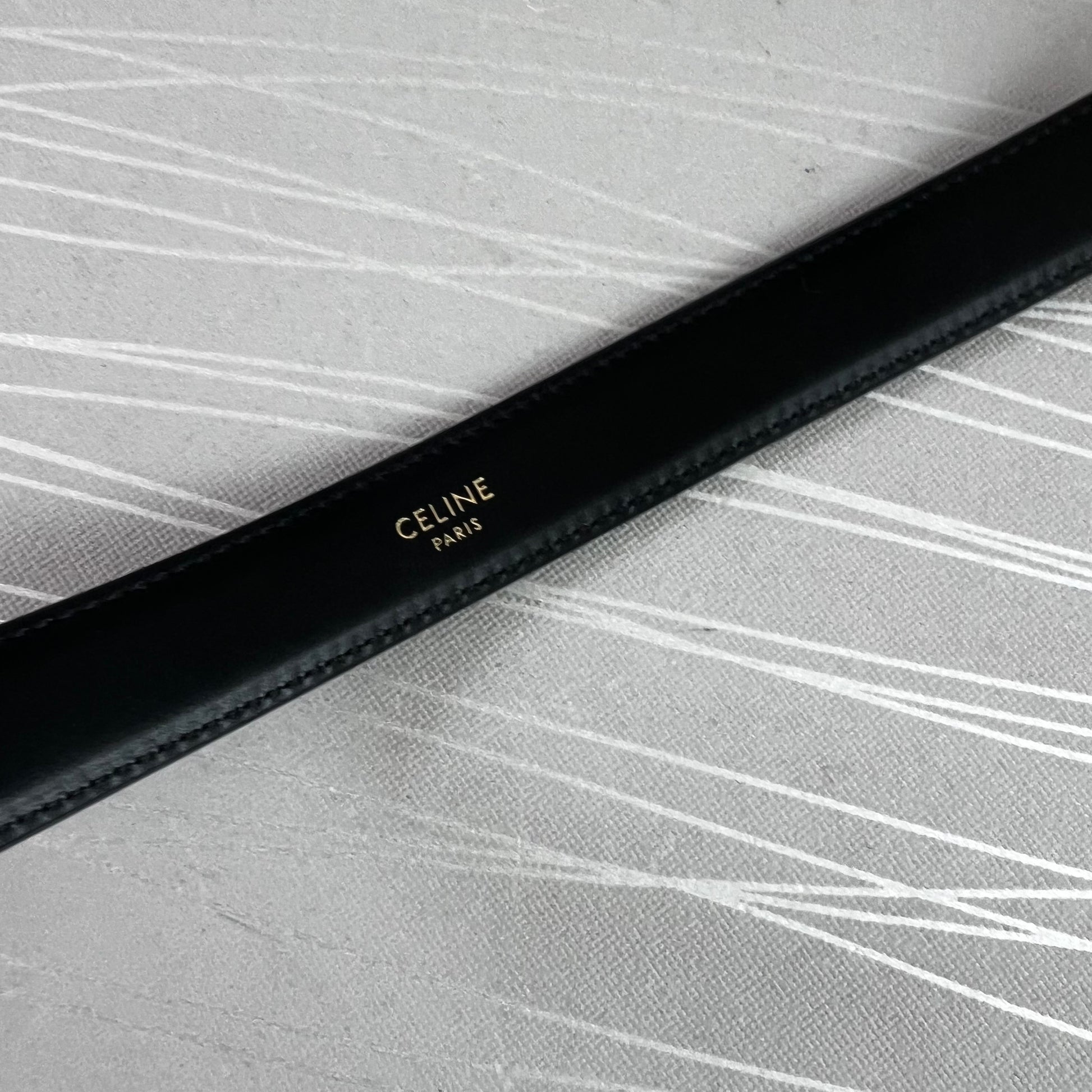 Cinto piel color negro con herraje dorado, incluye caja , guarda polvo y shopping bag.Ancho 2.5 cm.
