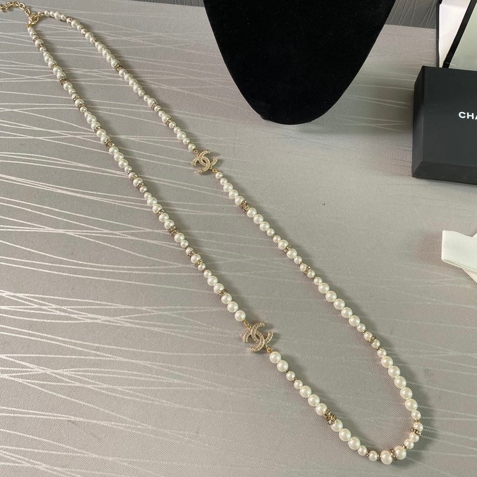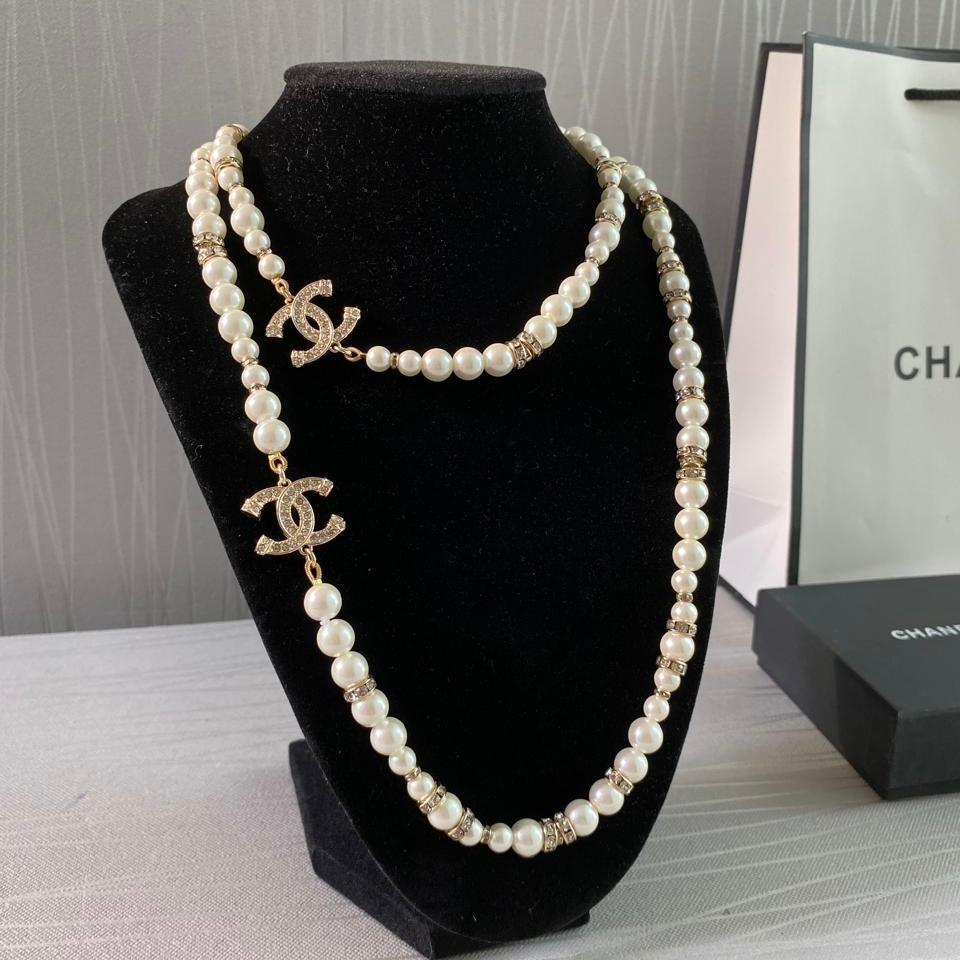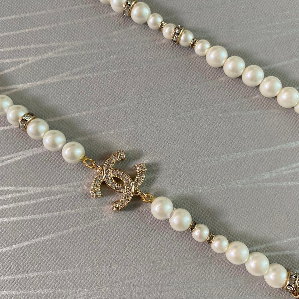 Collar C dorado combinado con perlas