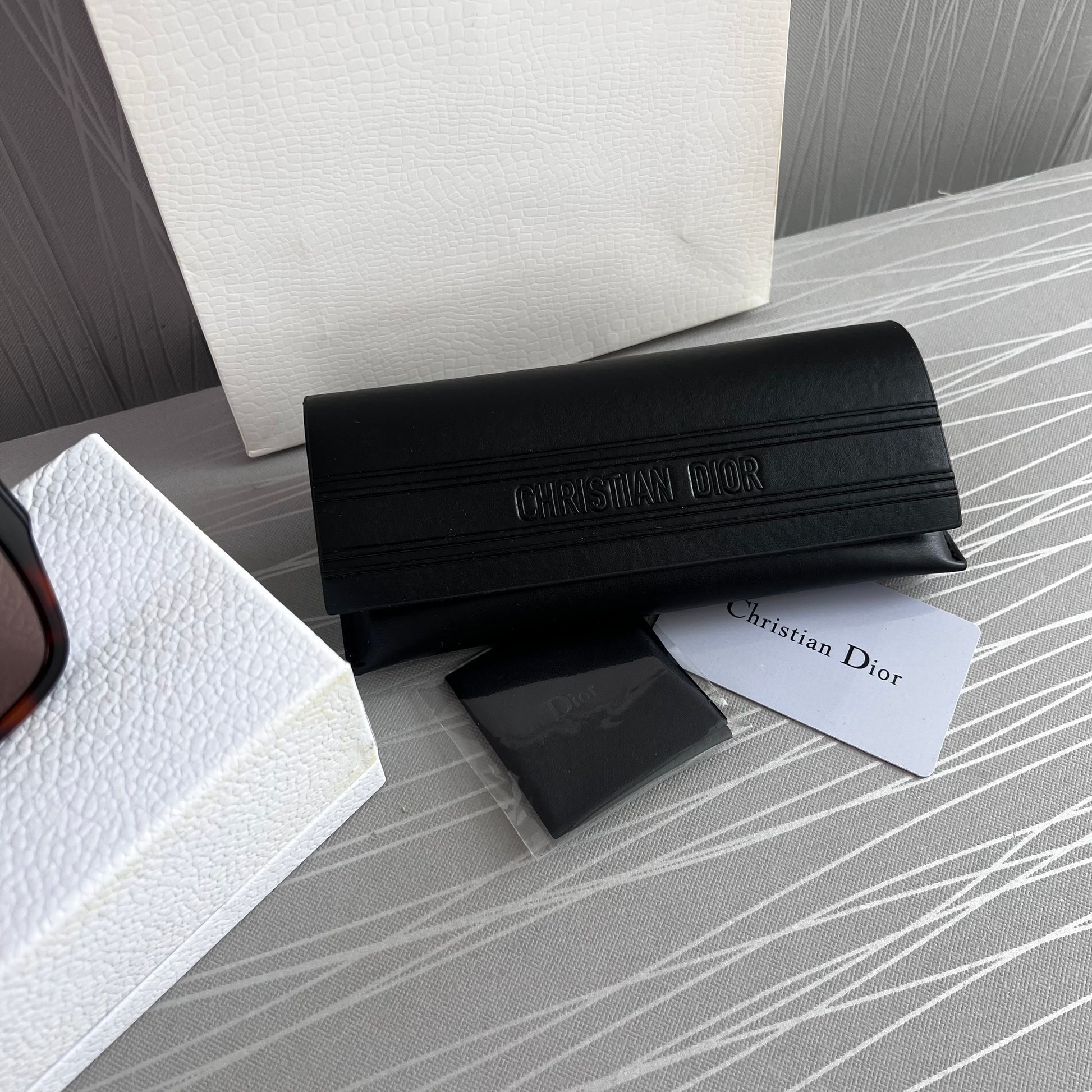 Lentes D color café en carey. Incluye caja, estuche, shopping bag, guardapolvo.