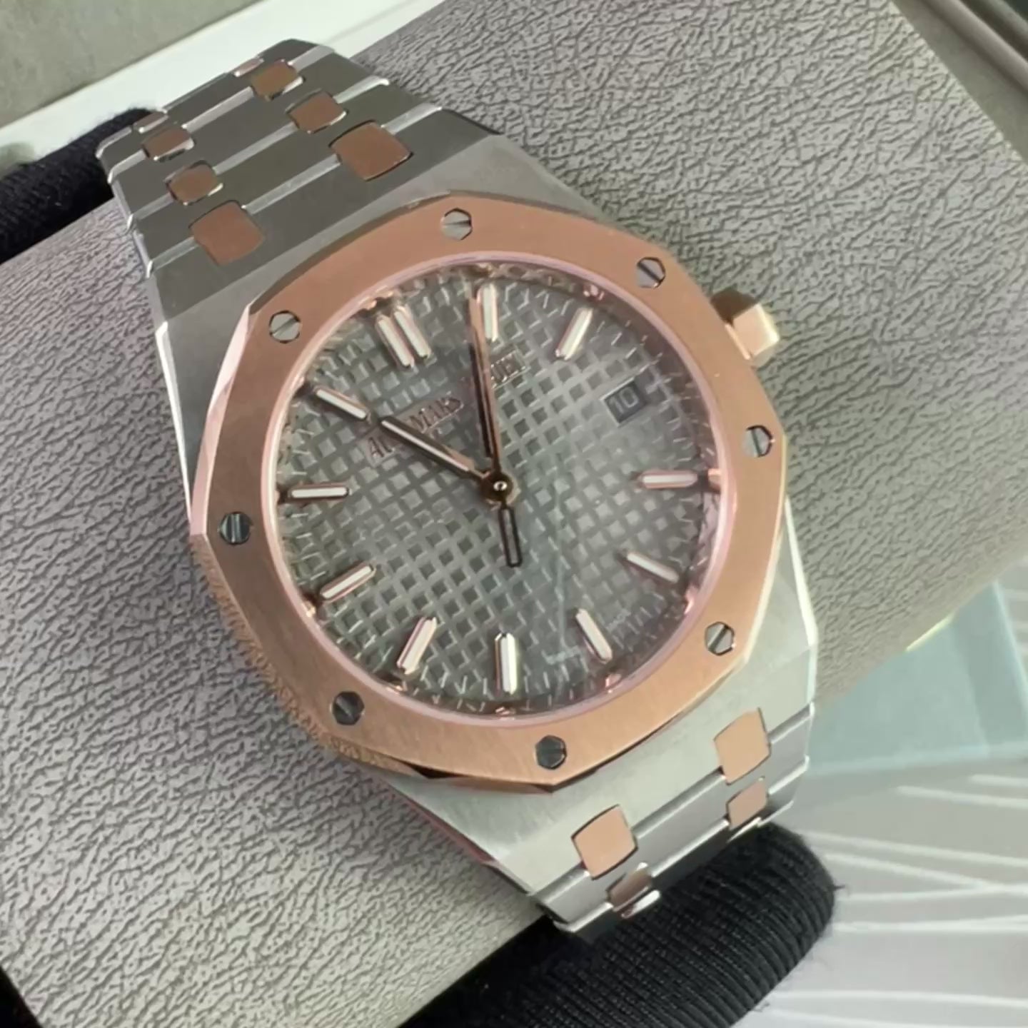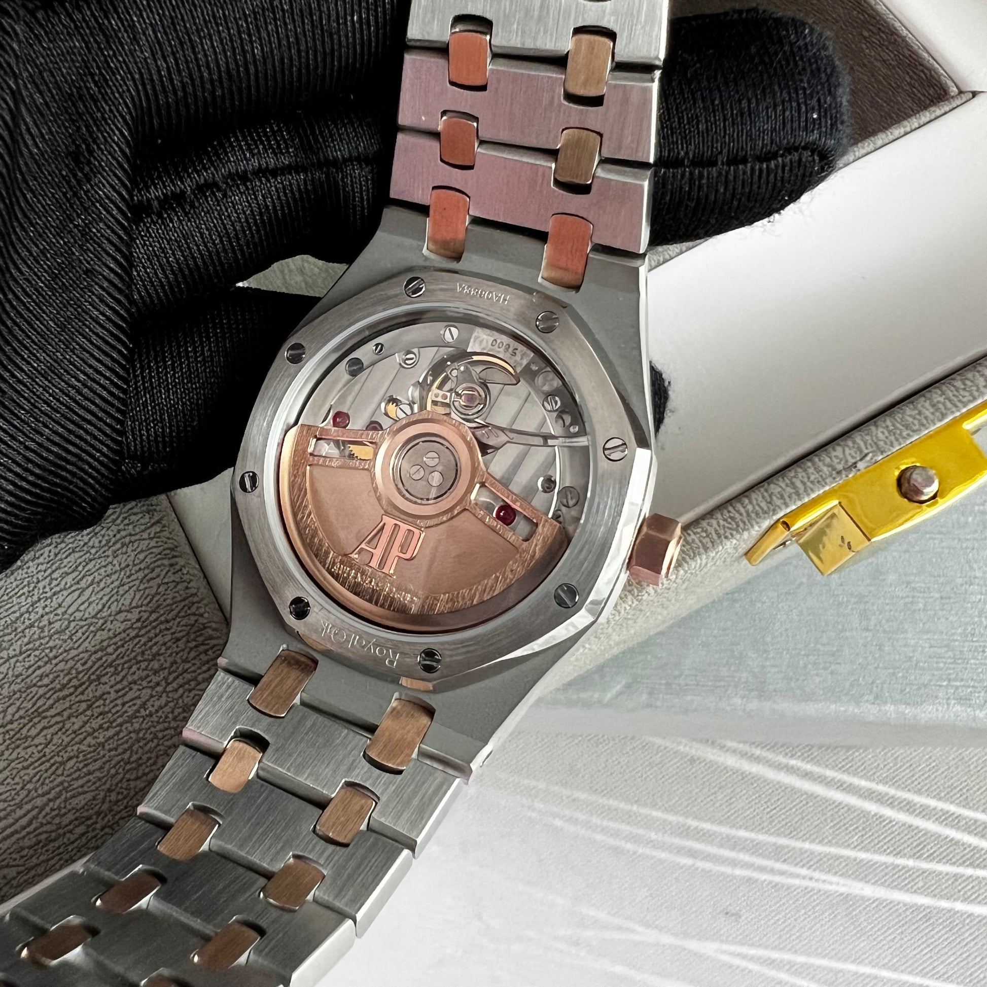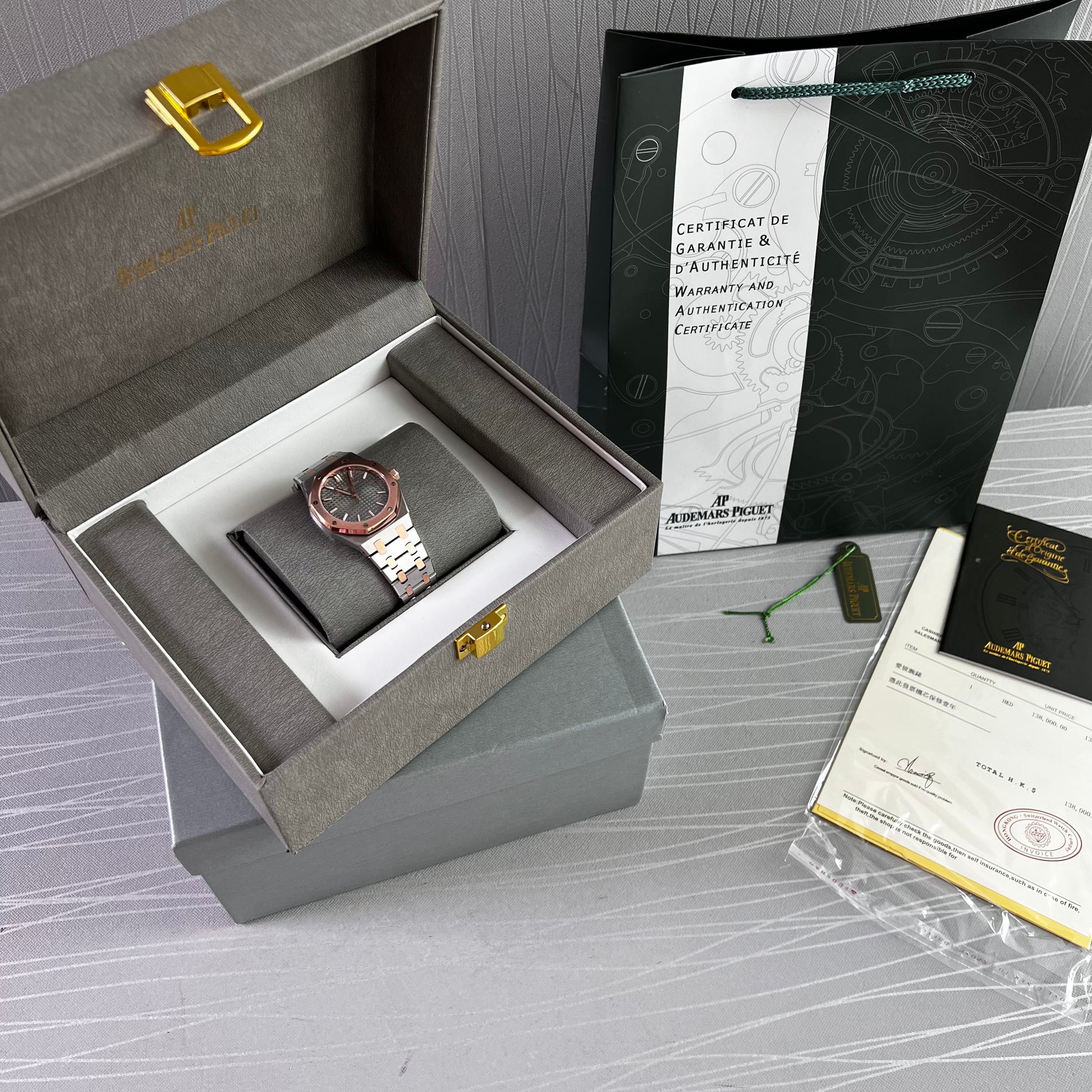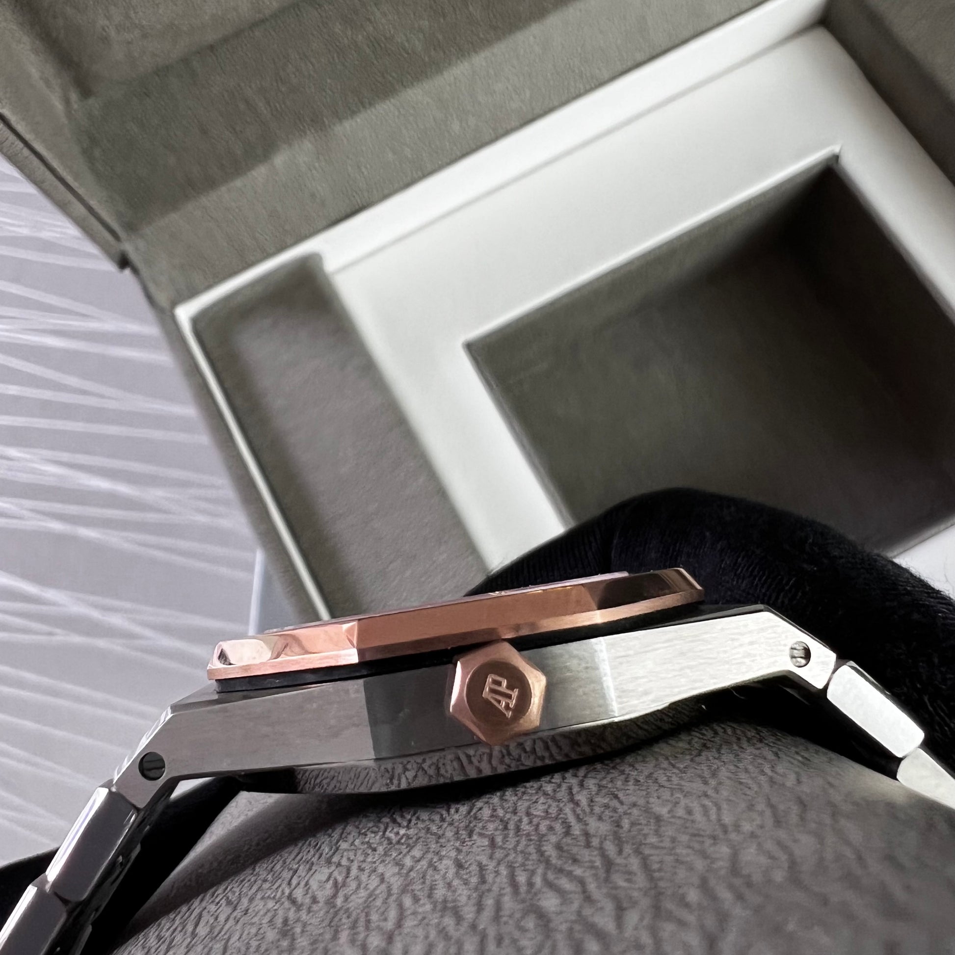 Reloj A - P unisex en acero inoxidable, color plata y rose gold. Maquinaría Suiza. 34 mm. Incluye caja, cubrepolvo, shopping bag.