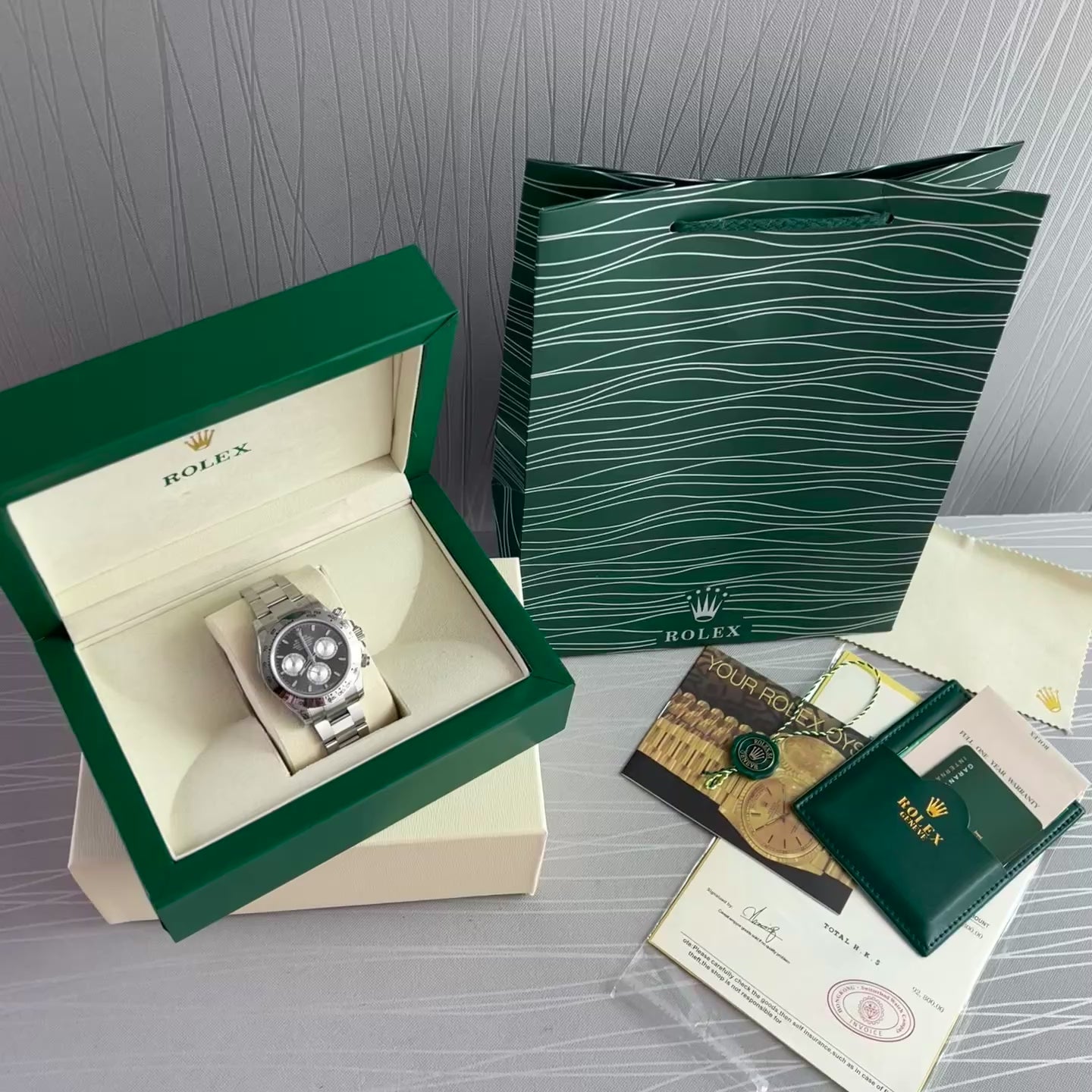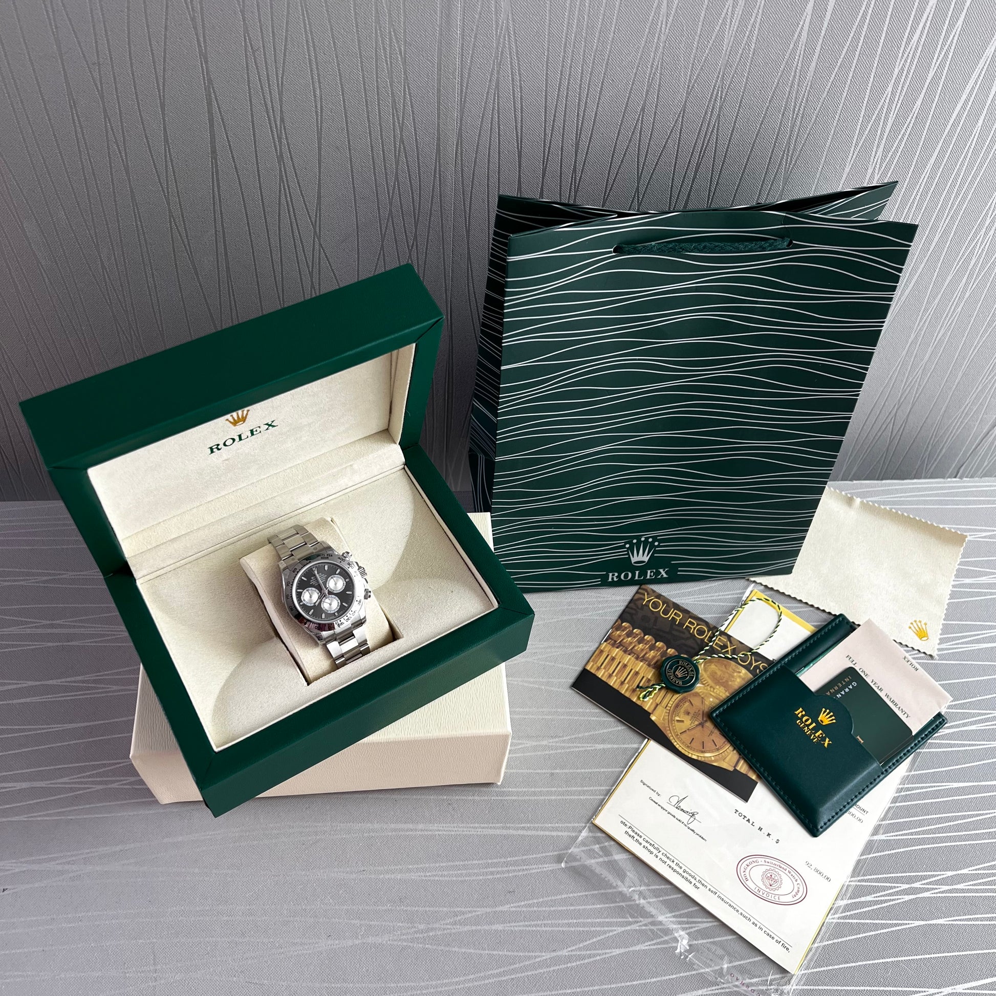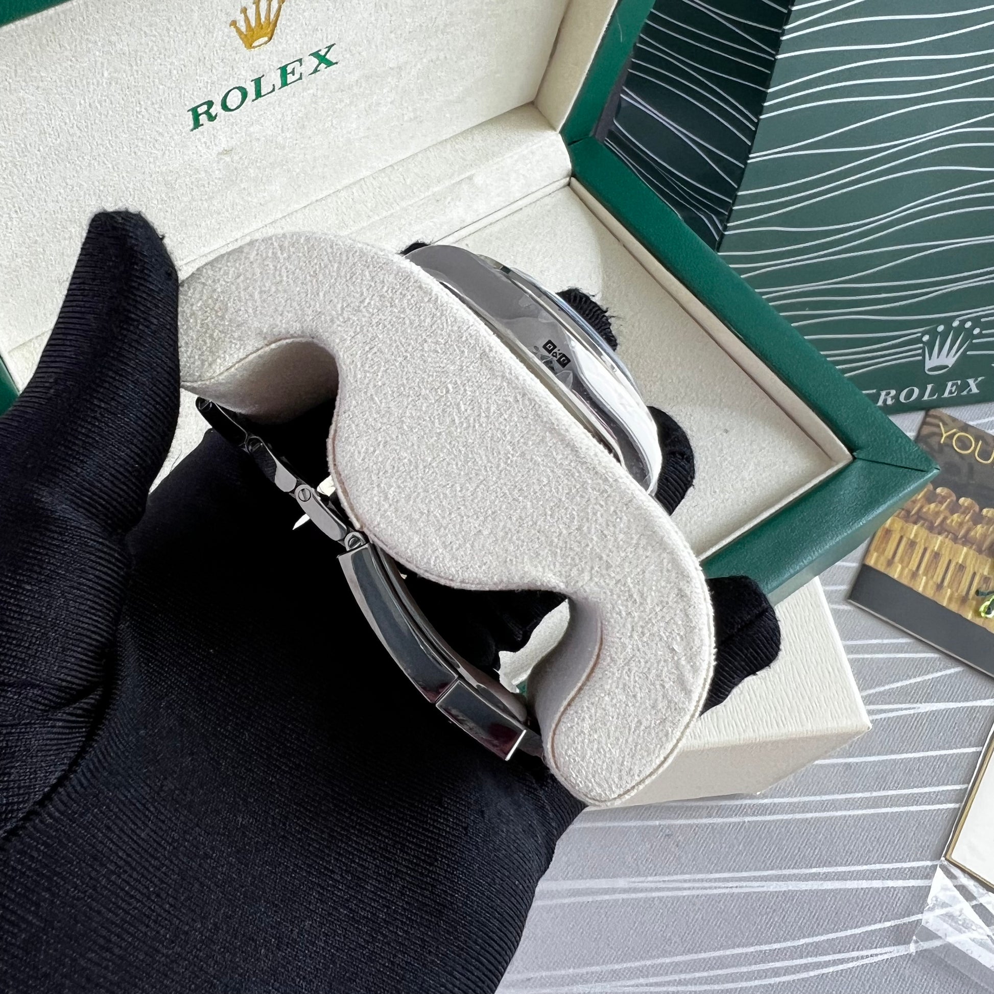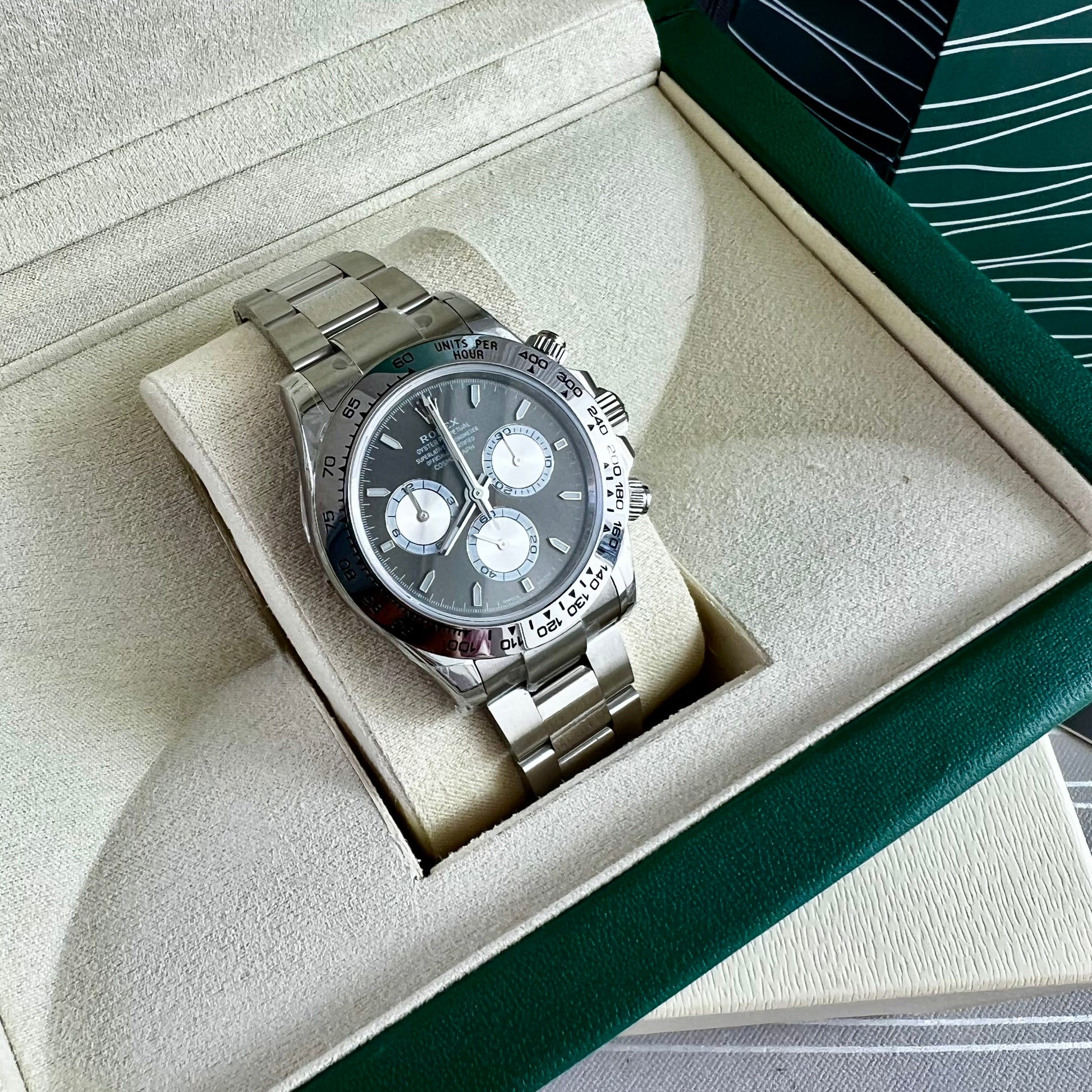 Reloj R acero inoxidable plateado con carátula color negro. 40 mm. Incluye caja, cubrepolvo y shopping bag.