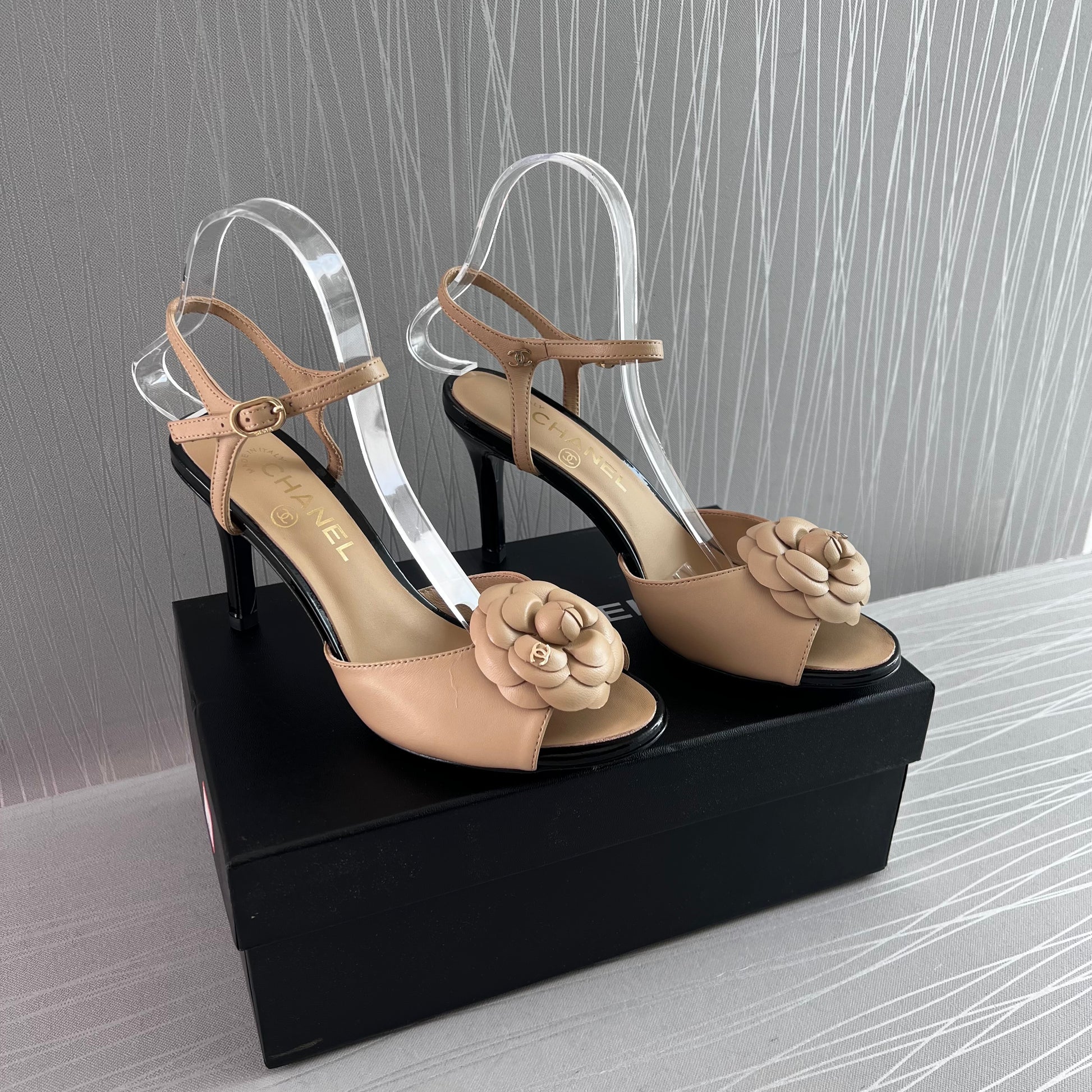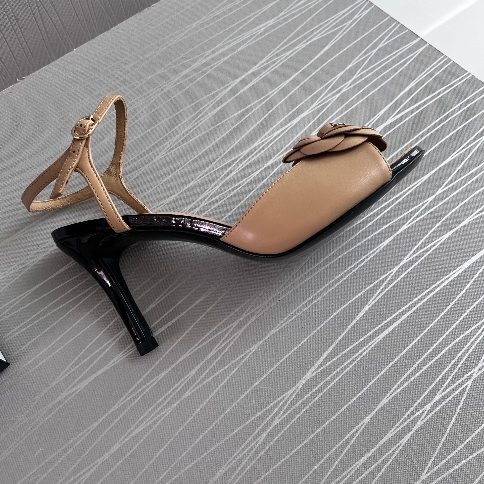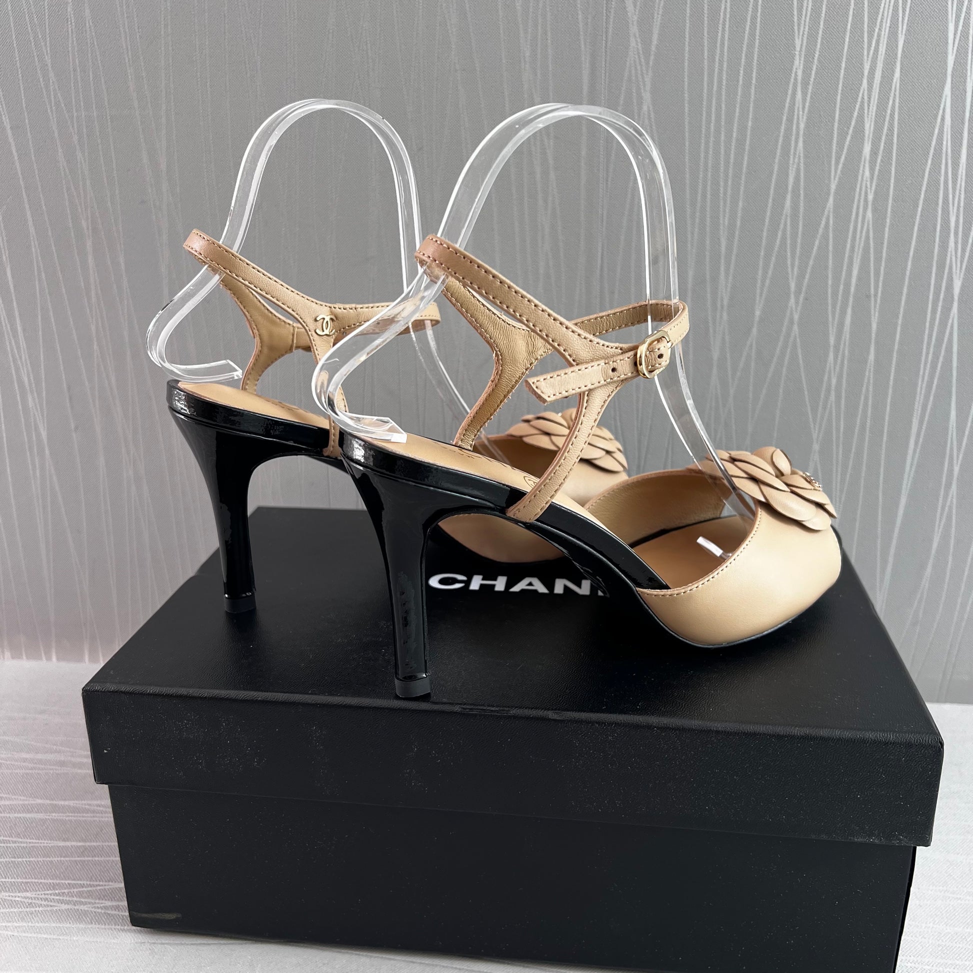 Sandalias en piel color beige combinadas con tacón en negro. Tamaño del tacón 10 cm. Incluye caja y cubrepolvo.