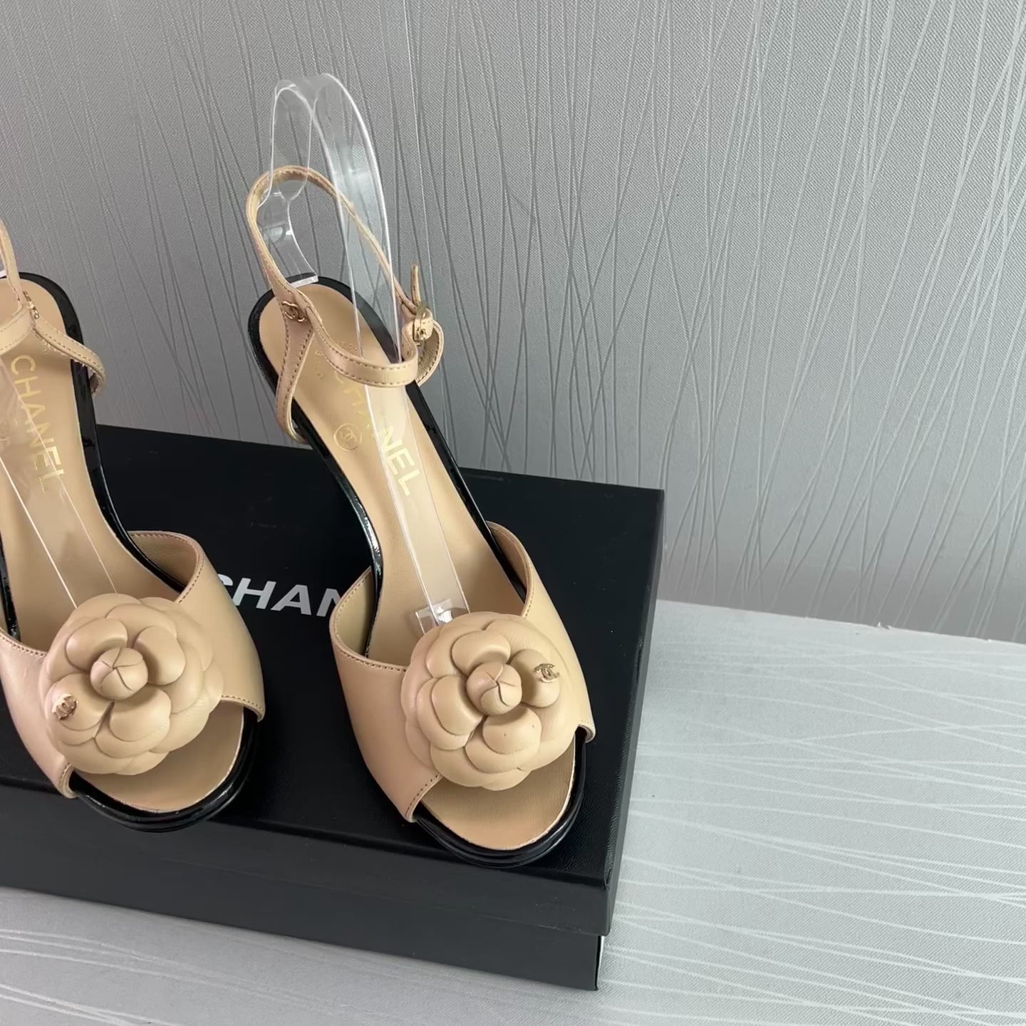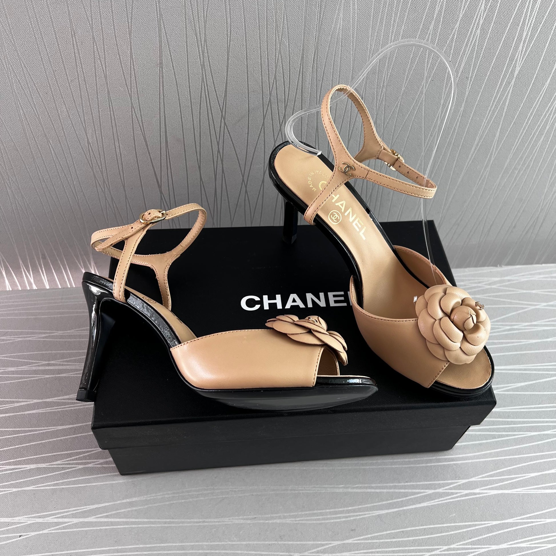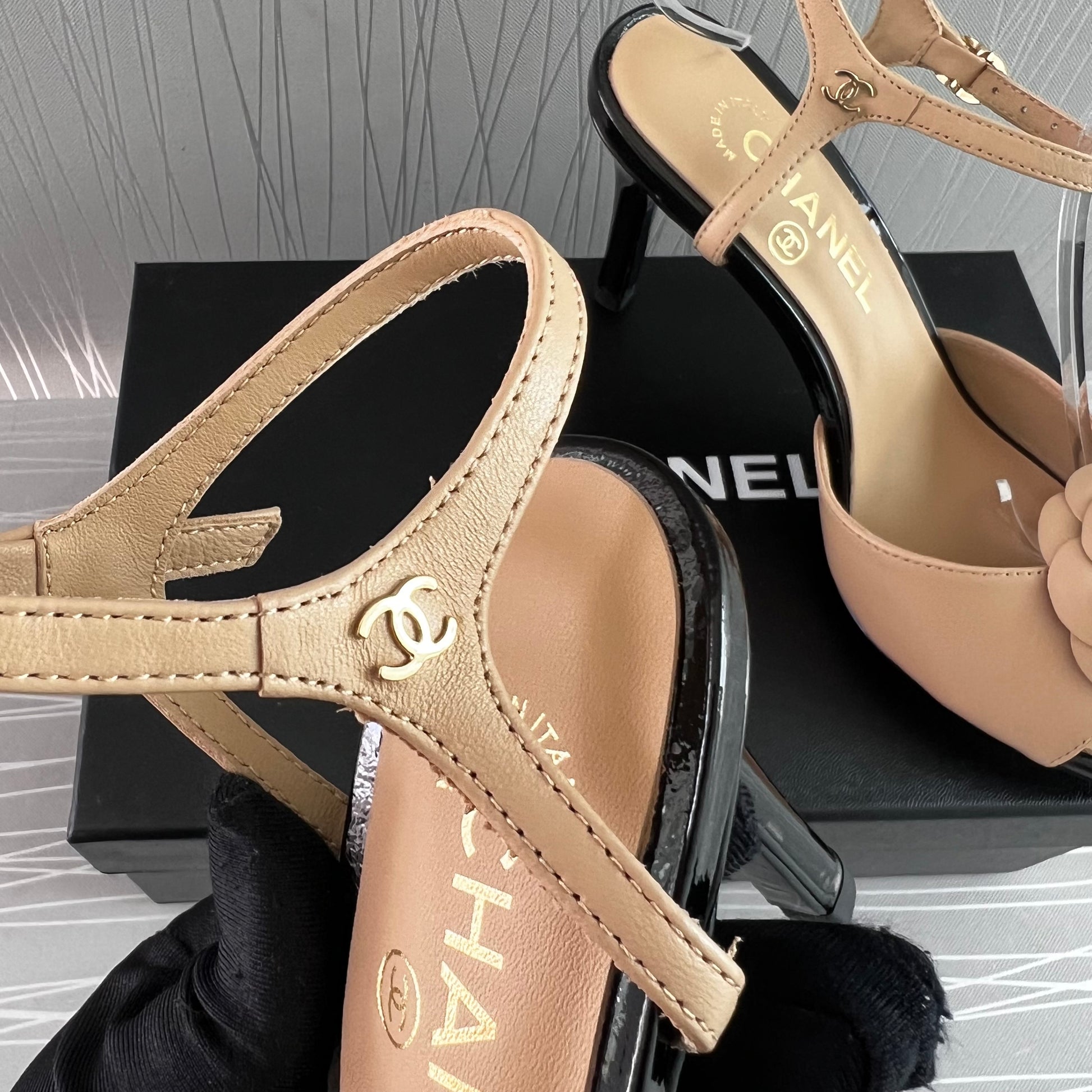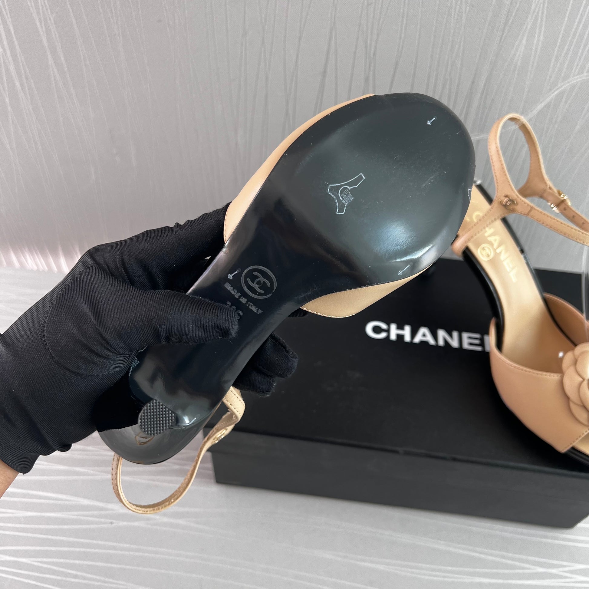 Sandalias en piel color beige combinadas con tacón en negro. Tamaño del tacón 10 cm. Incluye caja y cubrepolvo.