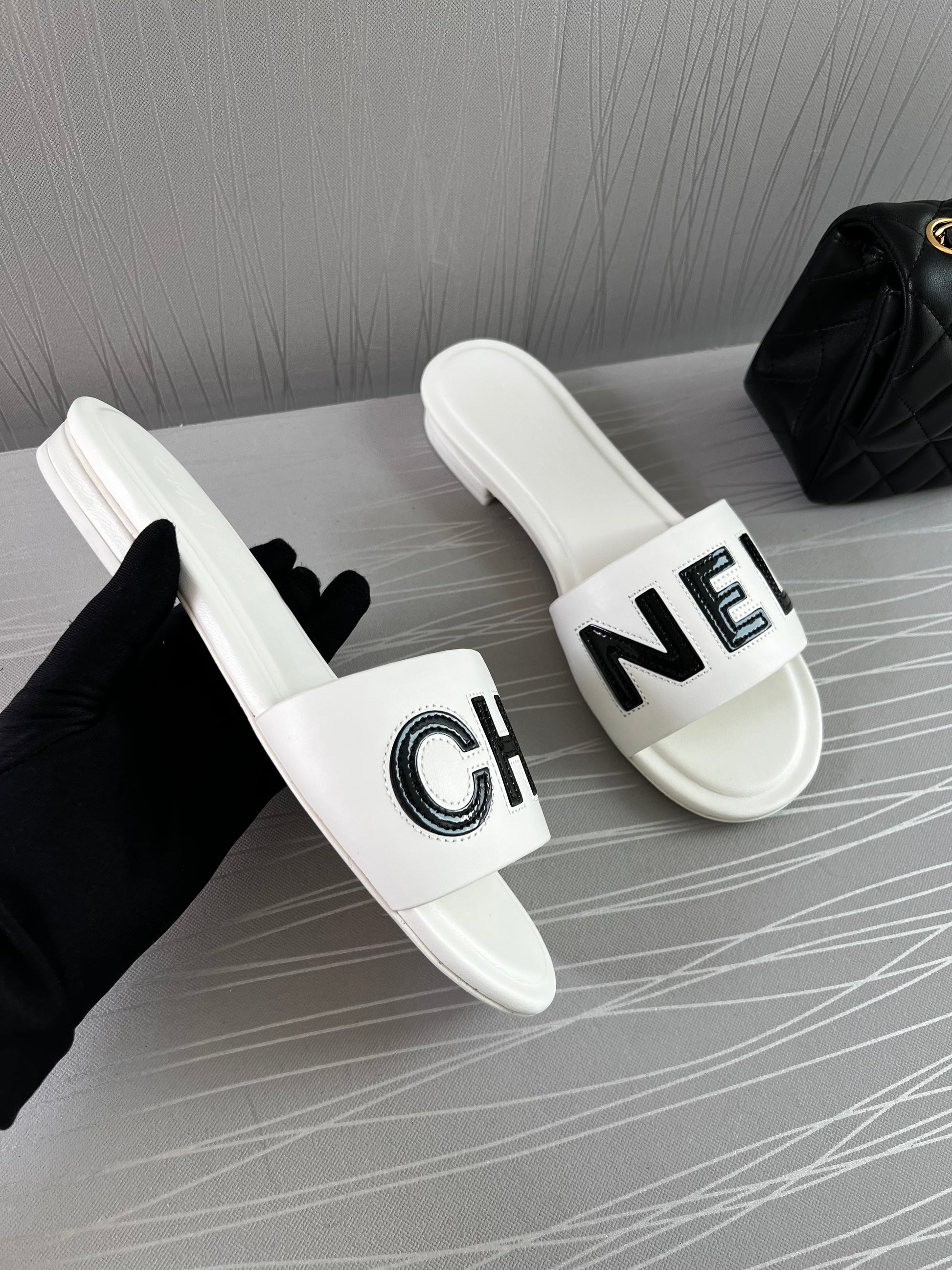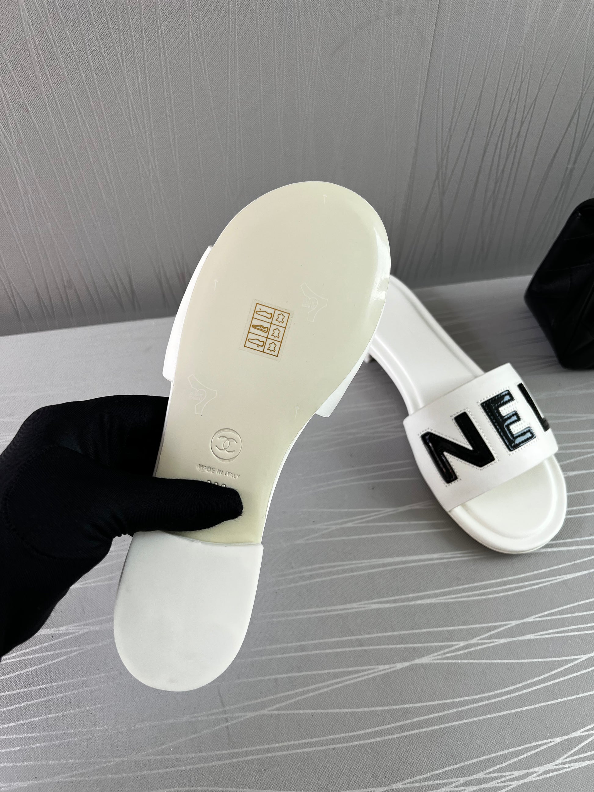 Sandalias C piel color blanco con letras en color negro