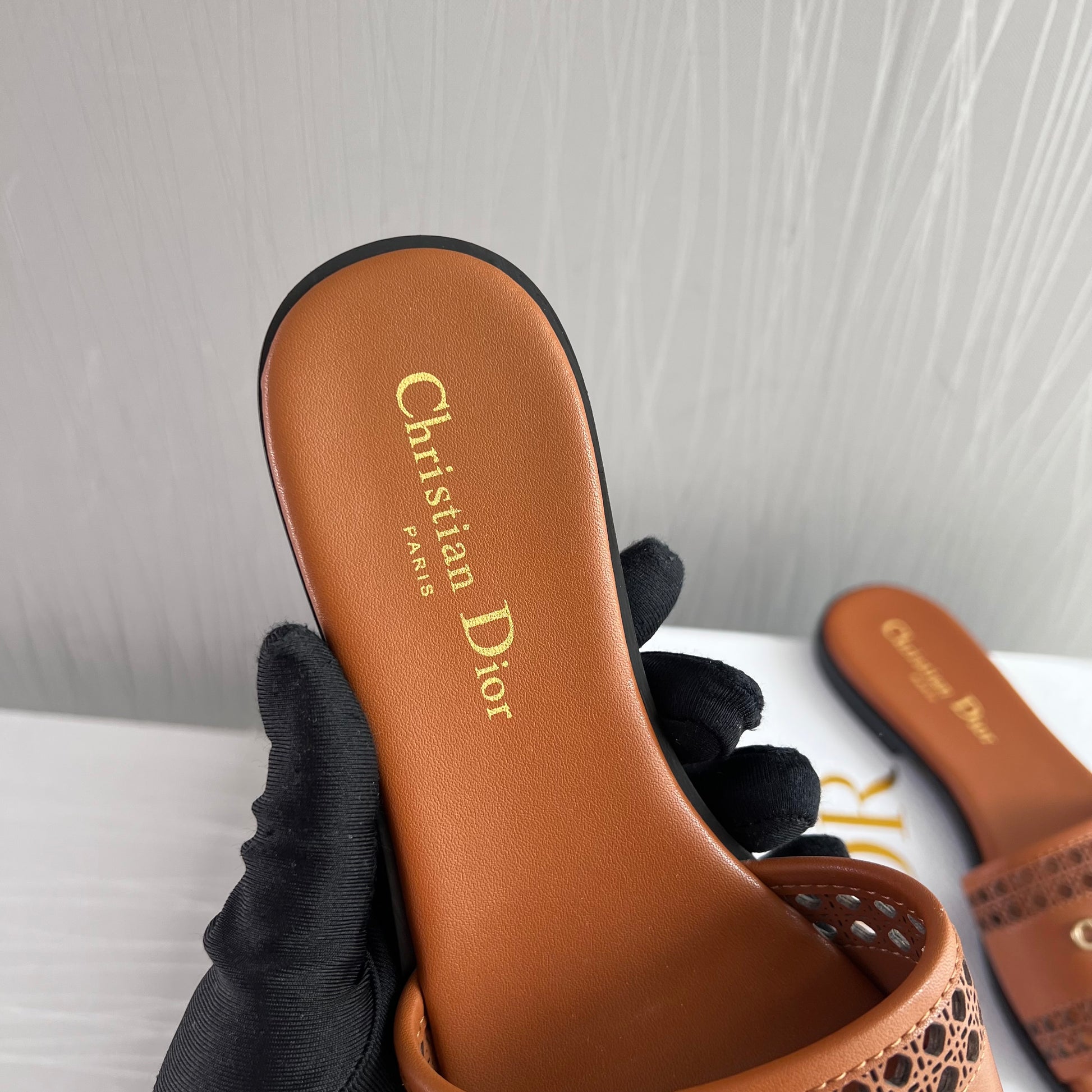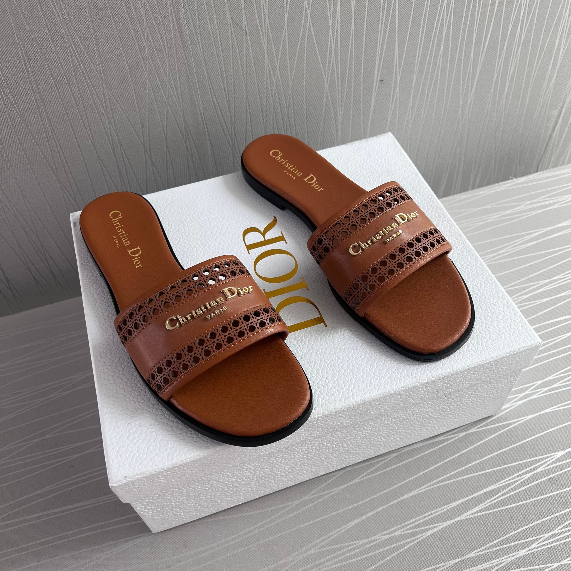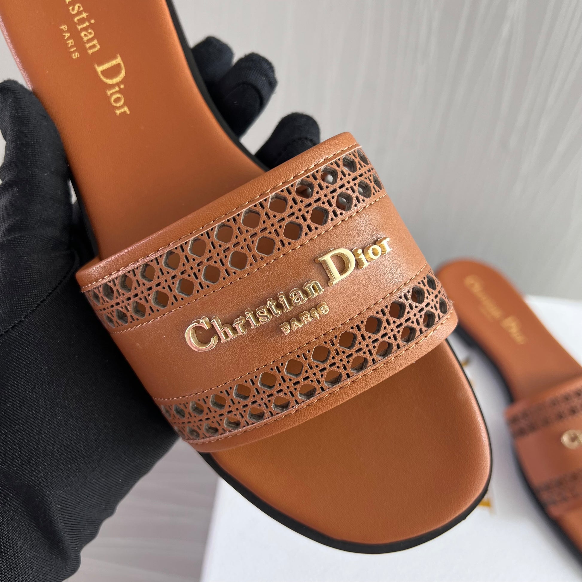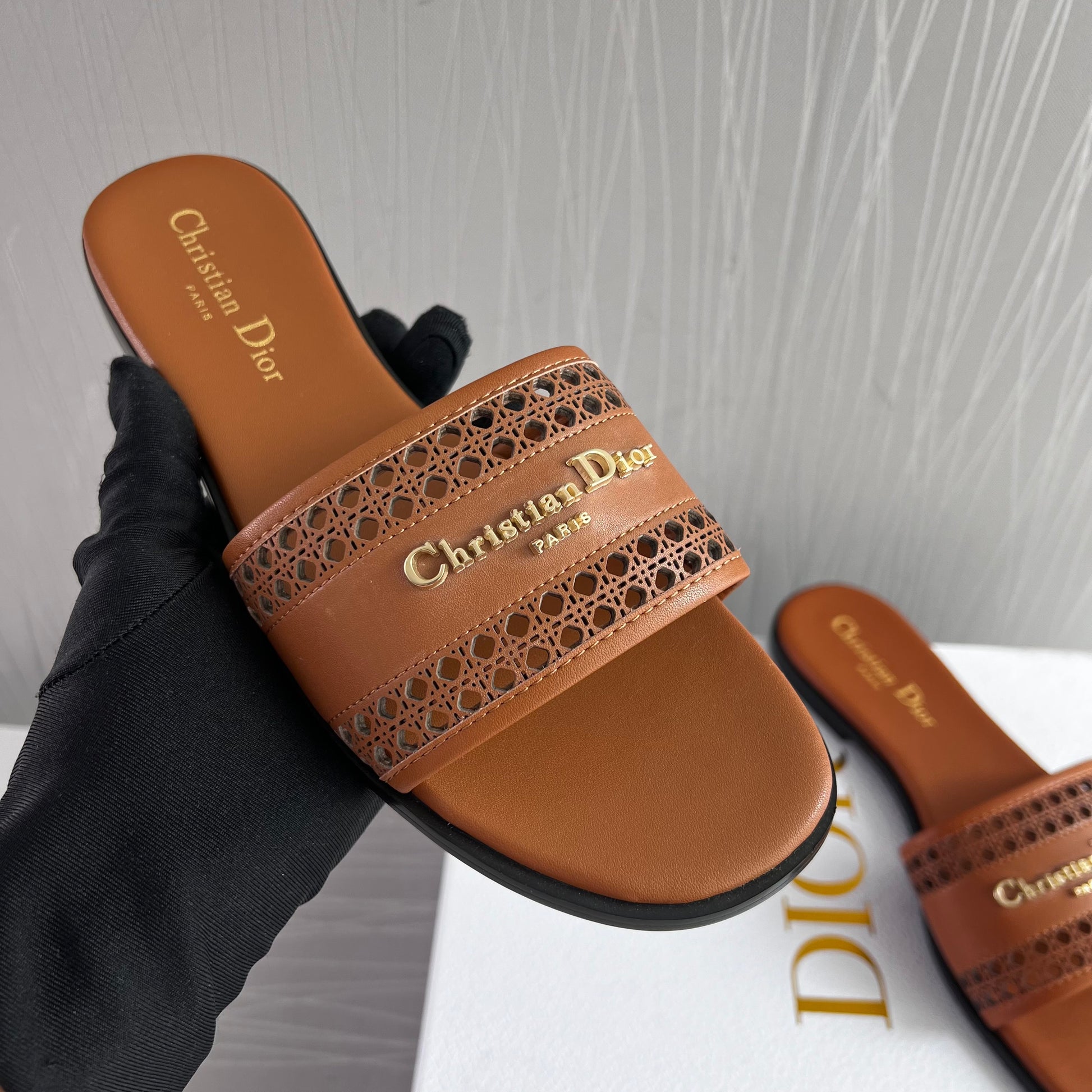 Sandalias D piel color camel con letras doradas. Incluye caja y guardapolvo.